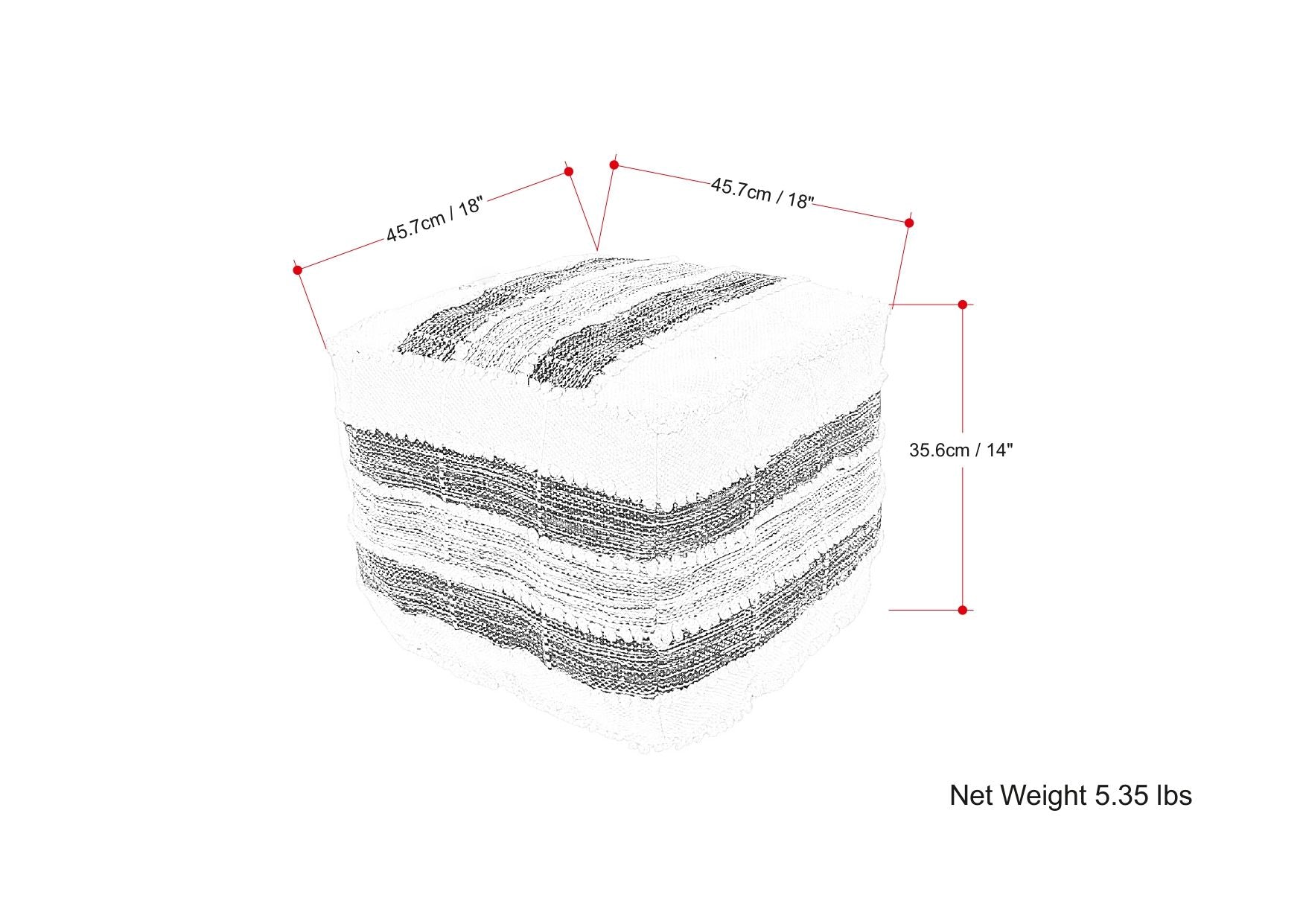 - Handcrafted with Handcrafted with 100% recycled PET woven polyester in a white, beige and black pattern
