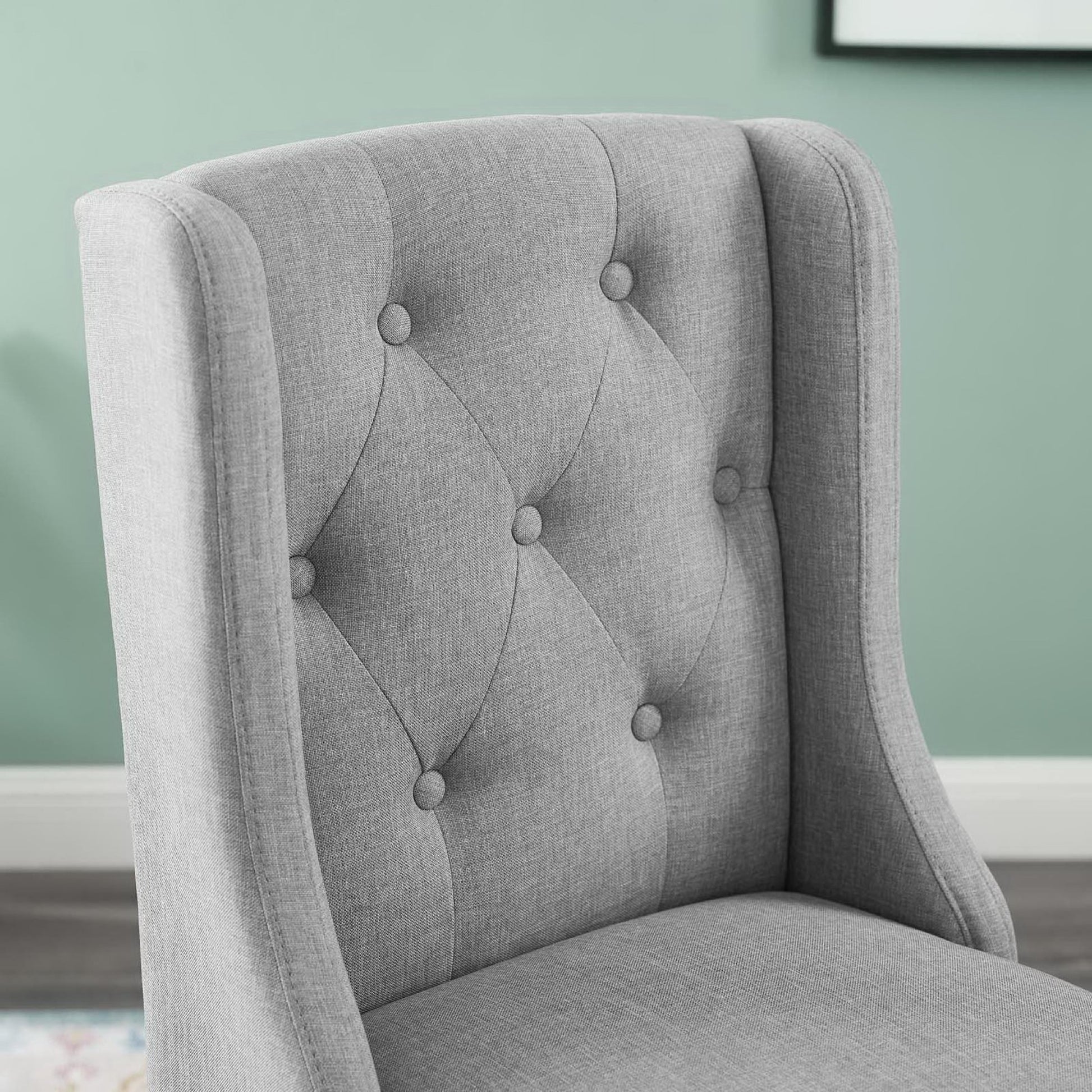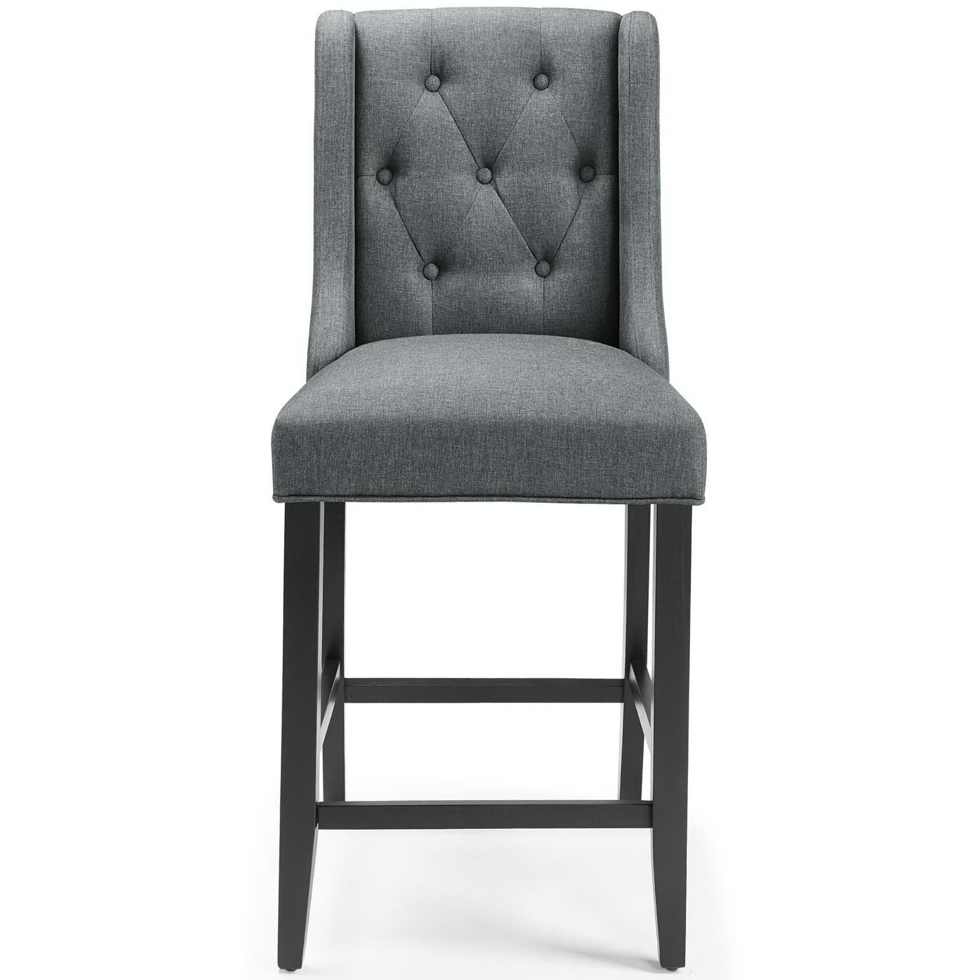 Bestow splendor with the Baronet Tufted Button Upholstered Fabric Counter Stool. Featuring dense foam padding, sinuous spring support, and soft polyester fabric upholstery, enjoy a luxe seating experience with this luxurious tufted button counter bar stool. Complete with sleek curves and dignified form, this modern counter stool with solid wood legs with stretcher supports and non-marking foot caps is the perfect choice for the dining seating area. Counter Stool Weight Capacity: 500 lbs.