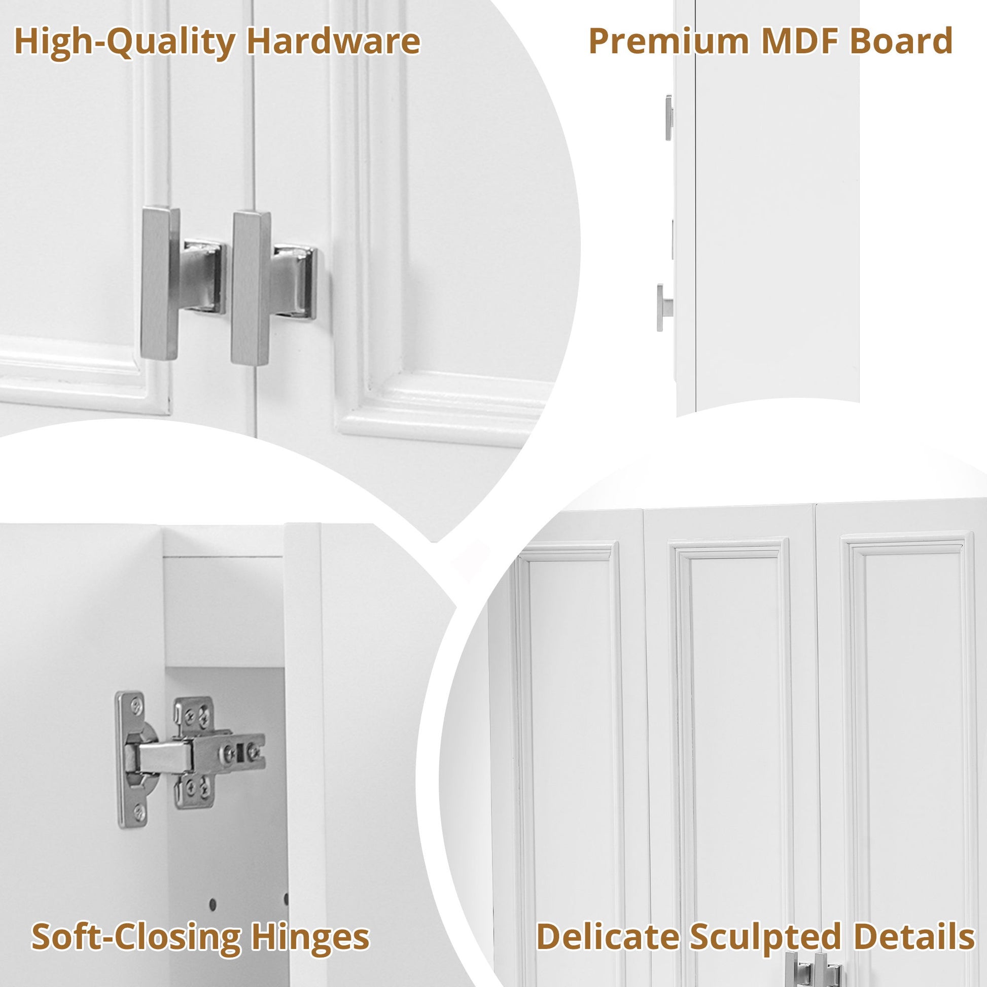 - Clean White Painted Finish: Smooth painted surface resists stains and complements a variety of bathroom decors.
