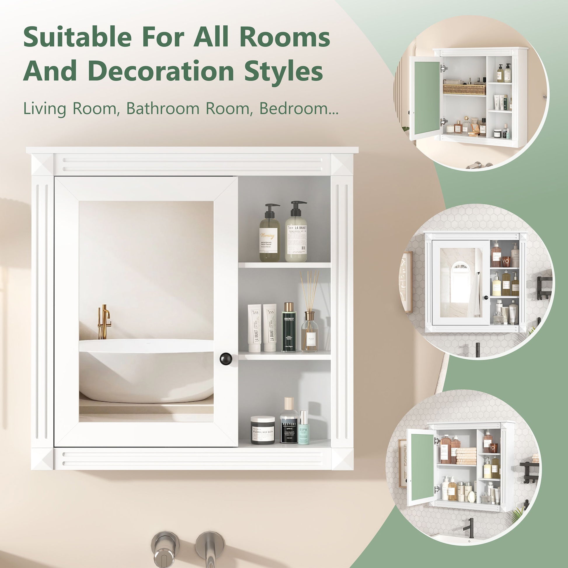 Bathroom Medicine Cabinet With Mirror, Wall Mounted Mirror Cabinet With Storage Organizer, Over The Toilet Storage White Storage Cabinet For Bathroom - White