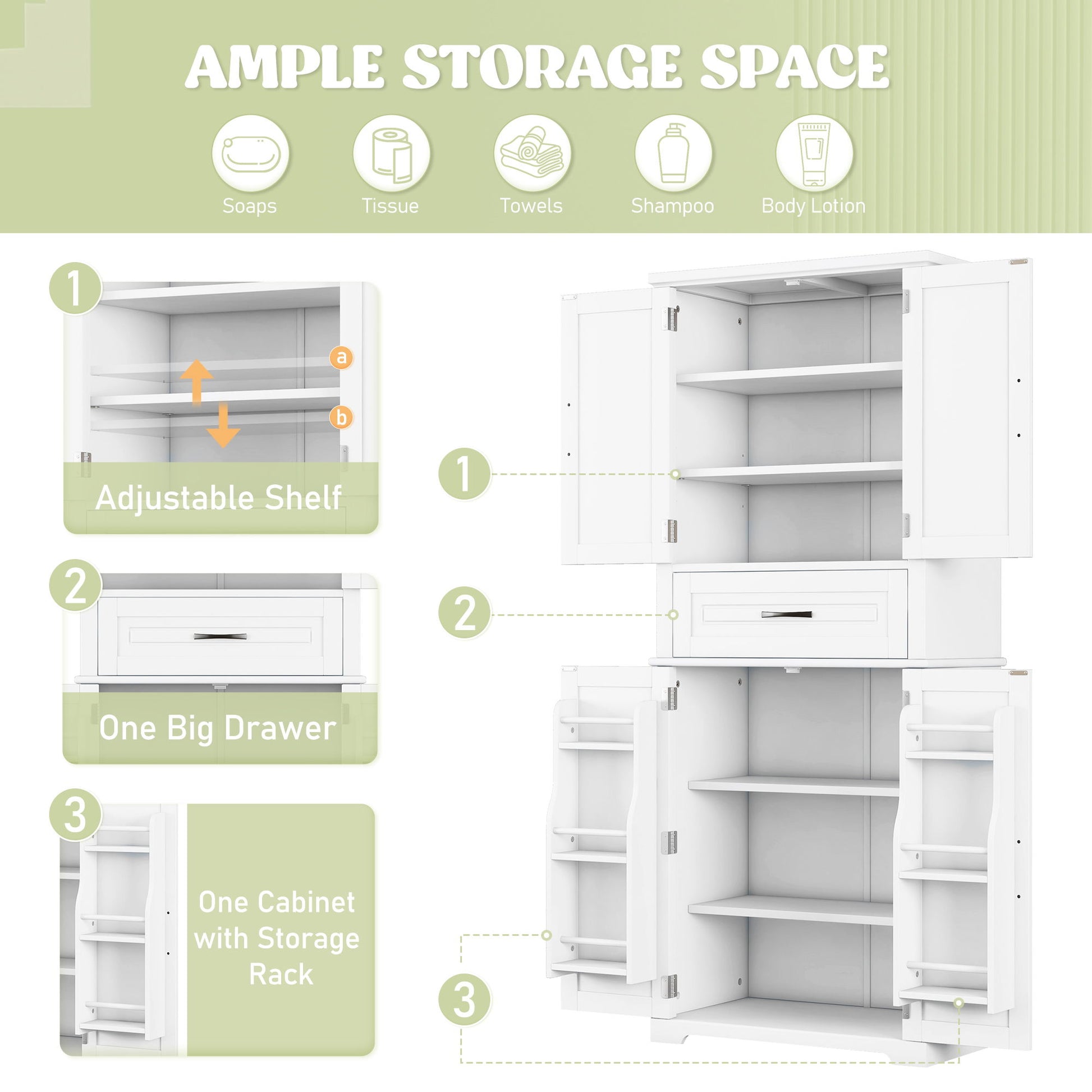 Bathroom Storage Cabinet With Multi Functional Storage Space, Drawer With Slide Rails, Adjustable Shelf - White