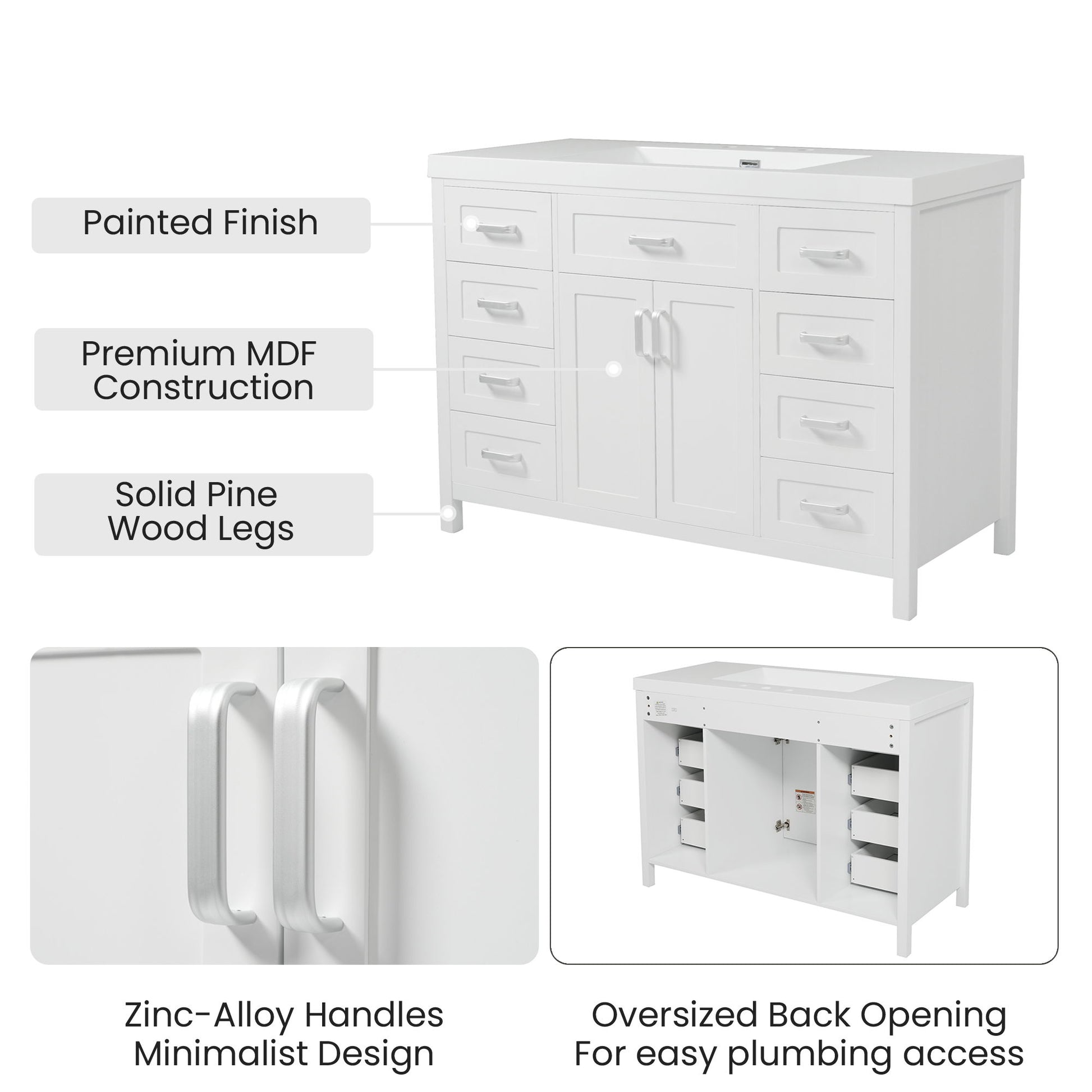 Bathroom Vanity Cabinet Only With 2 Soft Close Doors And 8 Drawers - White