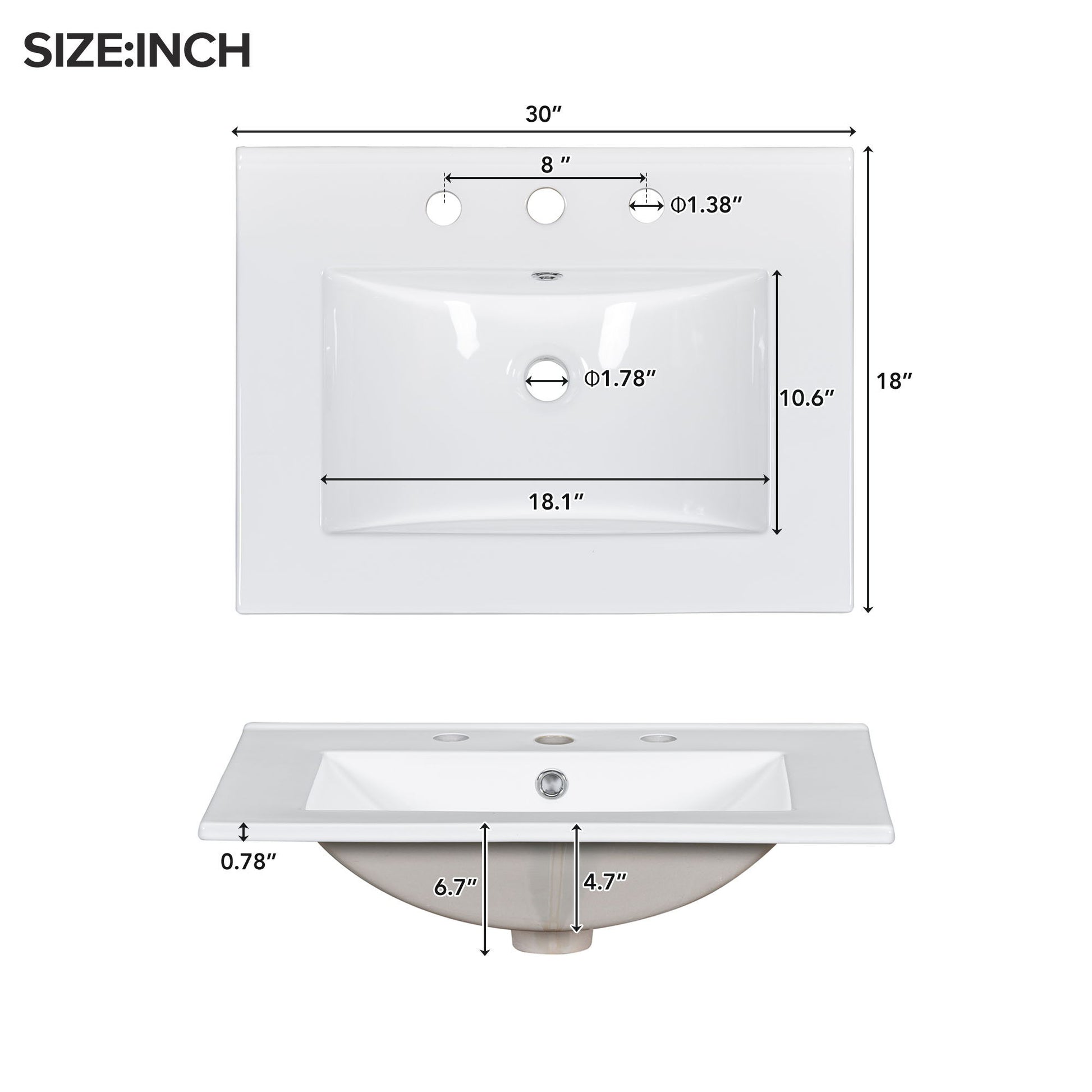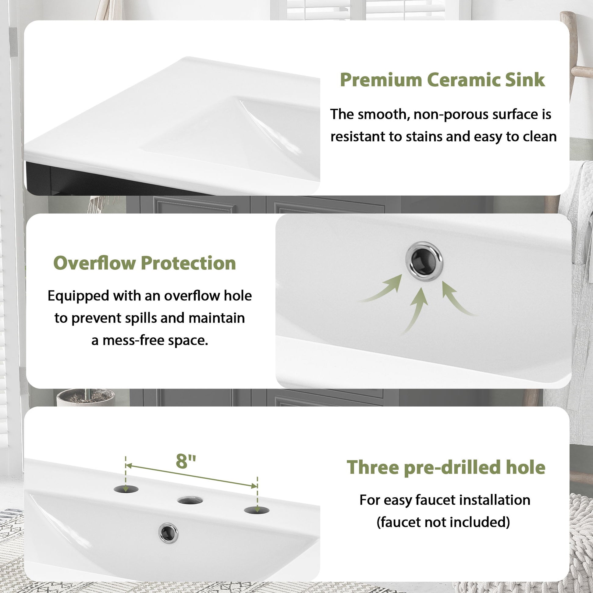 Bathroom Vanity Cabinet With Ceramic Basin, 3 Drawers And Adjustable Shelves