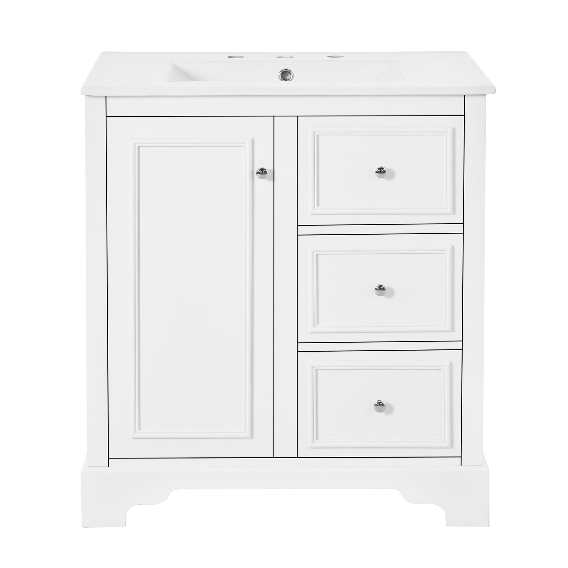 Bathroom Vanity Cabinet With Ceramic Basin, 3 Drawers And Adjustable Shelves - White