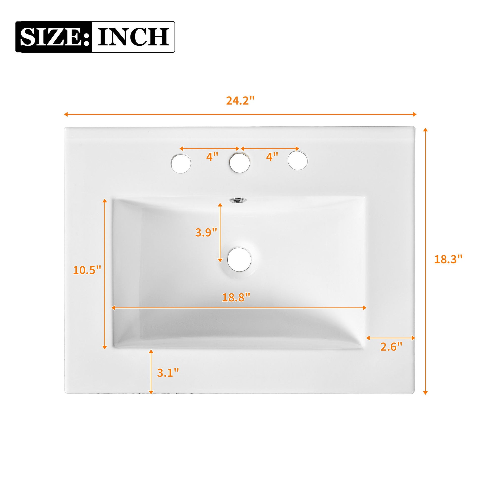 - Functional Basin Features: The ceramic sink comes with pre-drilled three holes for an 8-inch wide faucet (not included) and features an overflow with a metal ring to prevent accidental water overflow, adding safety and convenience.