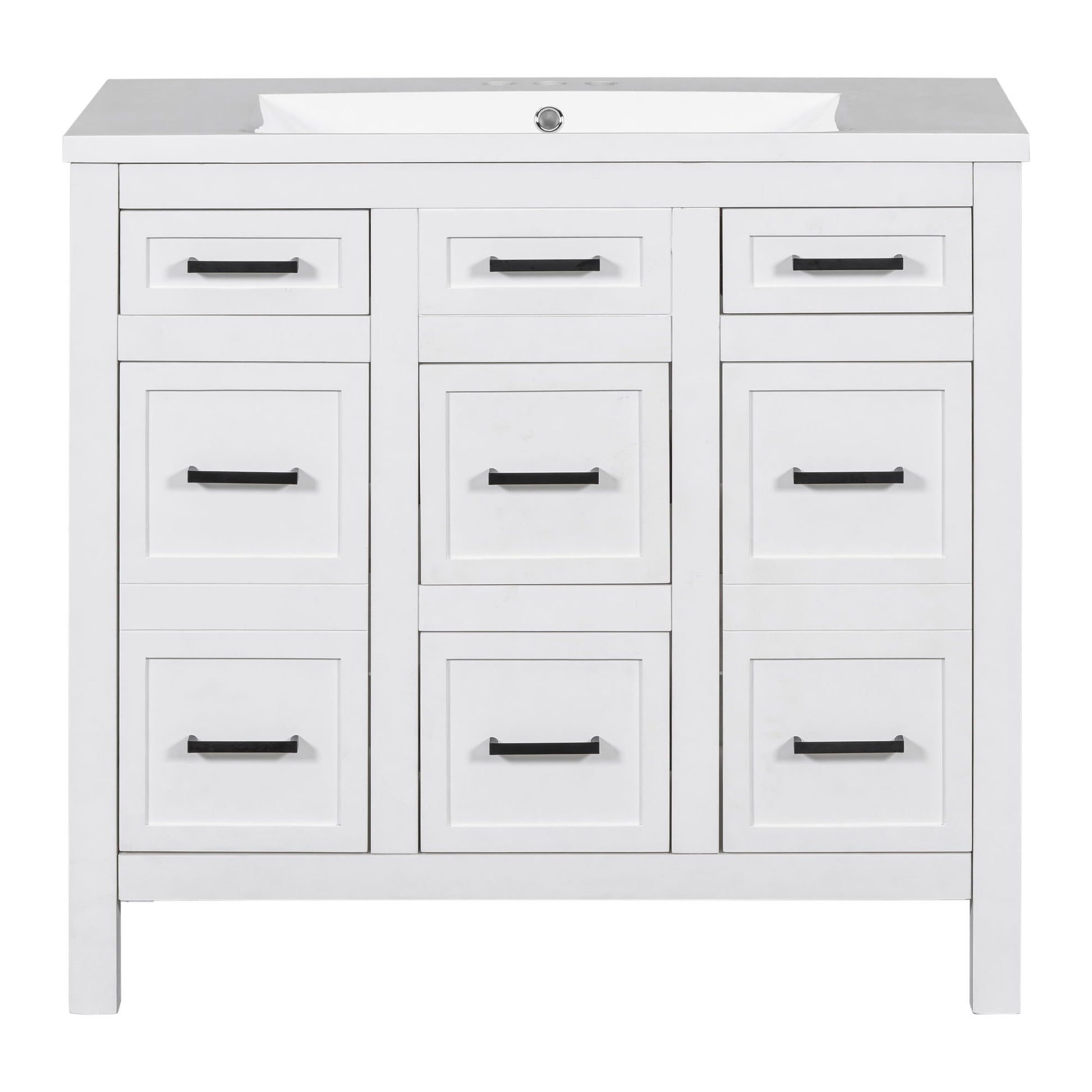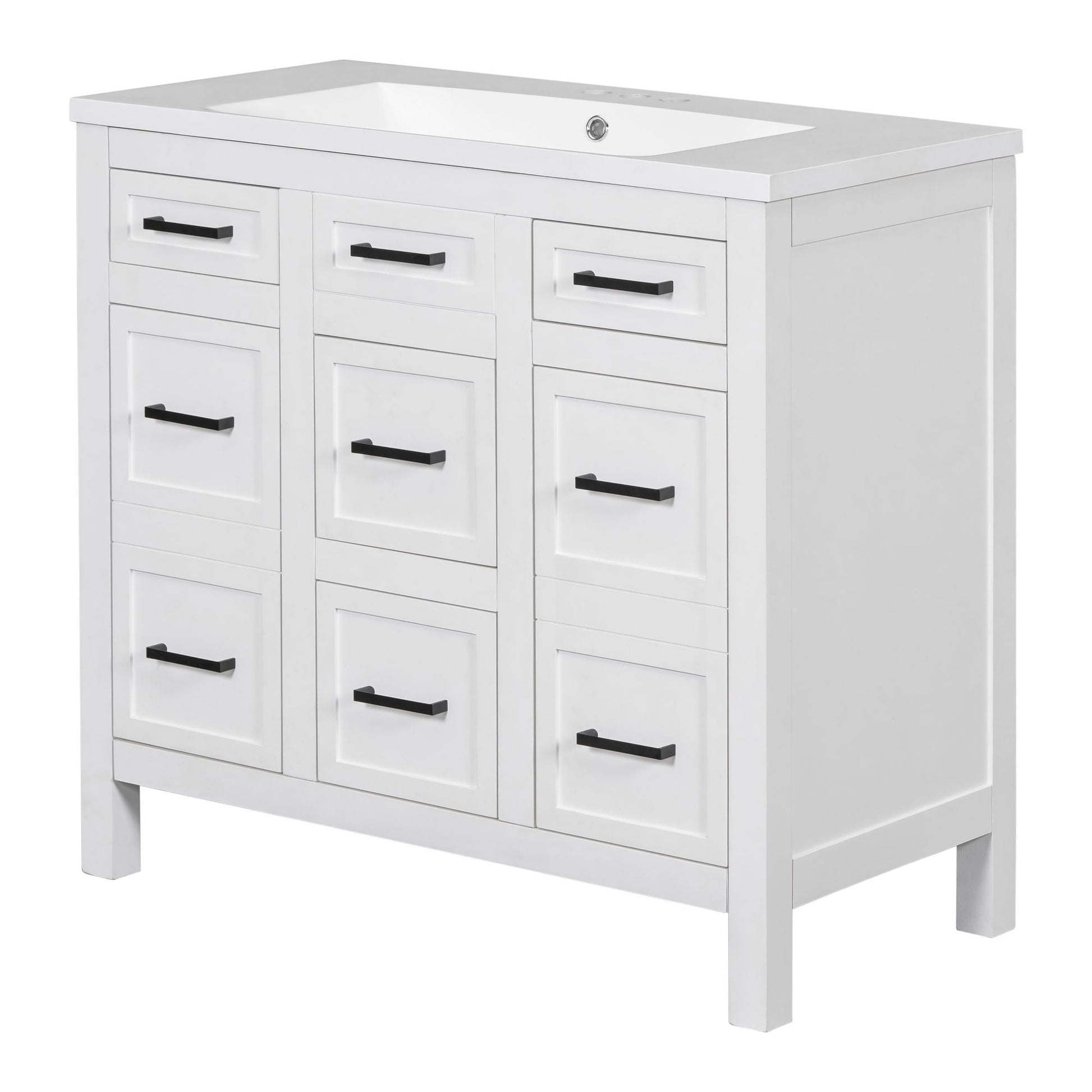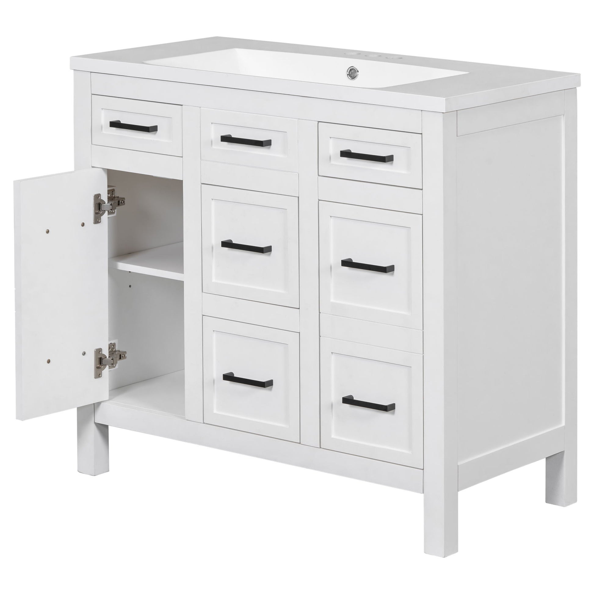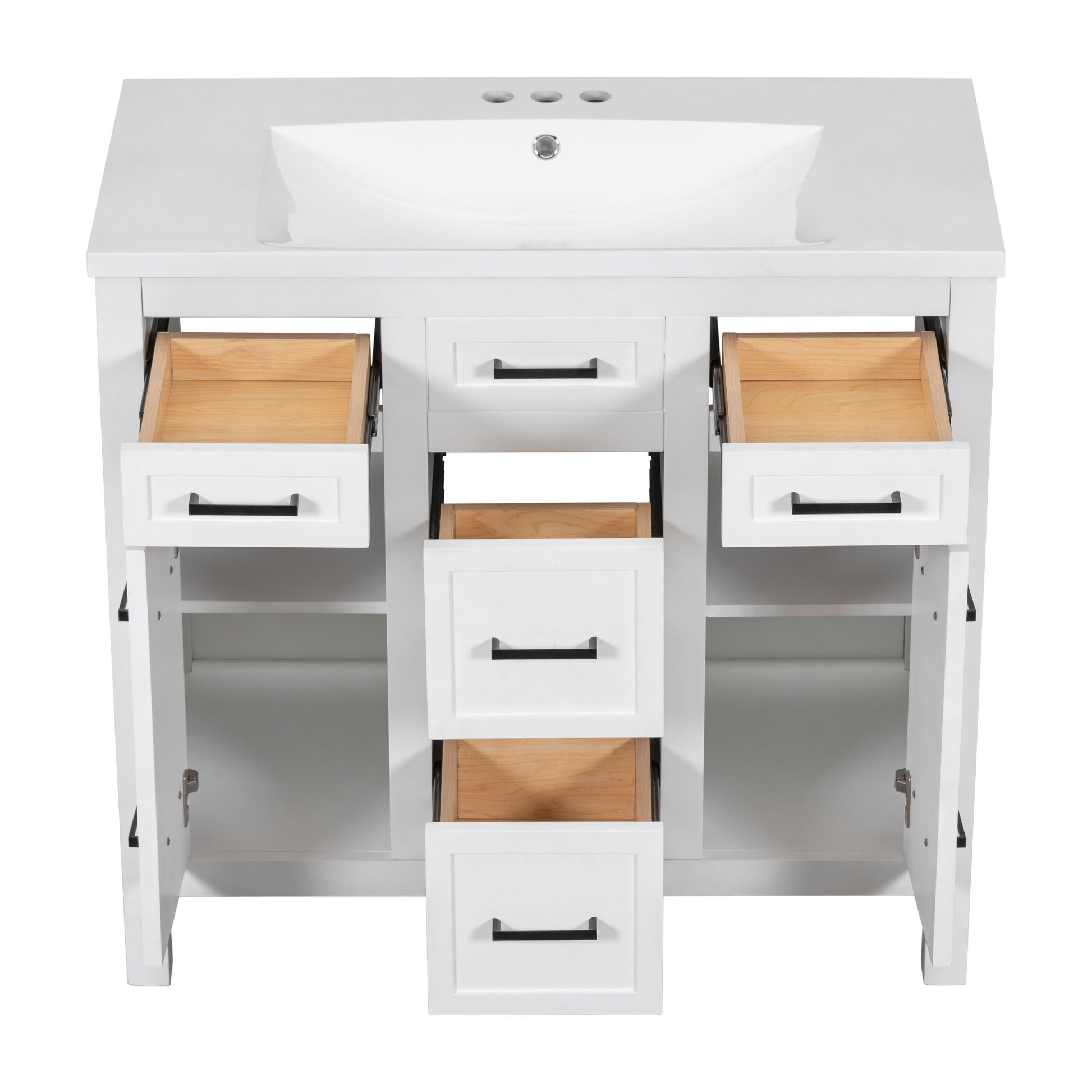 - Stain-Resistant Resin Sink: Enjoy a spotless bathroom with our 36-inch vanity featuring a one-piece resin sink that resists stains, ensuring easy cleaning.