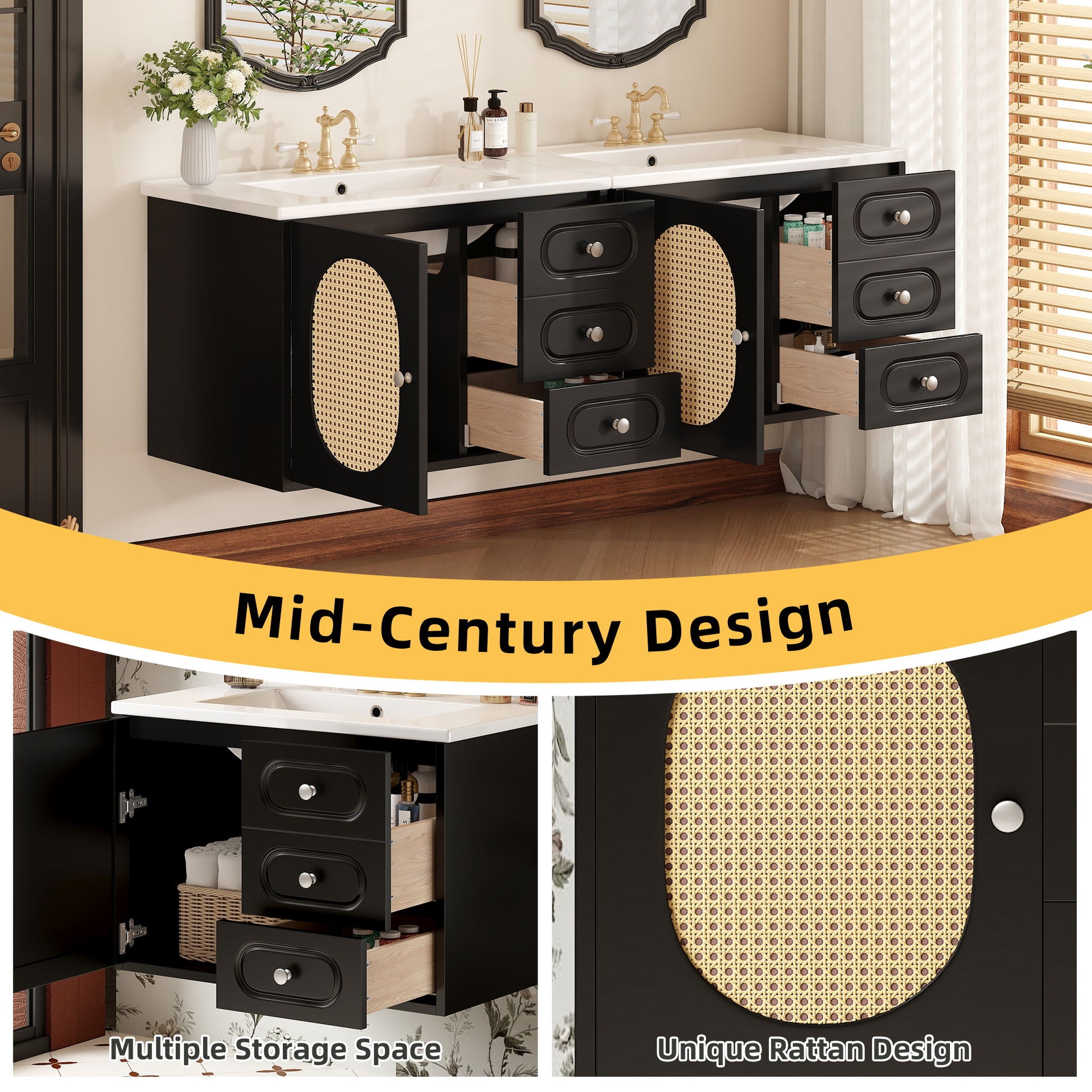 - Elegant Mid-Century Design: Timeless silhouette with natural rattan accents enhances visual appeal and complements diverse interior styles.