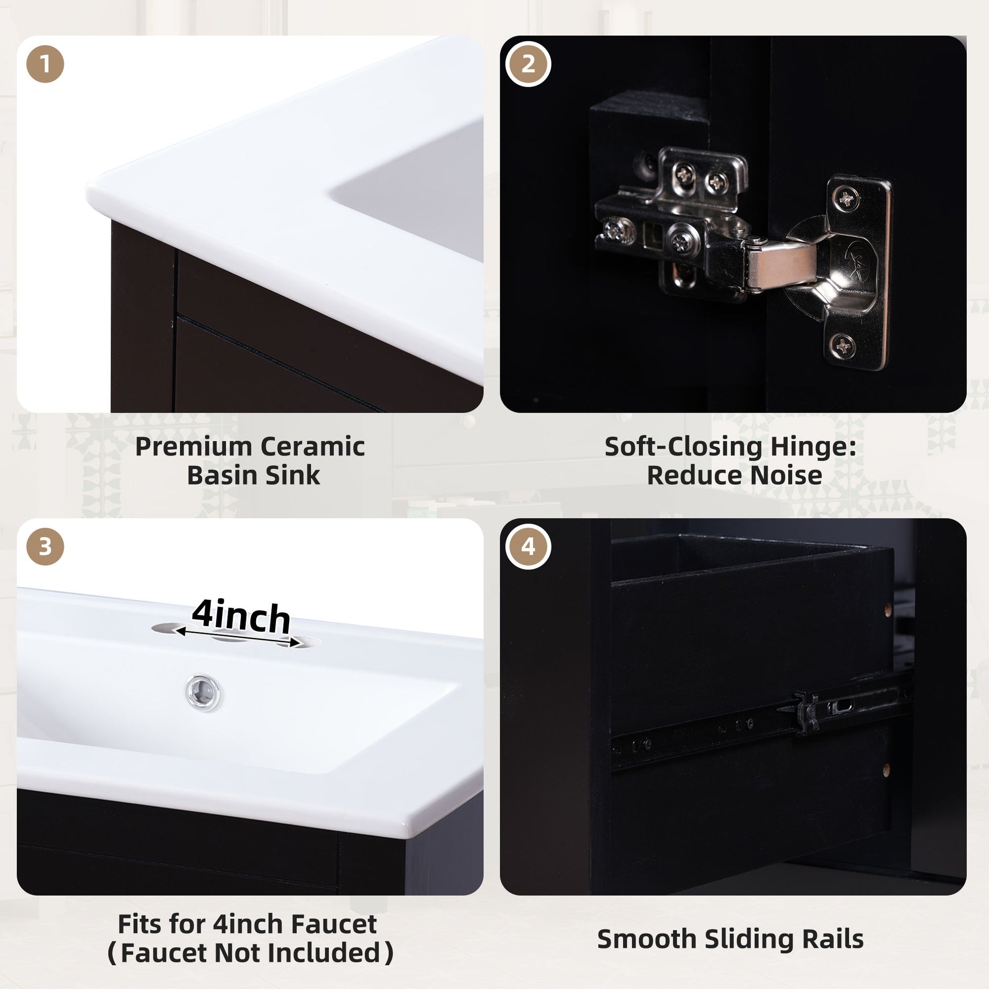 - Premium Ceramic Basin & Durable Build: High-quality ceramic sink resists stains and wear, with 4-inch faucet compatibility for seamless fixture integration.