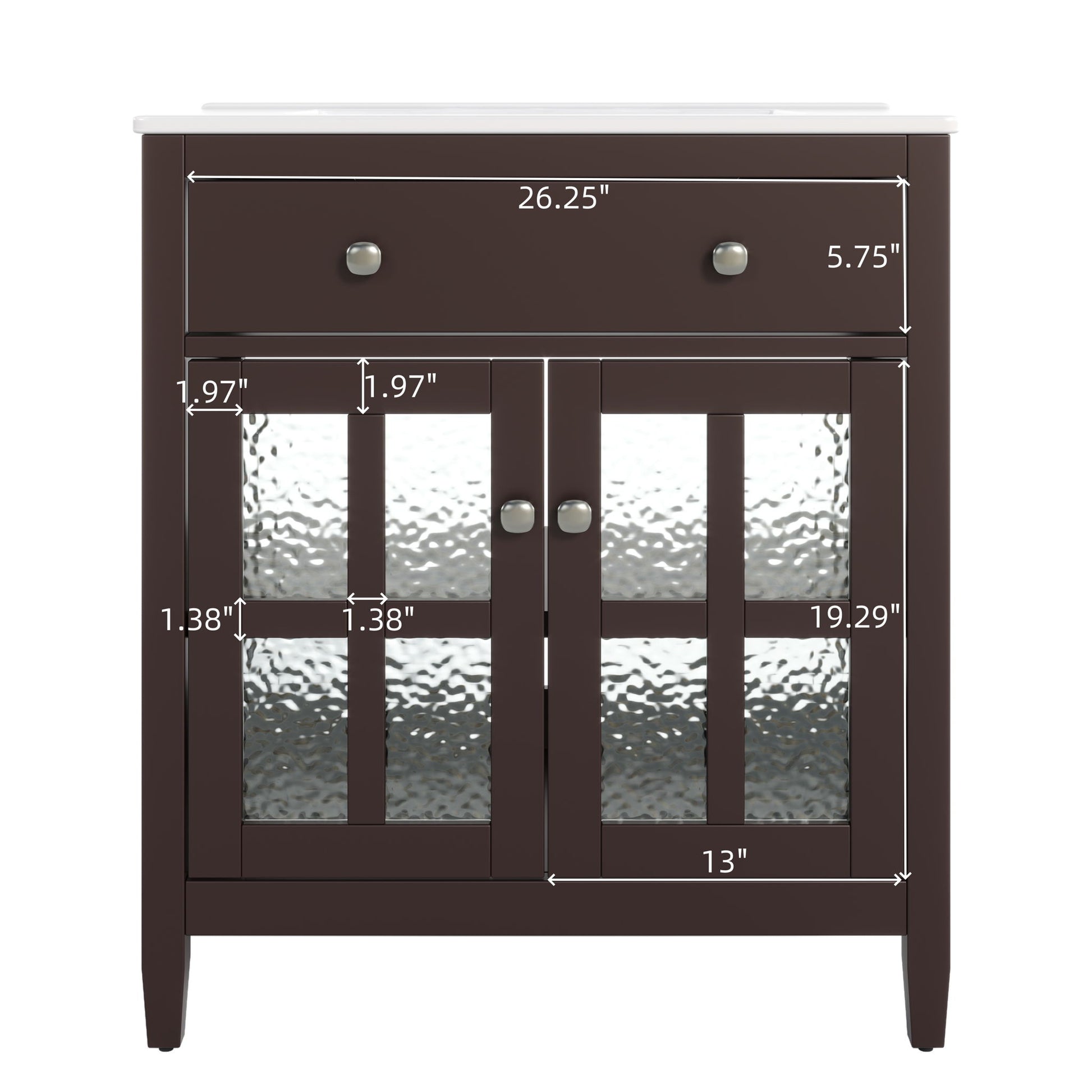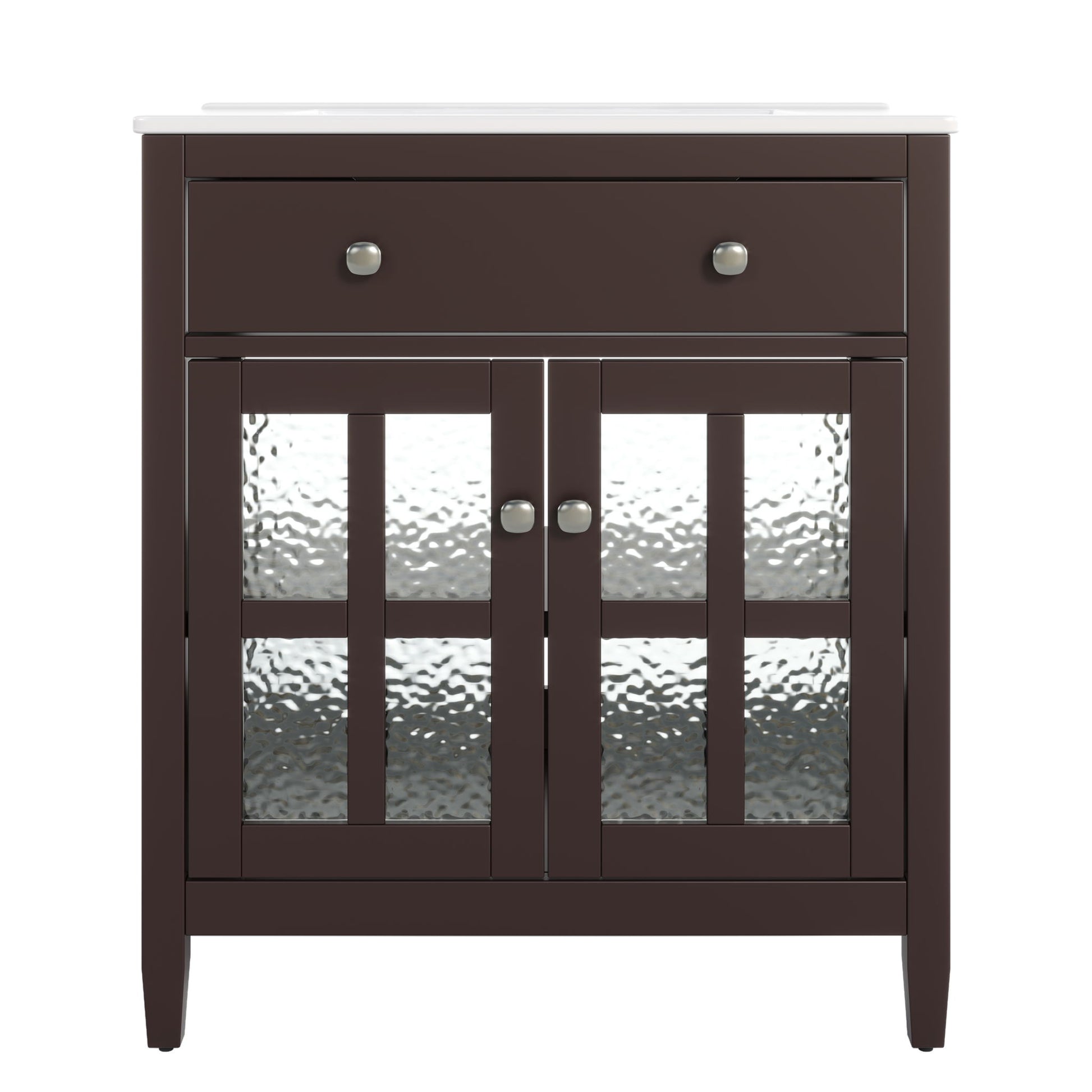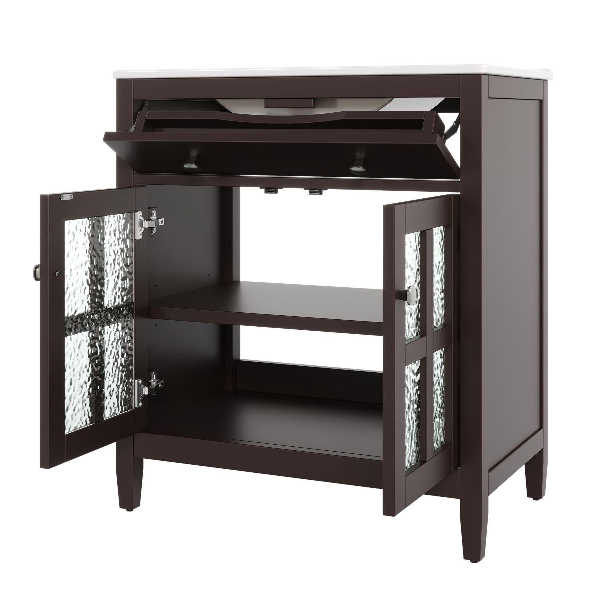 Bathroom Vanity With Sink, Adjustable Shelf & Tip Out Tray - Dark Brown