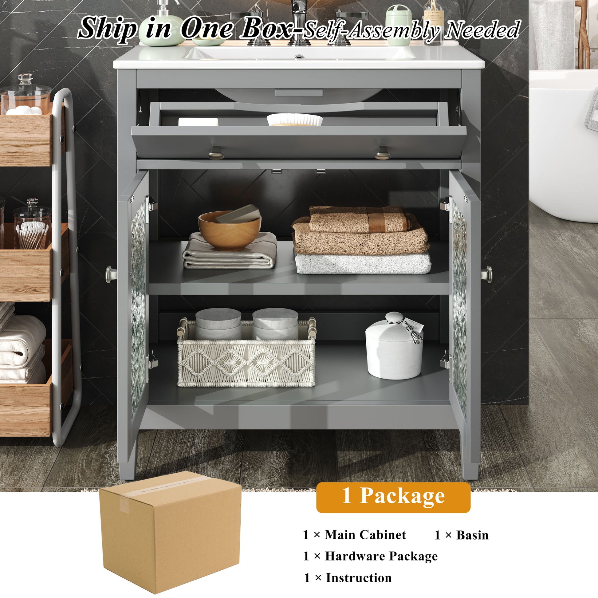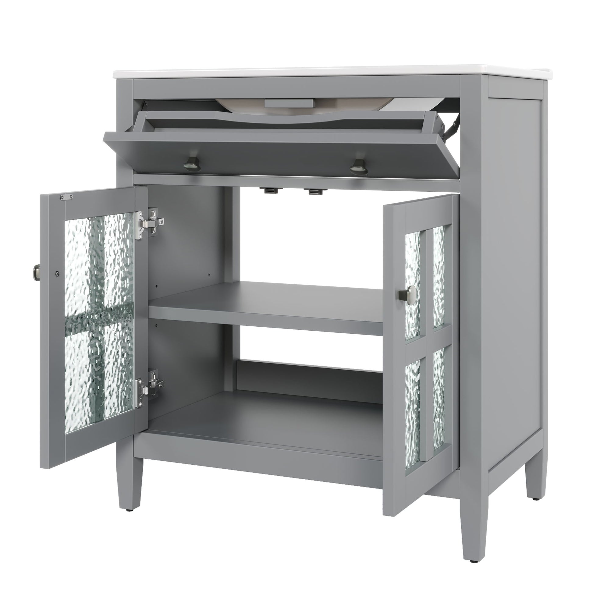 Bathroom Vanity With Sink, Adjustable Shelf & Tip Out Tray - Gray