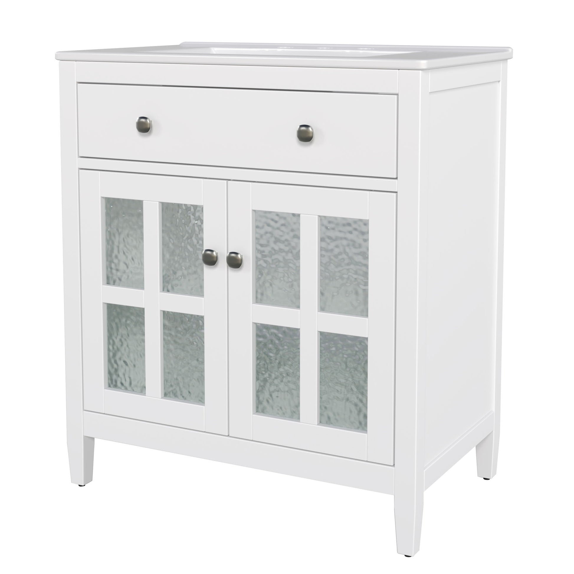 Bathroom Vanity With Sink, Adjustable Shelf & Tip Out Tray - White