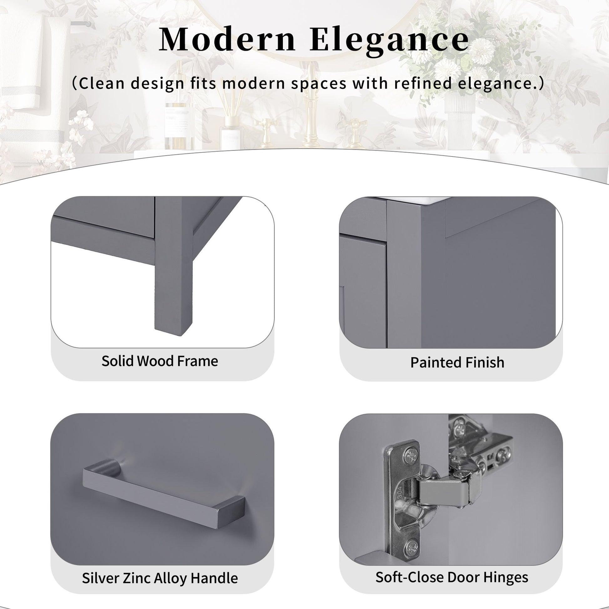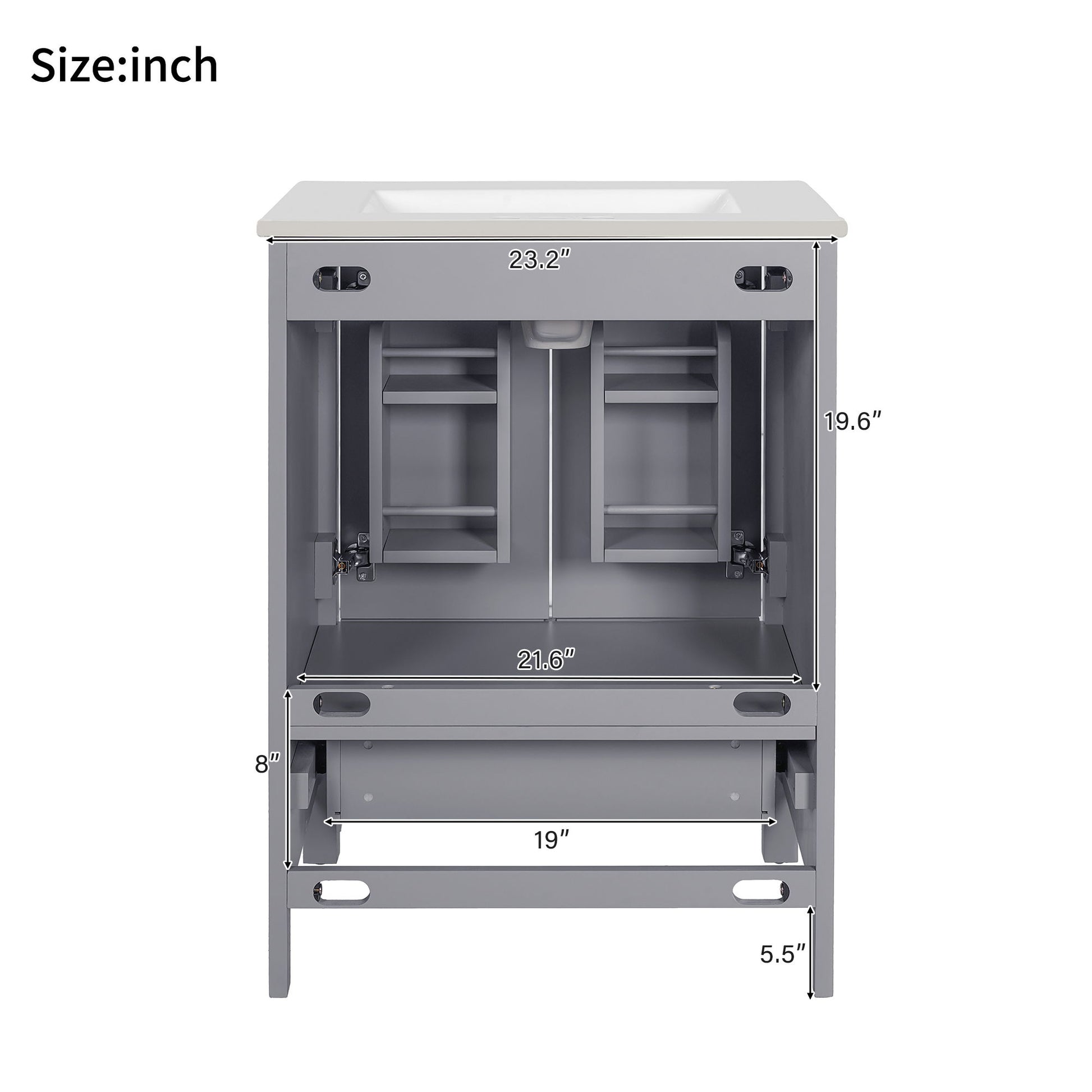 24" Bathroom Vanity With Integrated Undermount Sink, 2 Doors 1 Drawer, Soft Close Hinges, - Gray