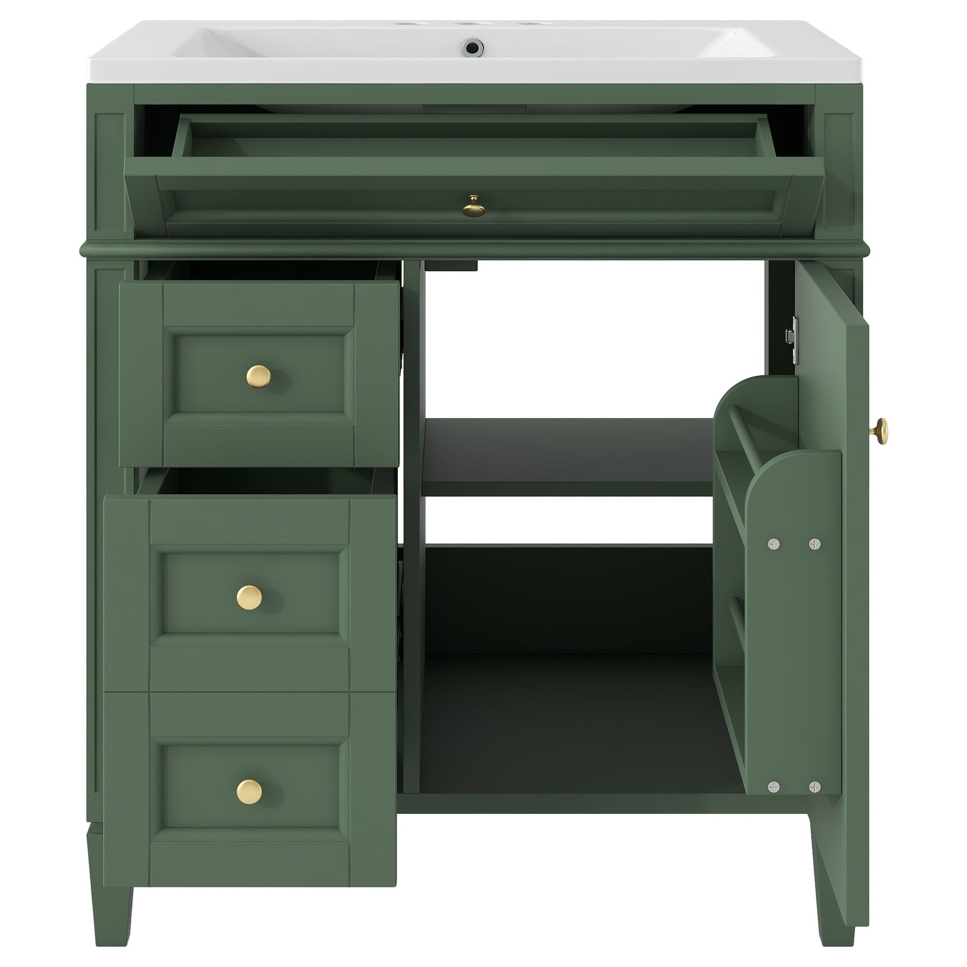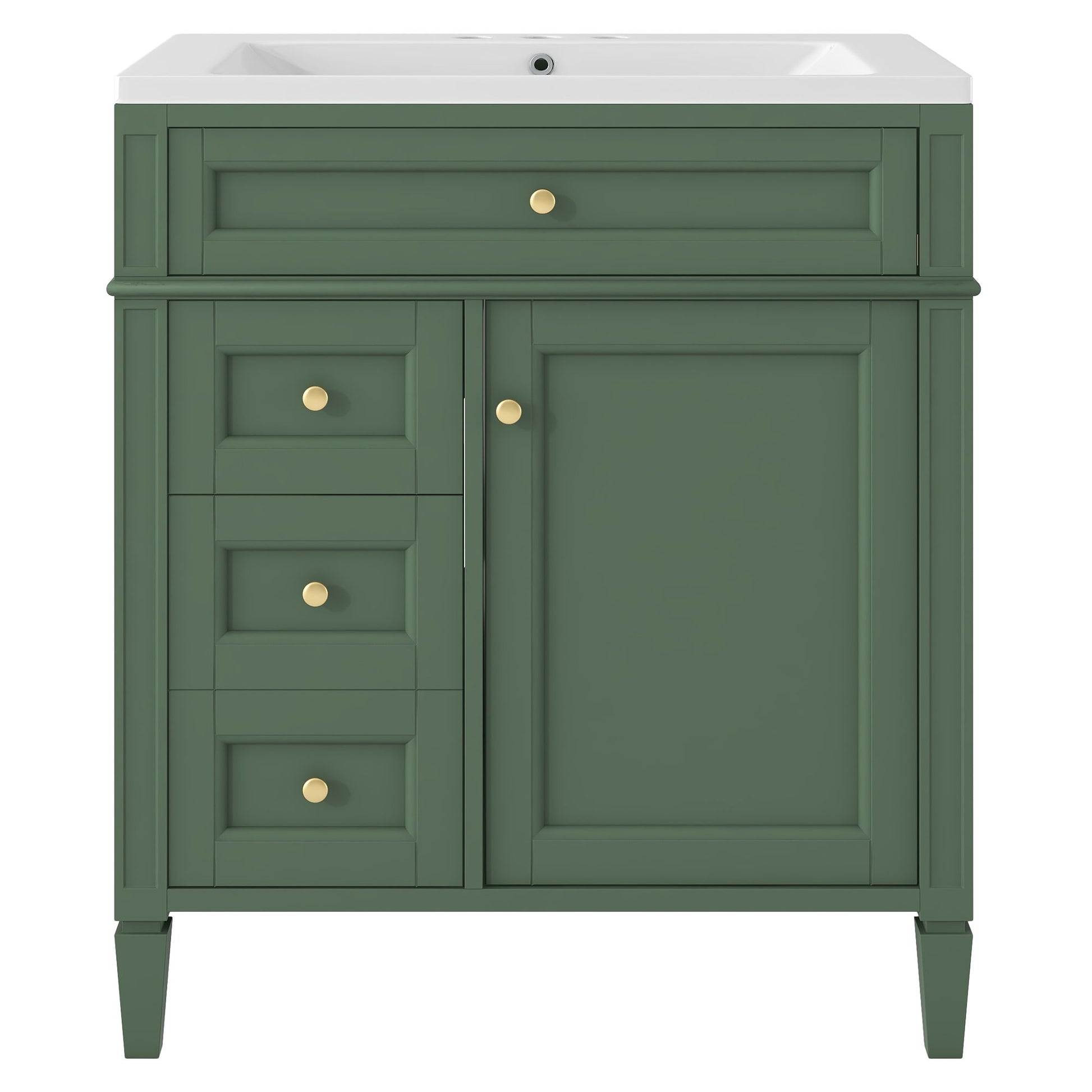 Bathroom Vanity With Top Sink, Storage Cabinet With 2 Doors And 3 Drawers, Freestanding Set With Mirror Cabinet - Green