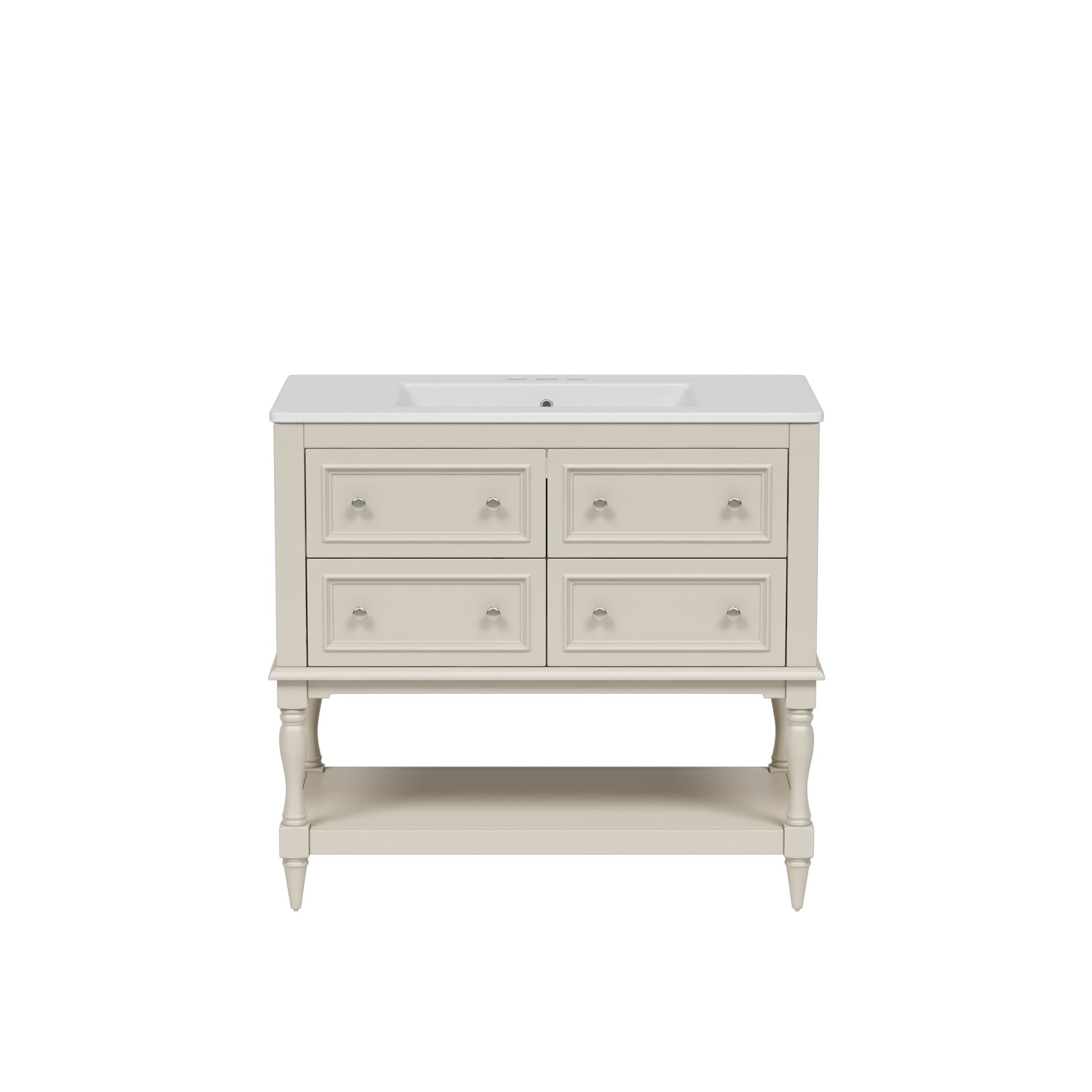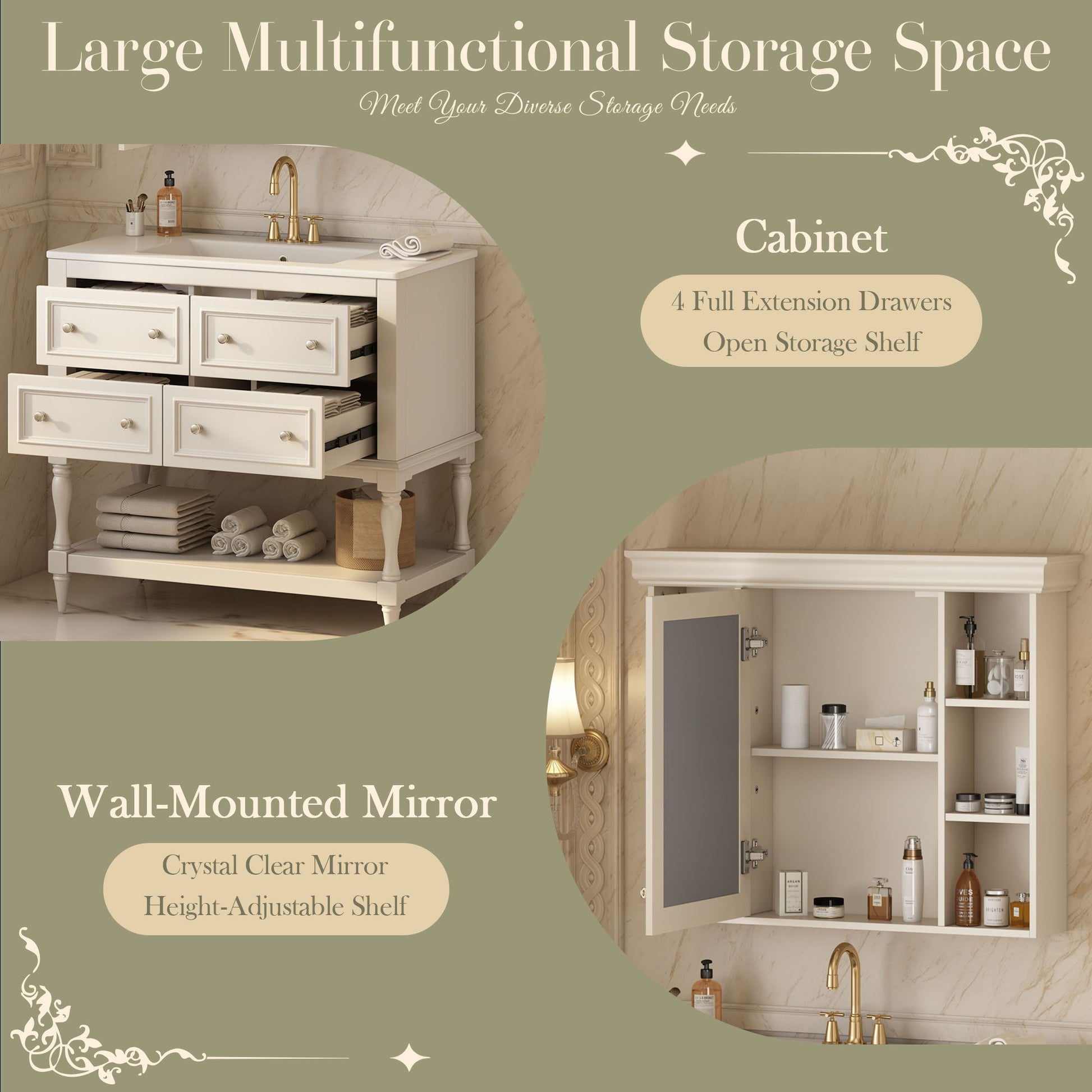 36" Bathroom Vanity With Medicine Cabinet, Storage Cabinet With 4 Drawers, Adjustable Shelf - Beige