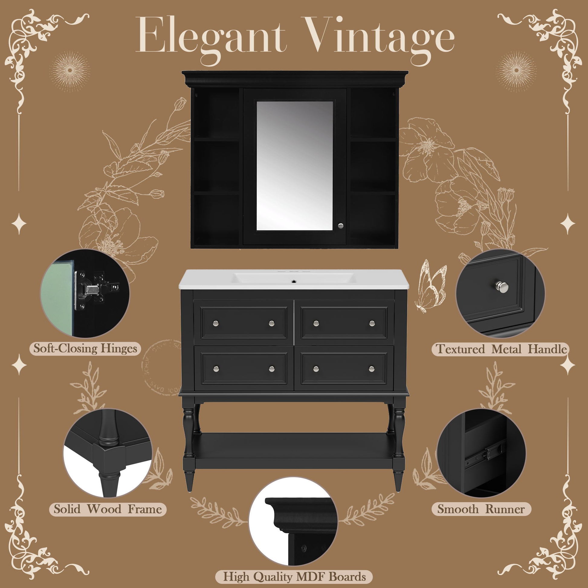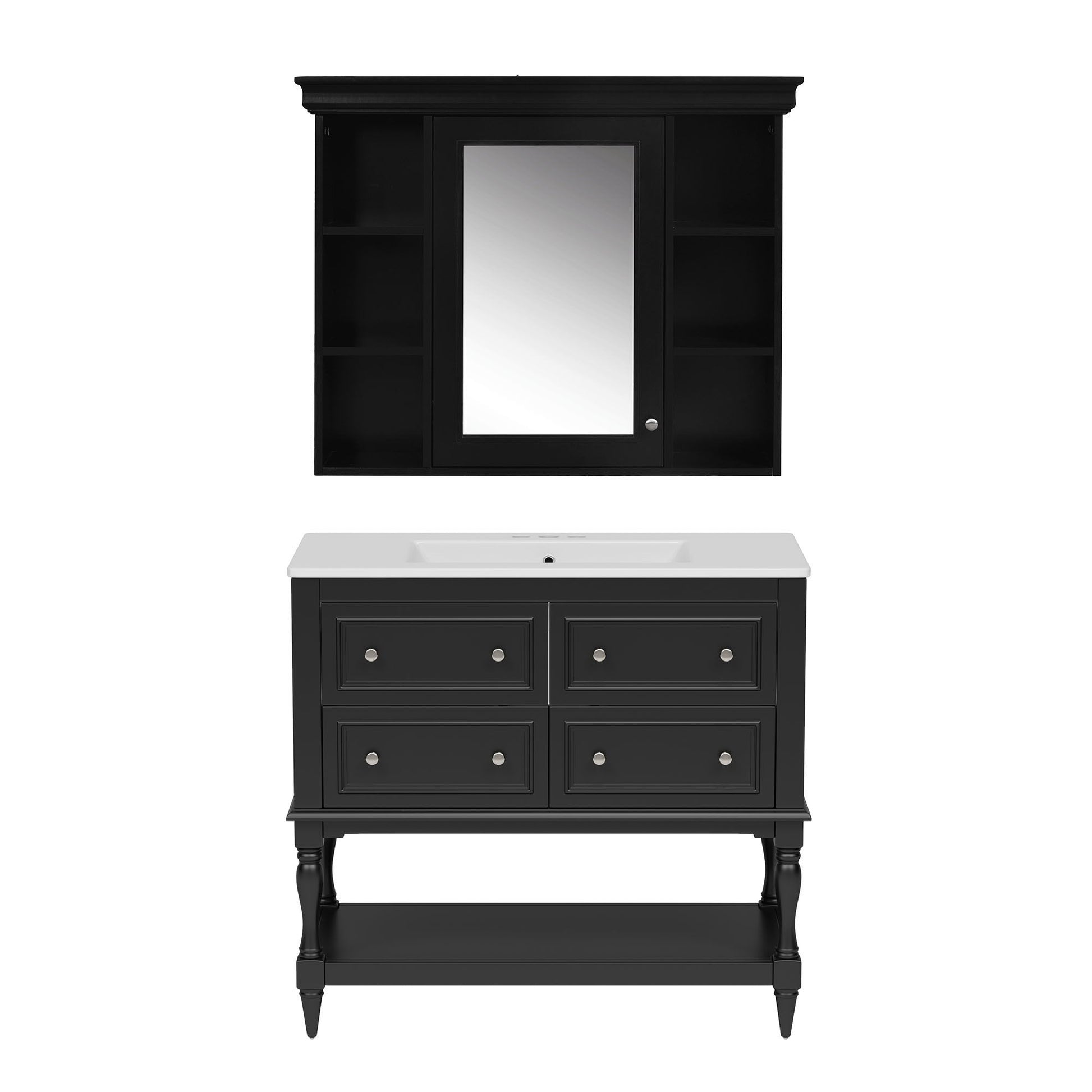 36" Bathroom Vanity With Medicine Cabinet, Storage Cabinet With 4 Drawers, Adjustable Shelf - Black