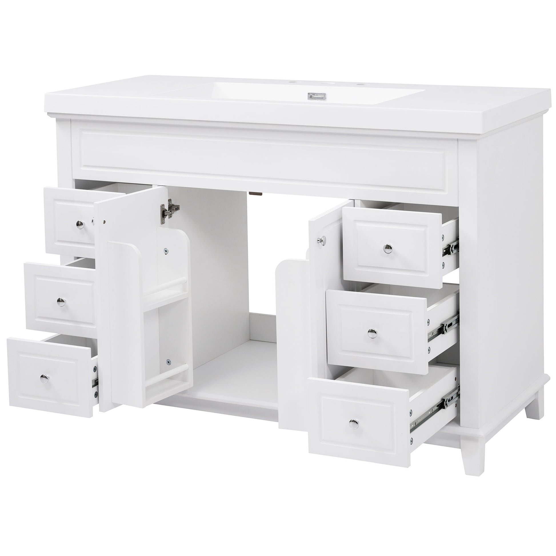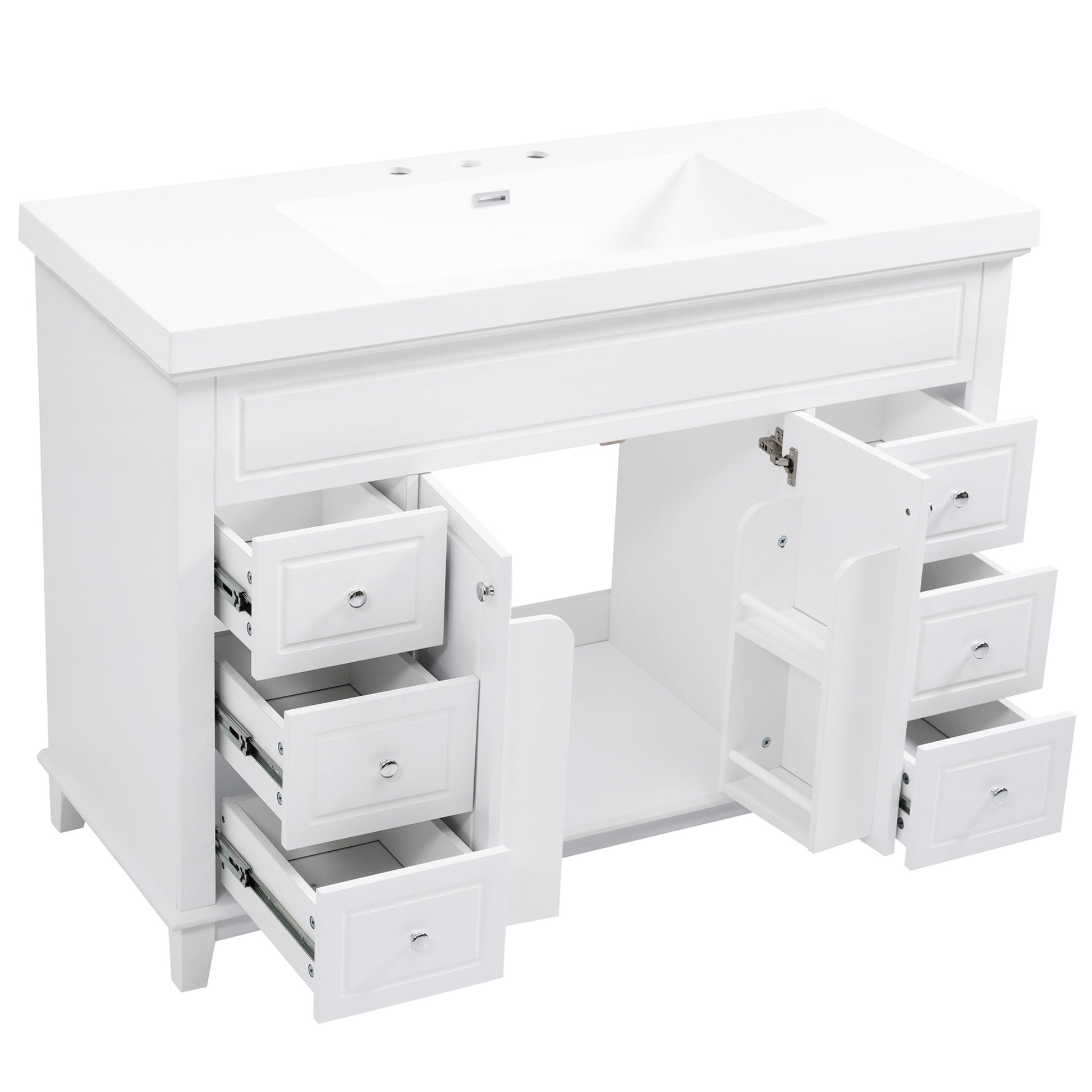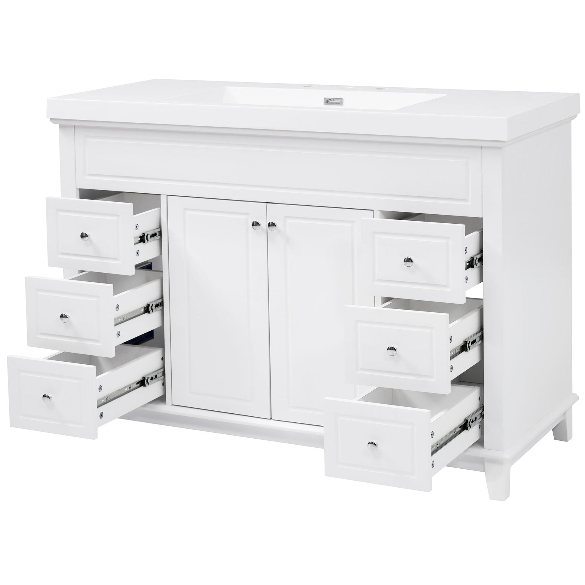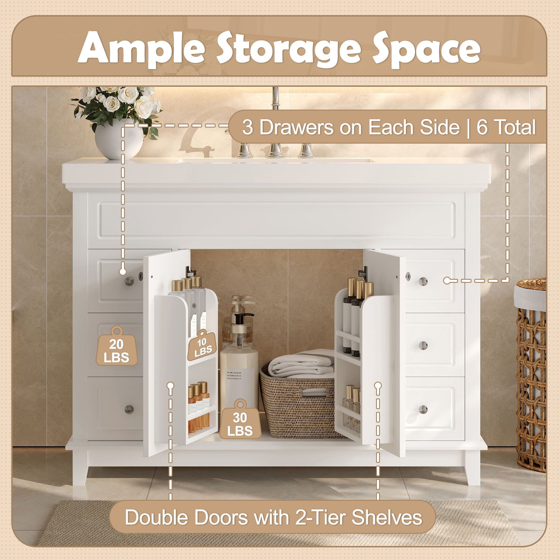 Bathroom Vanity With Sink, 6 Soft Close Drawers & Double Doors - White