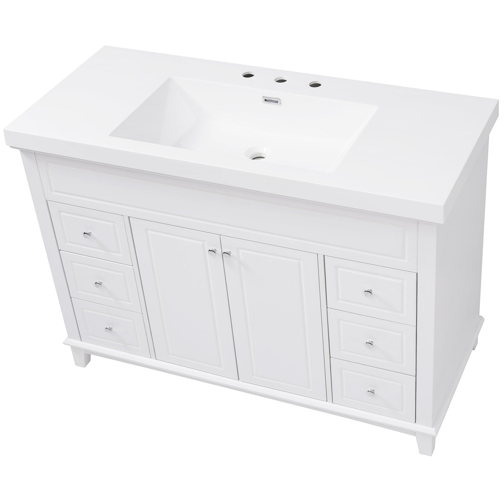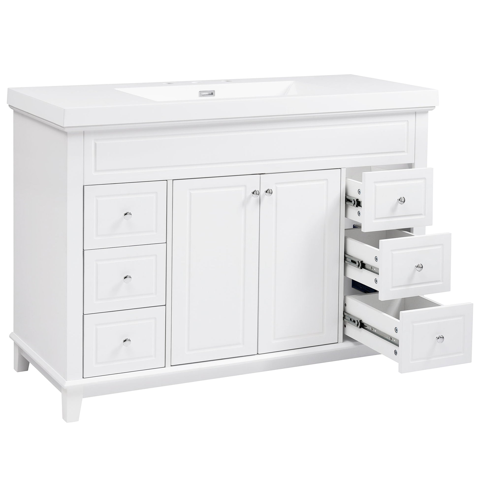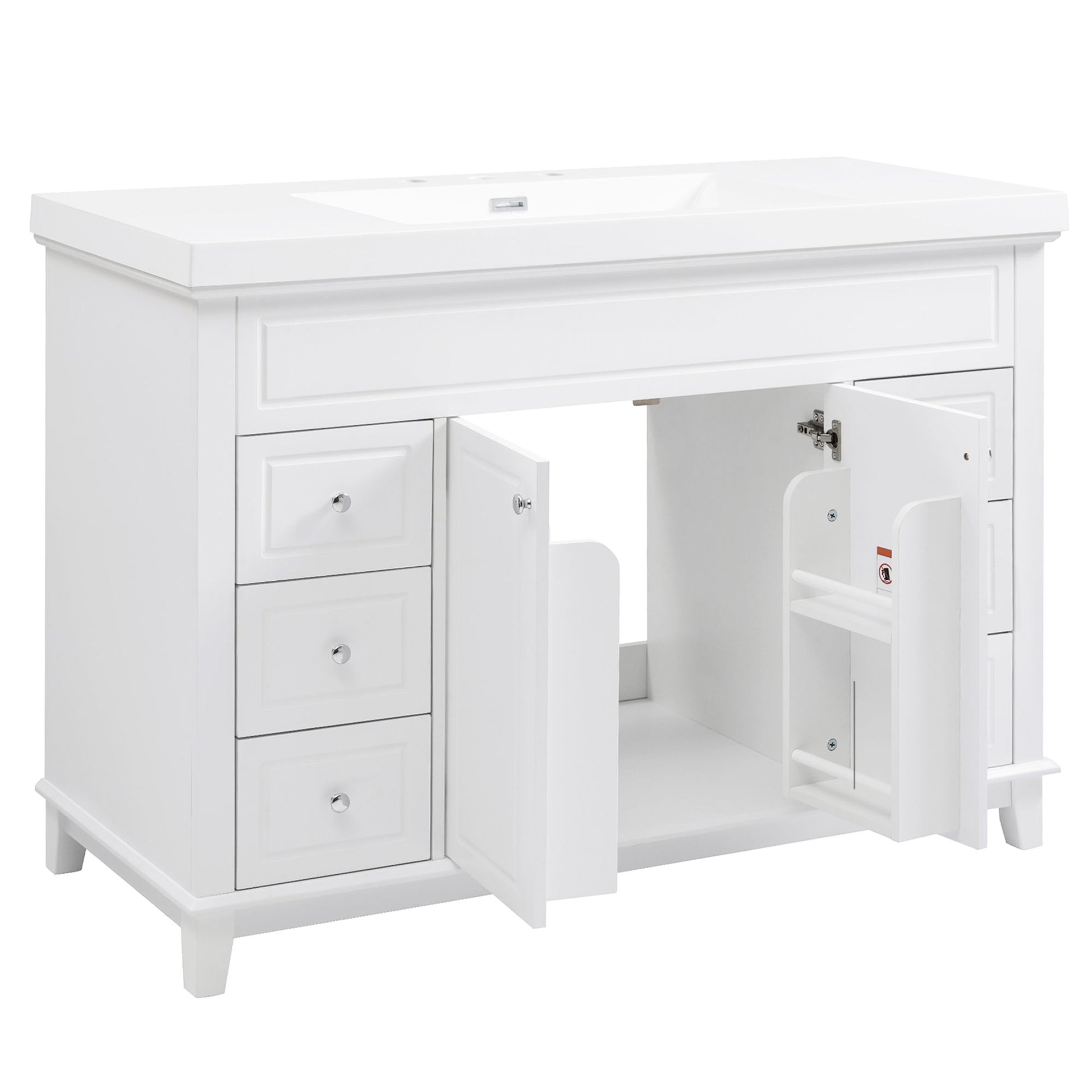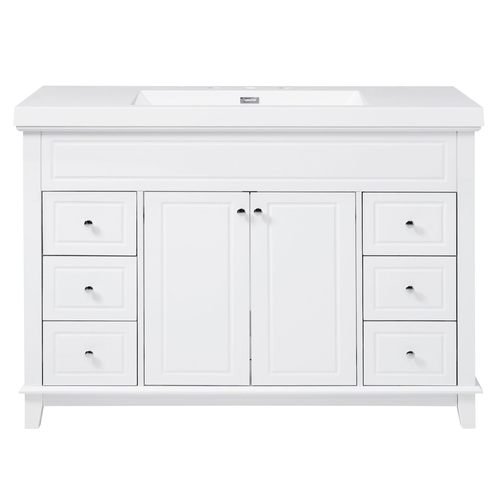 Bathroom Vanity With Sink, 6 Soft Close Drawers & Double Doors - White