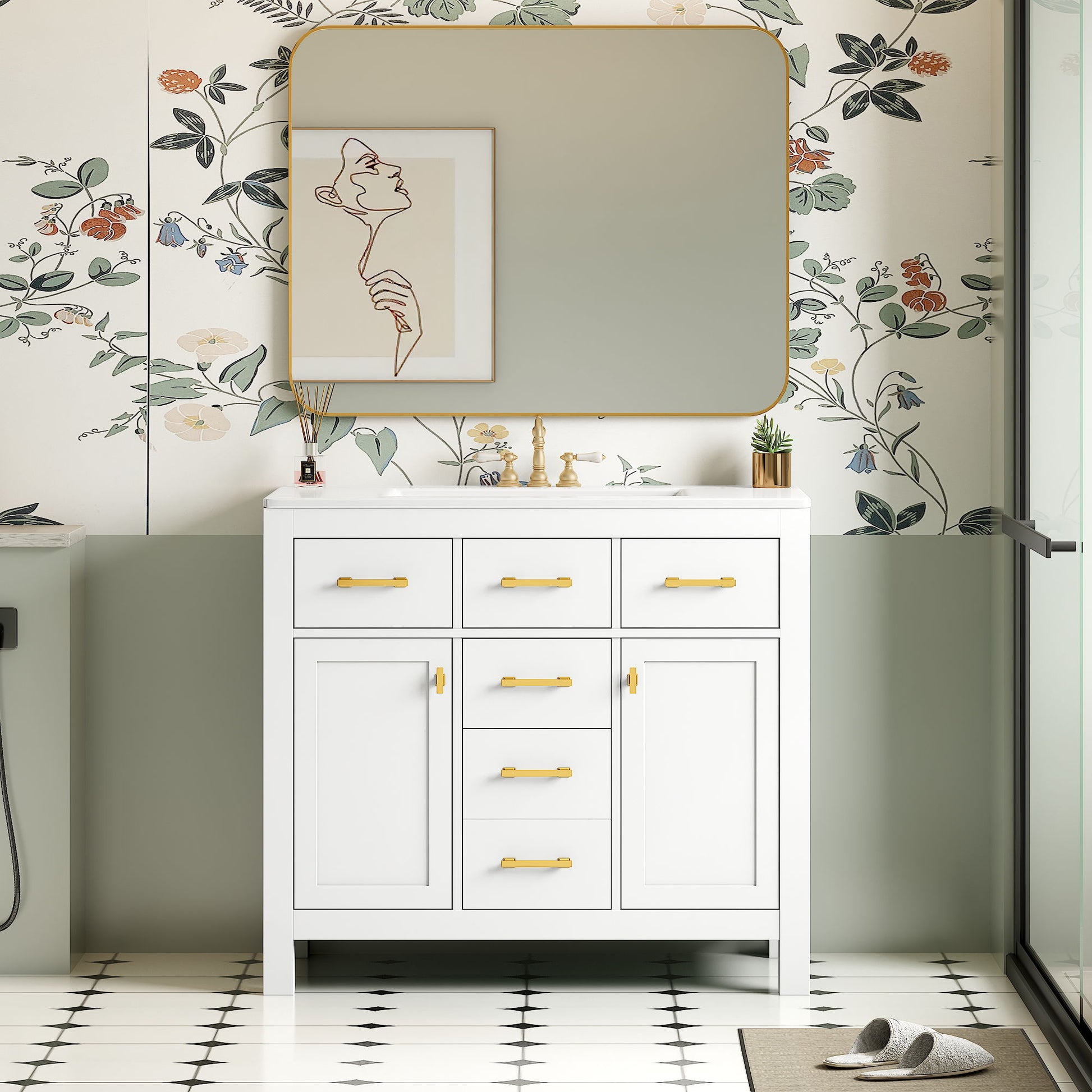 Bathroom Vanity With Sink, Freestanding Cabinet With 4 Drawers & 2 Soft Close Doors - White