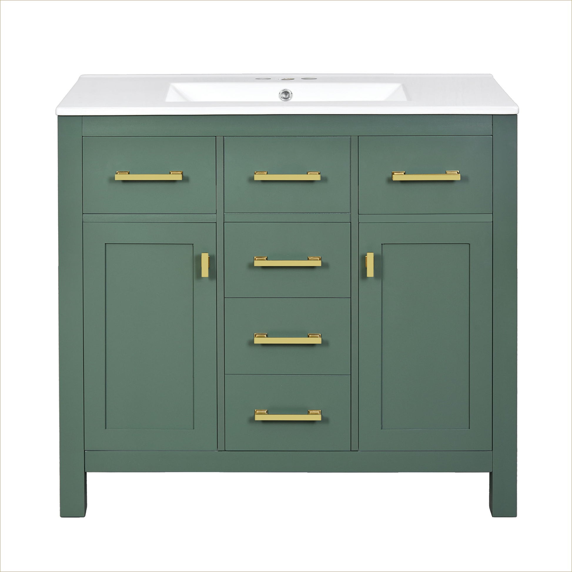 Bathroom Vanity With Sink, Freestanding Cabinet With 4 Drawers & 2 Soft Close Doors - Green