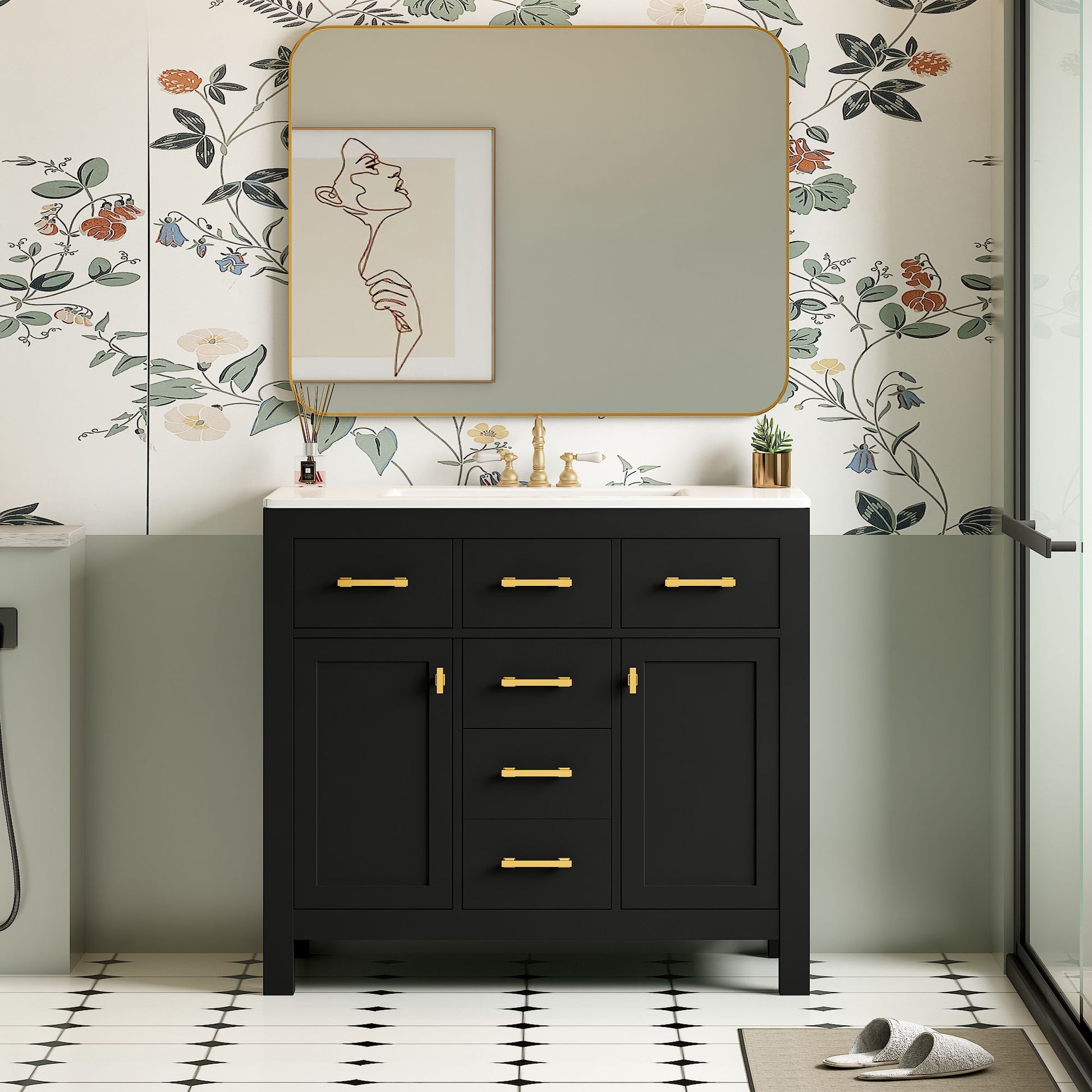 Bathroom Vanity With Sink, Freestanding Cabinet With 4 Drawers & 2 Soft Close Doors - Black