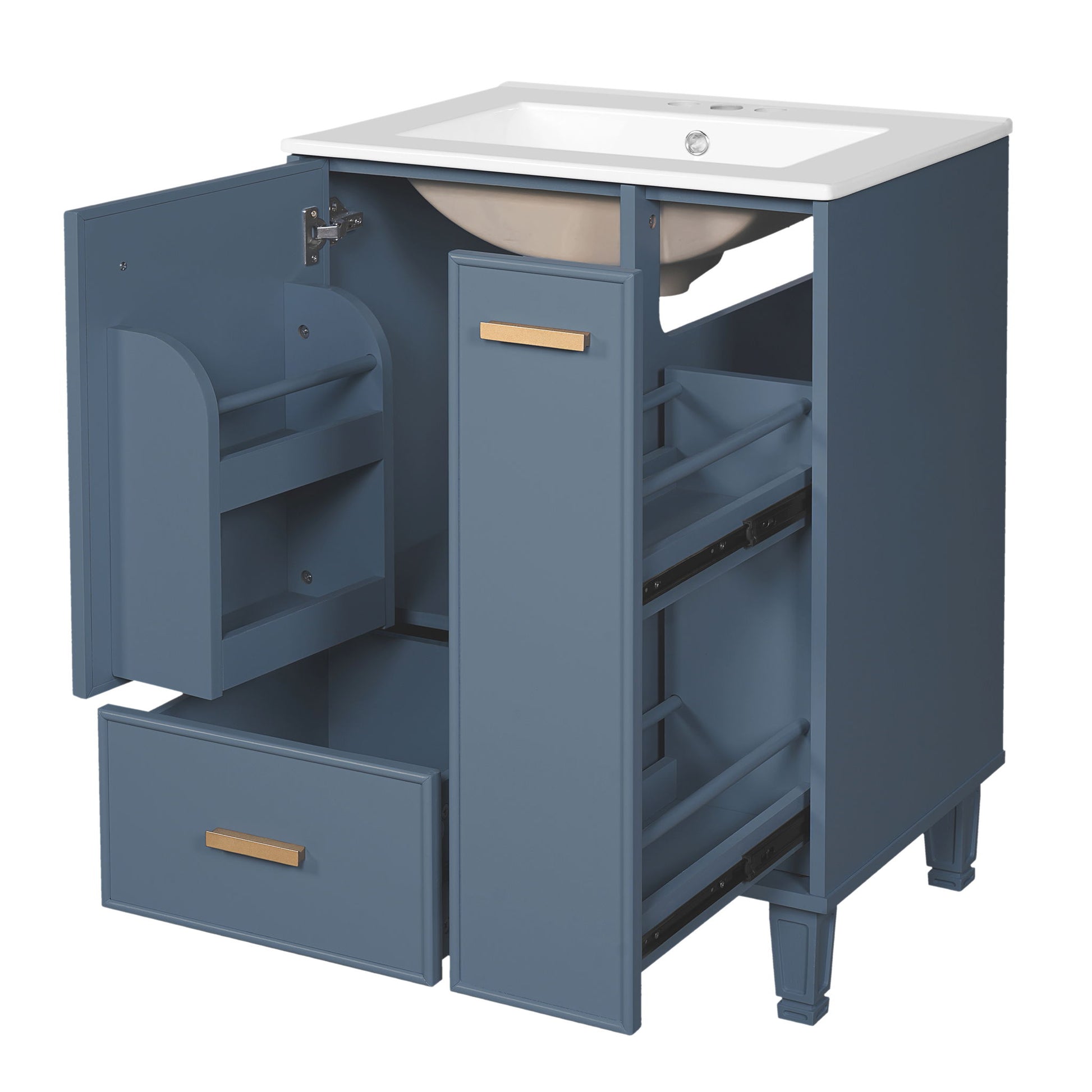24" Bathroom Vanity With Sink, 1 Door, 2 Drawers, 2 Tier Pull Out Basket - Gray