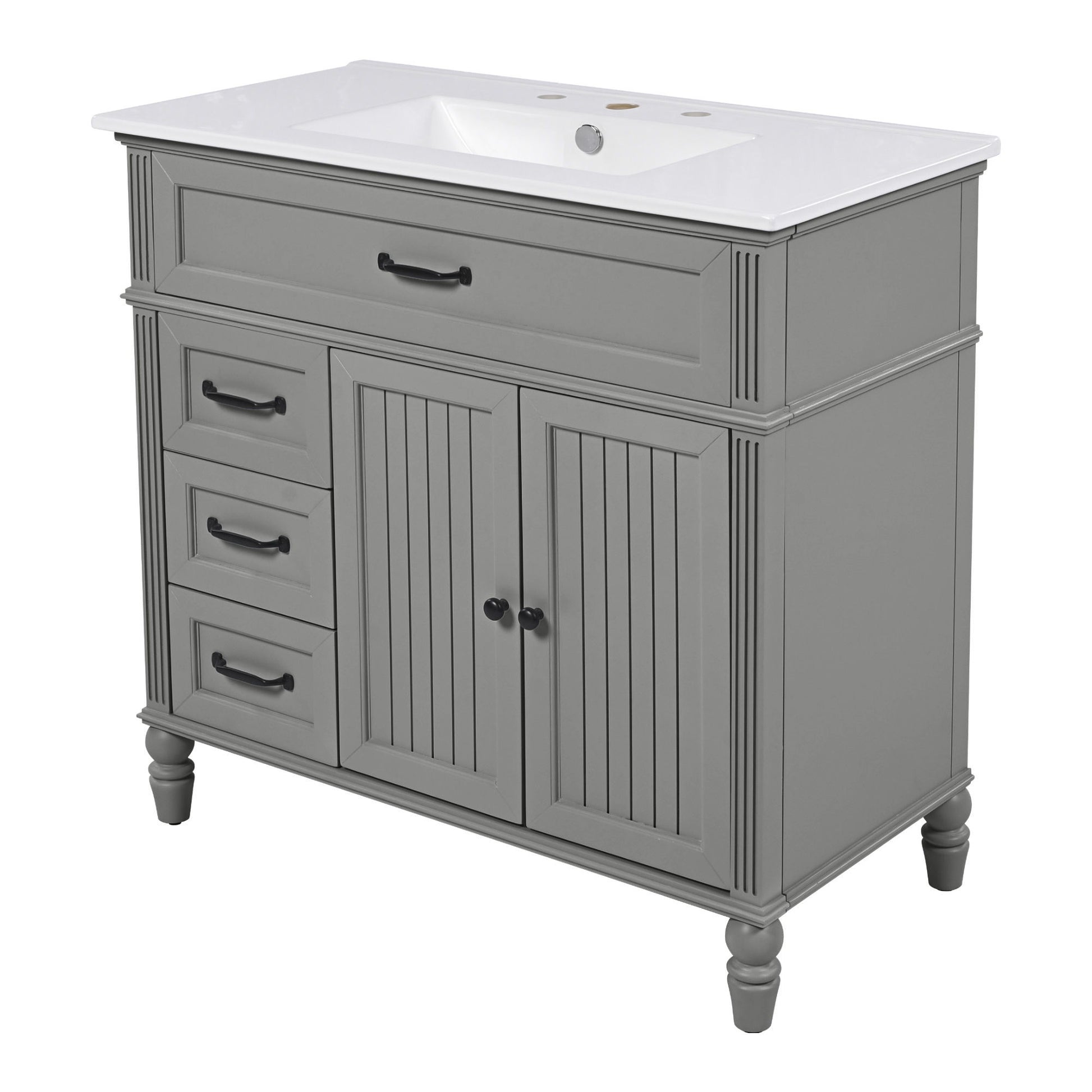 Bathroom Vanity With Sink, Freestanding Cabinet With Drawers - Gray