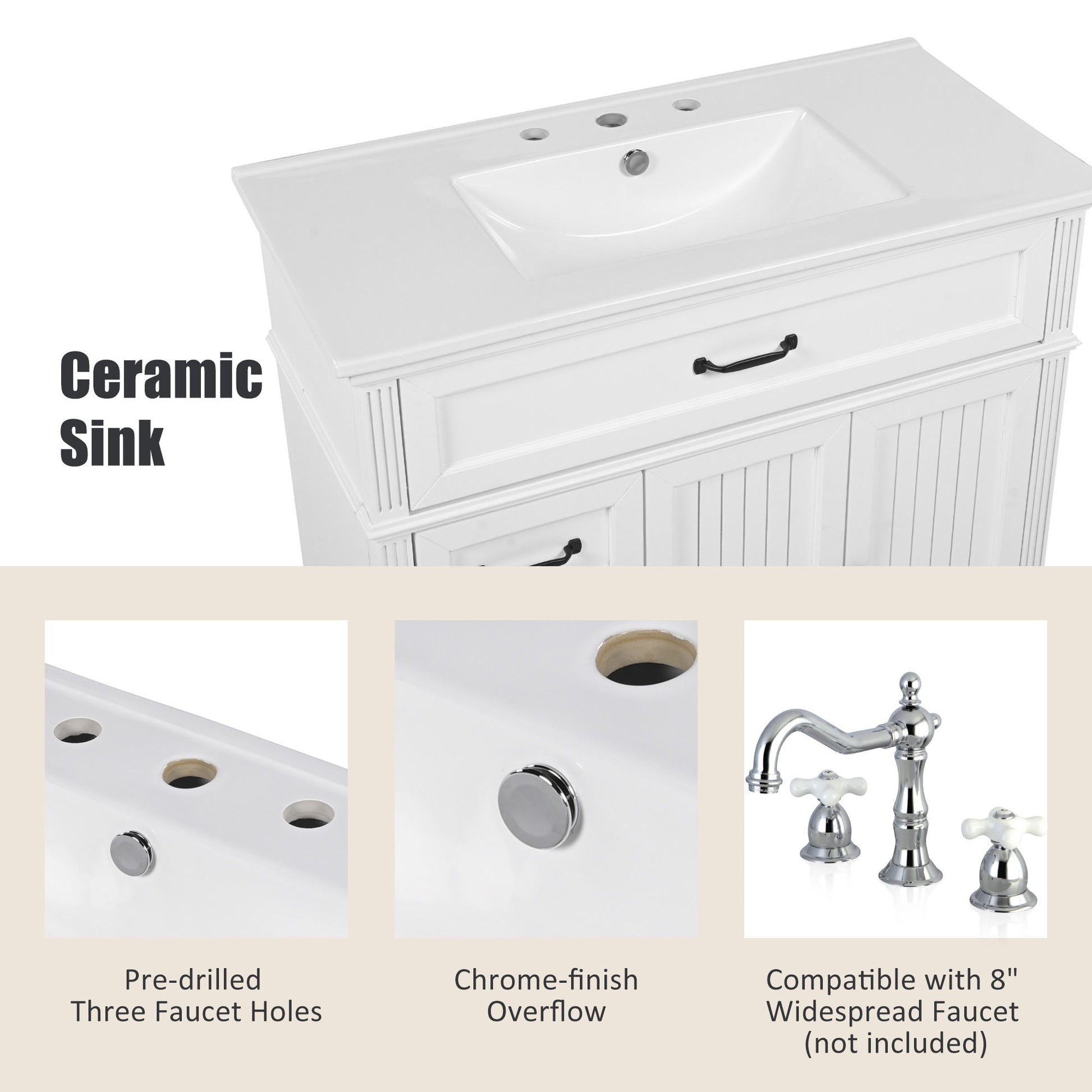 Bathroom Vanity With Sink, Freestanding Cabinet With Drawers - White