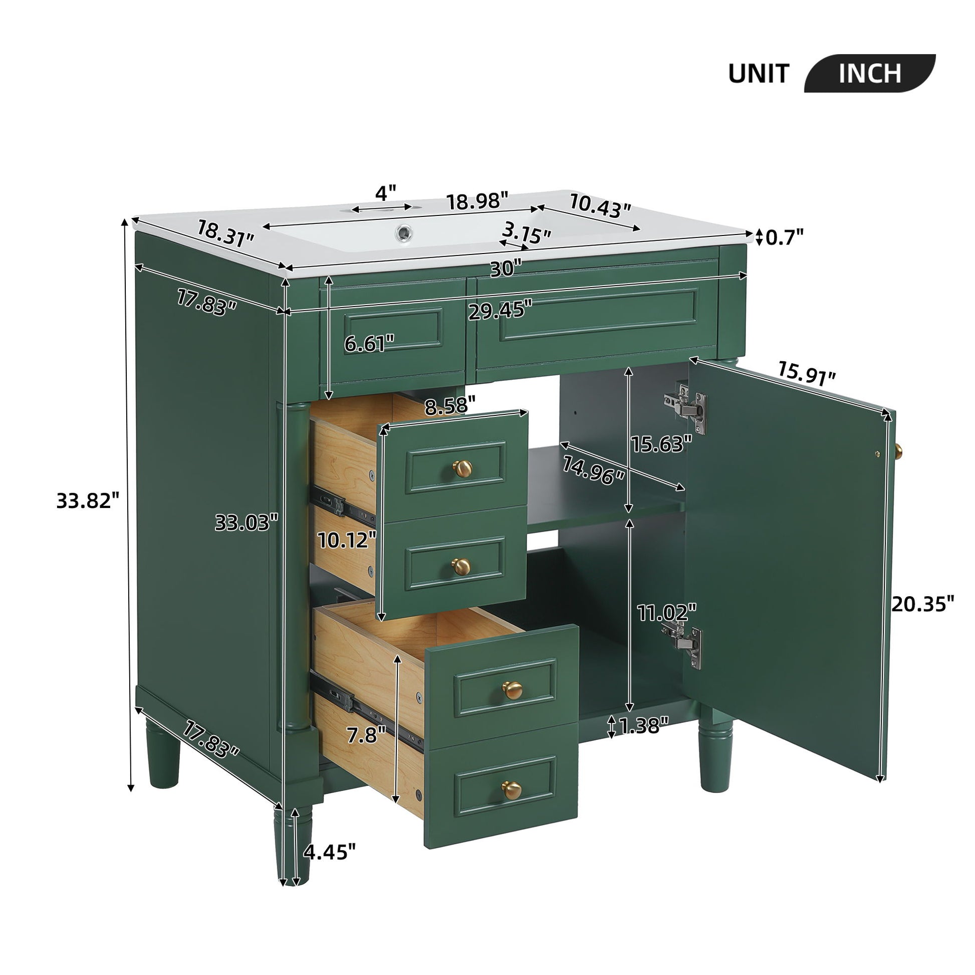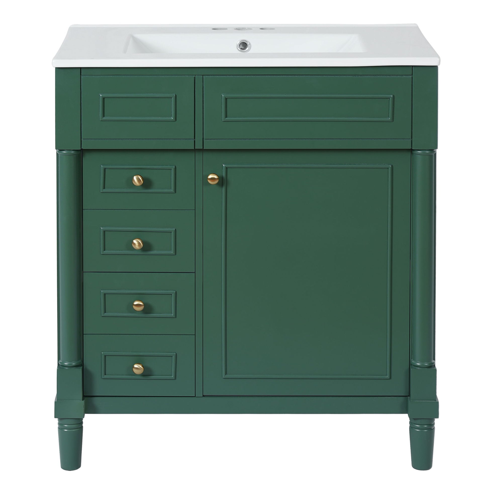 Bathroom Vanity With Sink, Freestanding Storage Cabinet & 2 Drawers And Soft Closing Door - Green