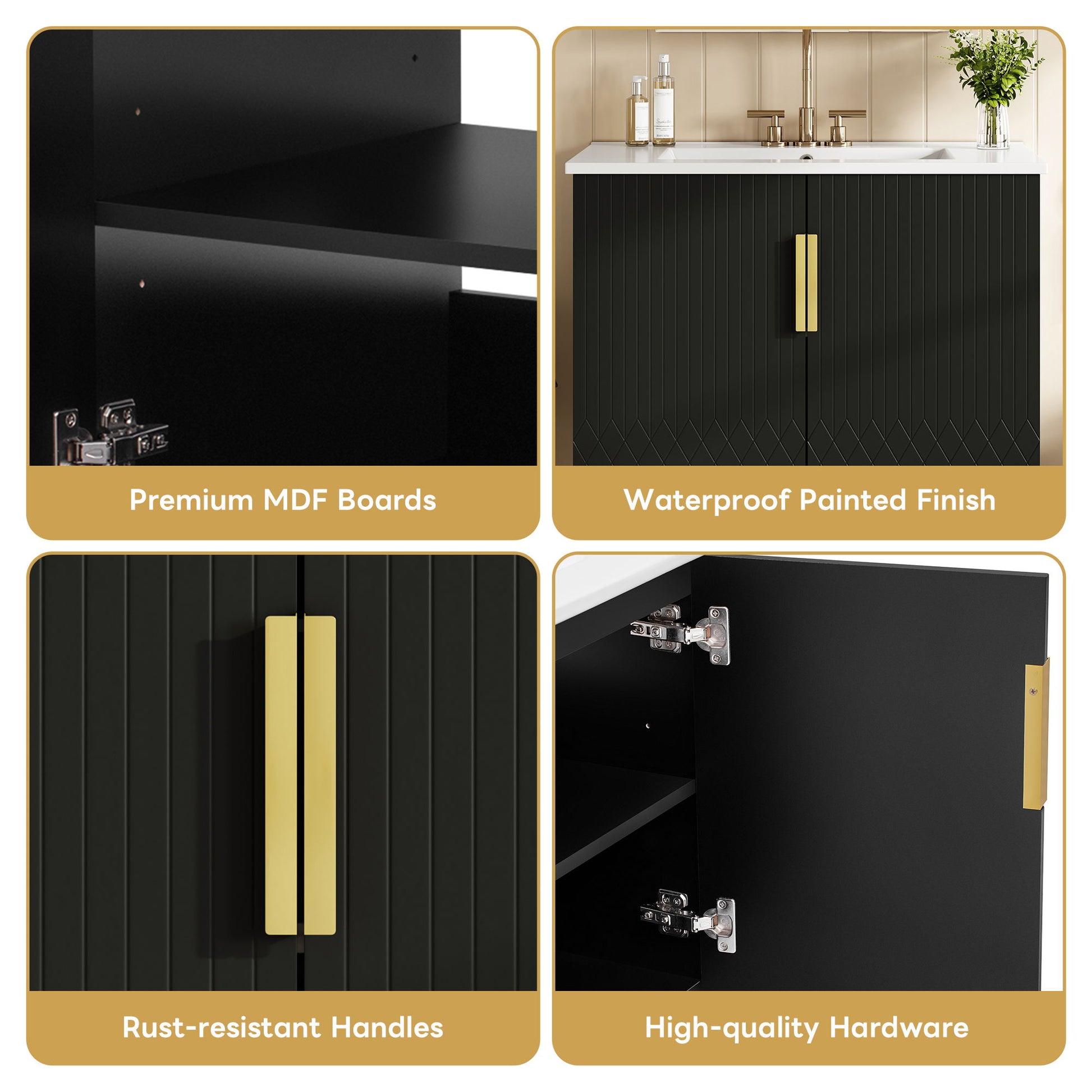 Bathroom Vanity With Sink, Rectangular Storage Cabinet, Sink - Black