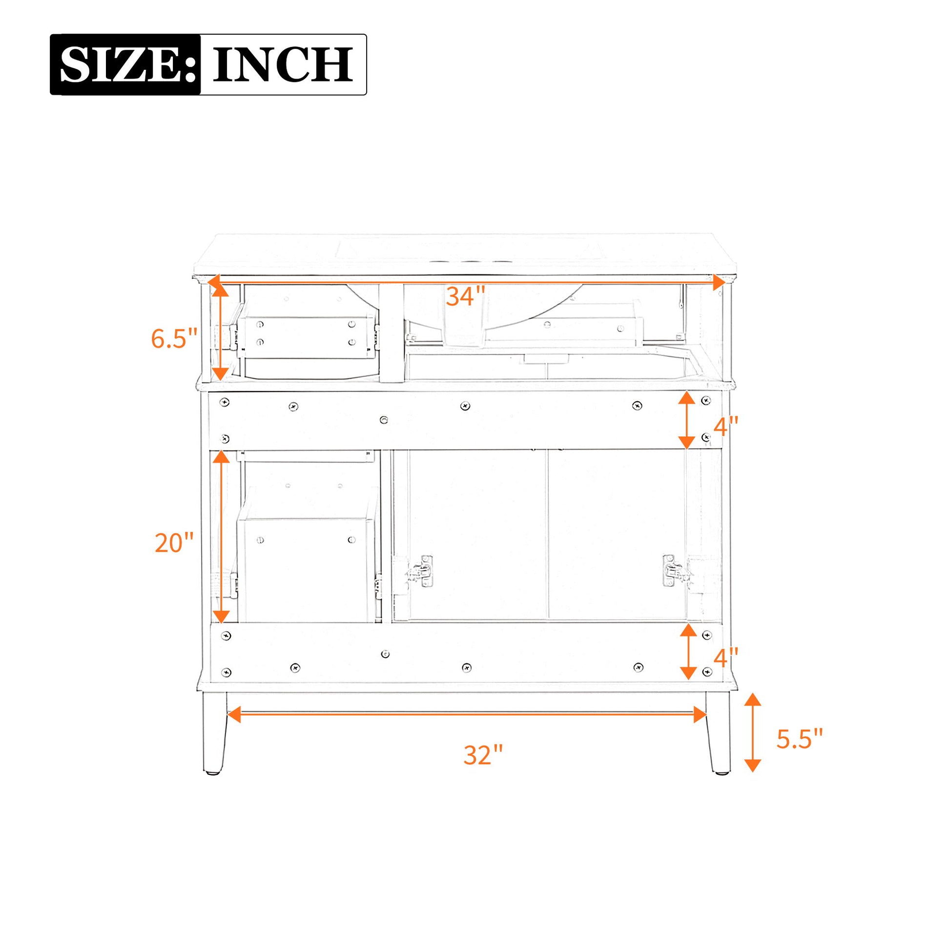 - Ample Storage Space: Four drawers and two cabinet doors provide organized storage for diverse bathroom items