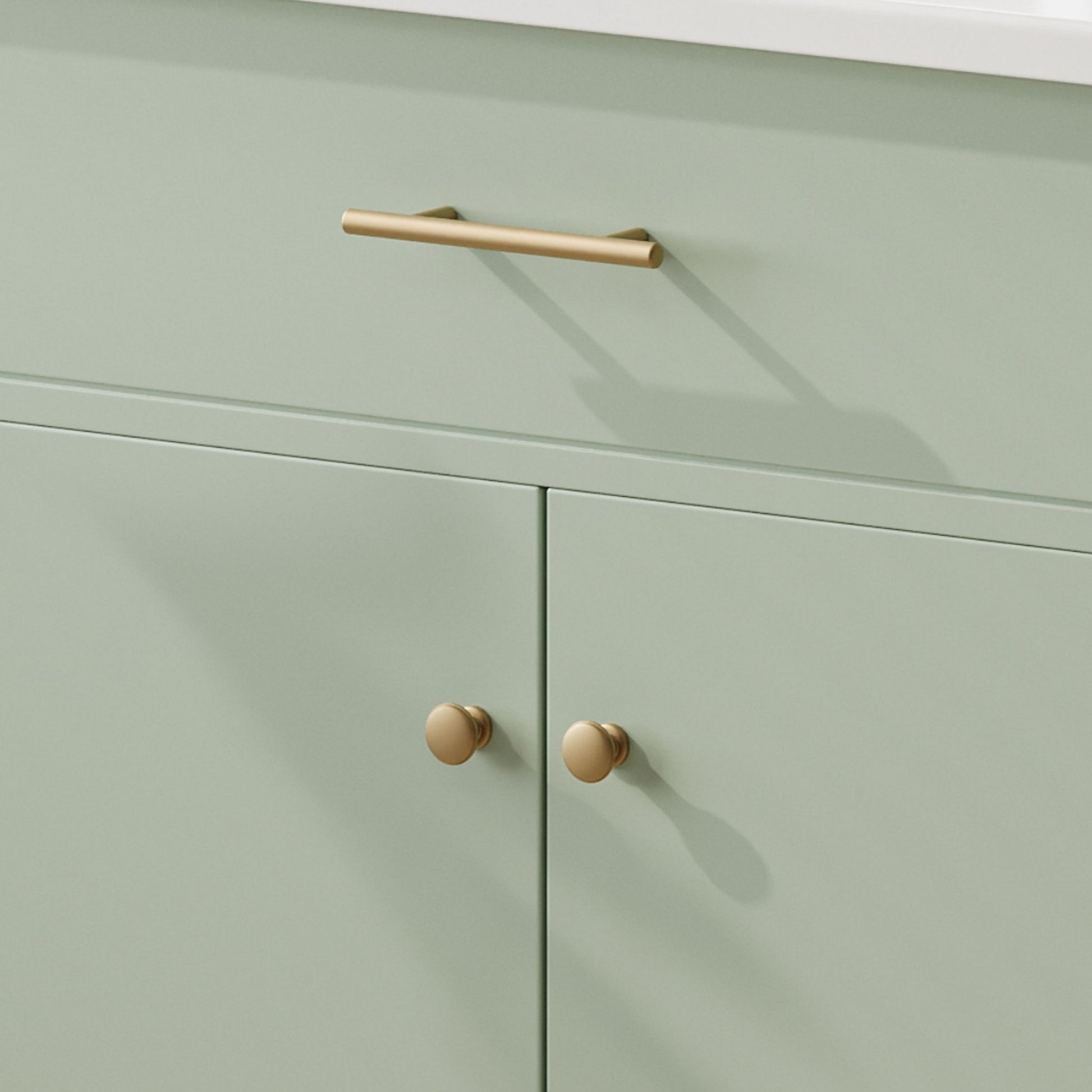 - Matte Gold Pulls: Subtle metallic accents that complement warm-toned fixtures without overpowering the design.