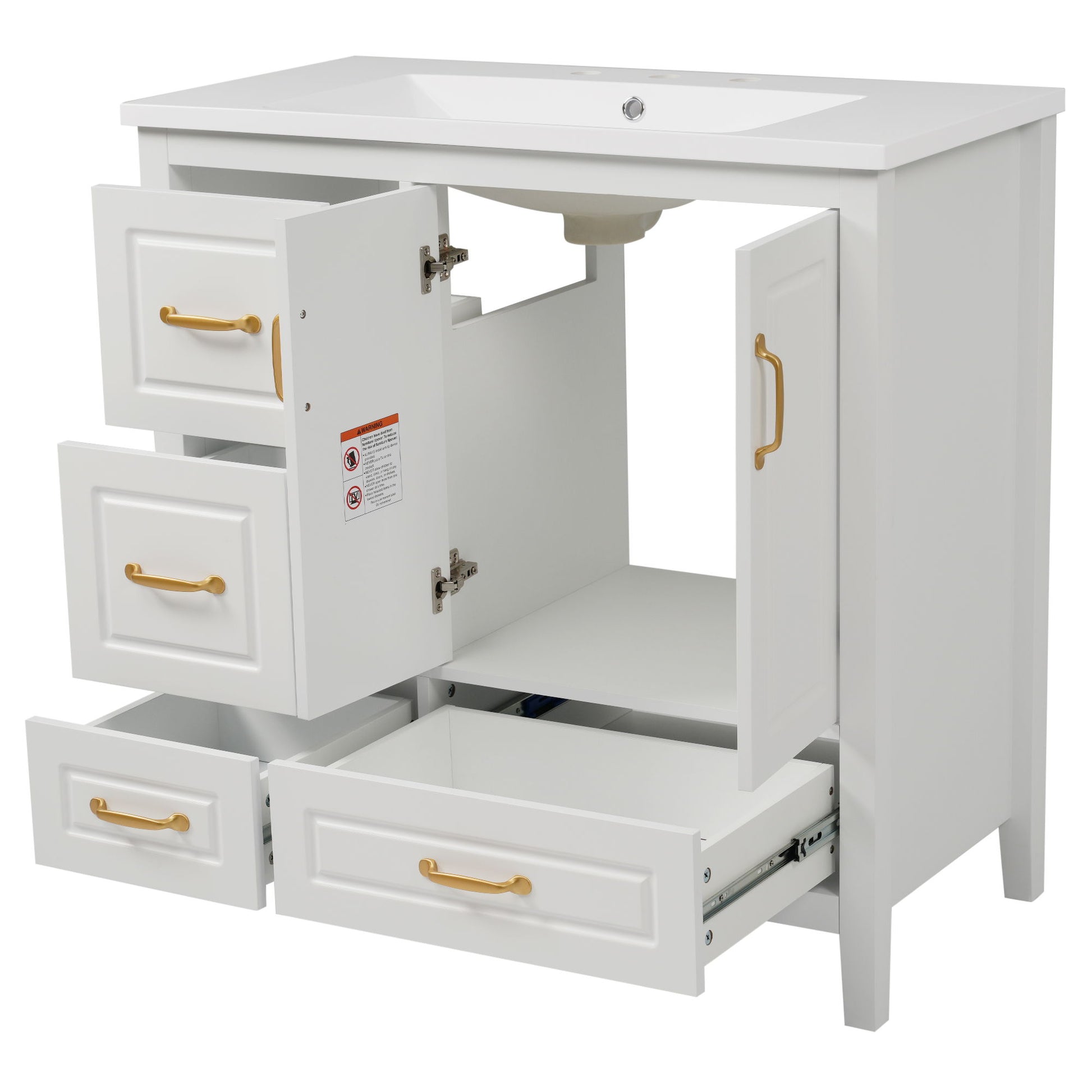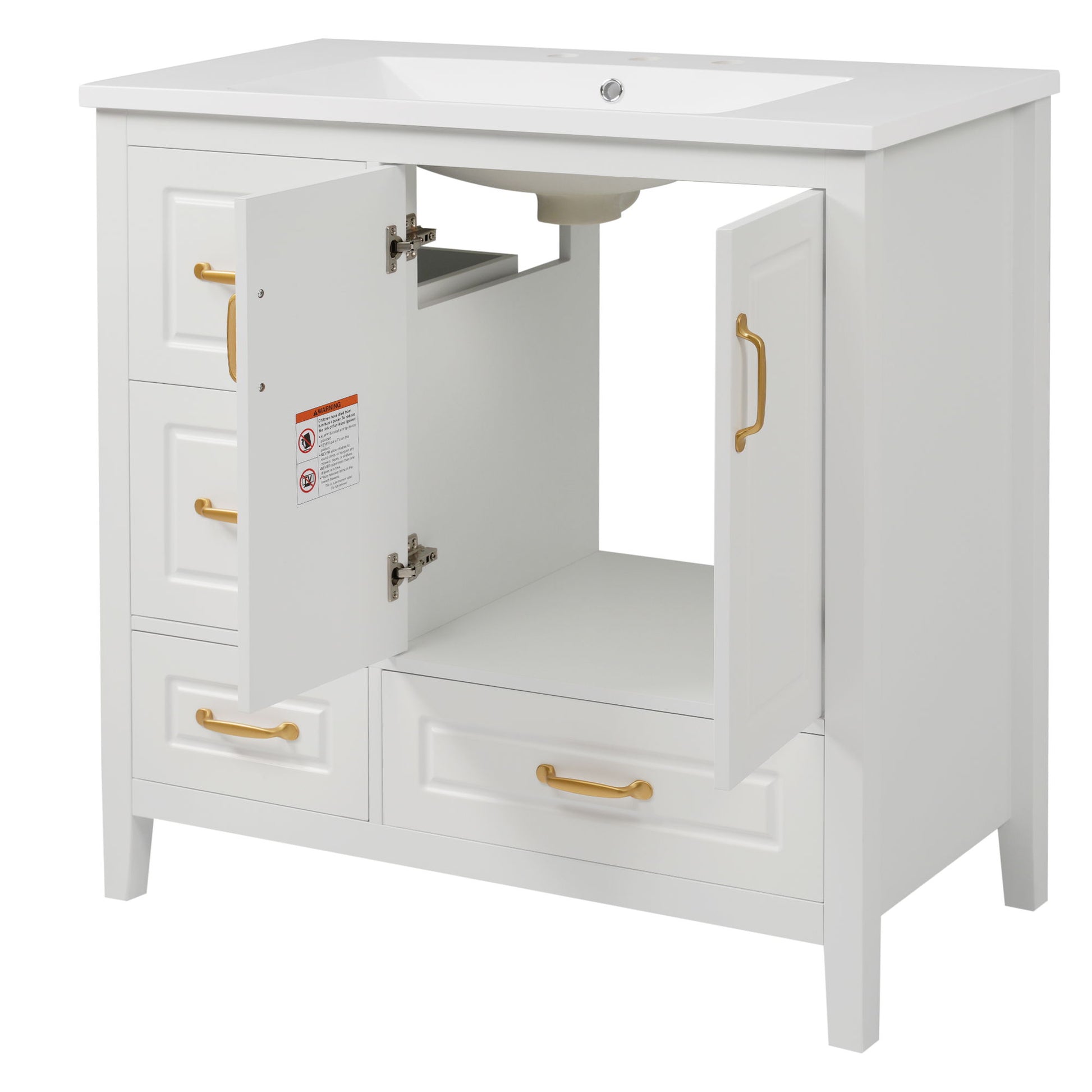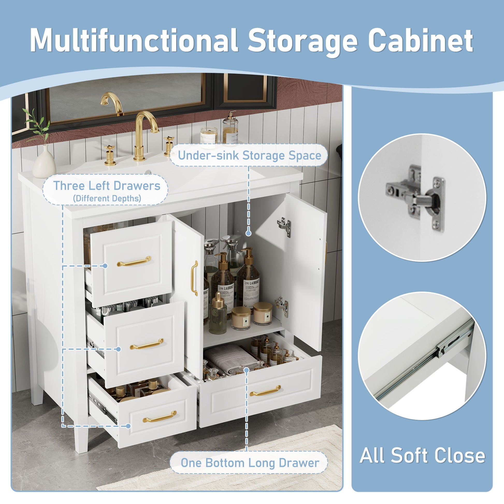 Elegant Freestanding Bathroom Vanity With Sink, Soft Closing Cabinet & Drawers - White