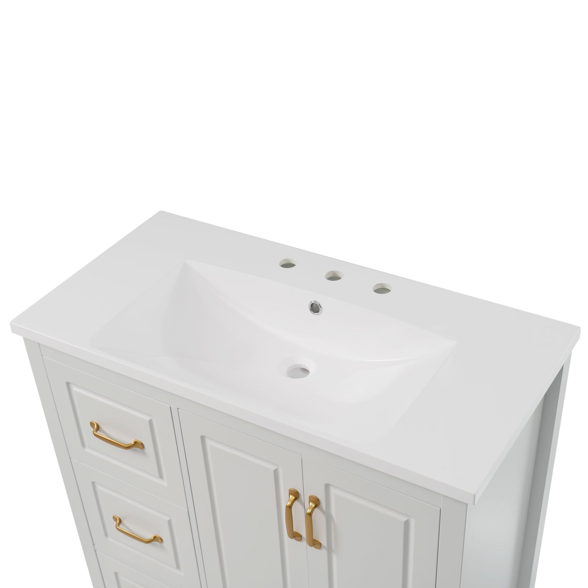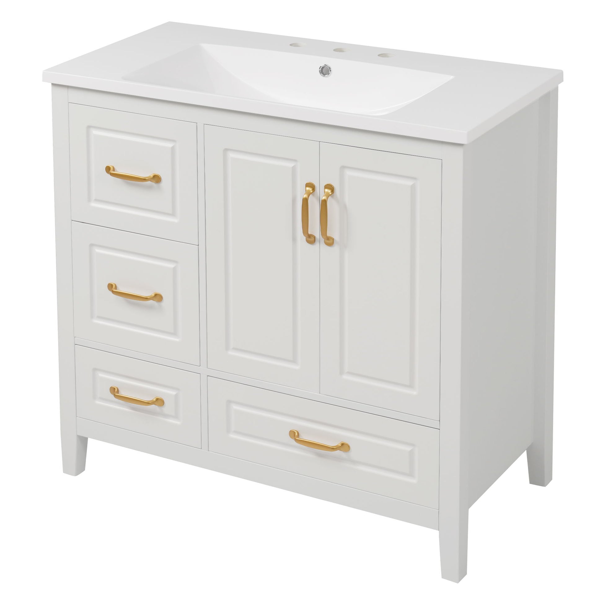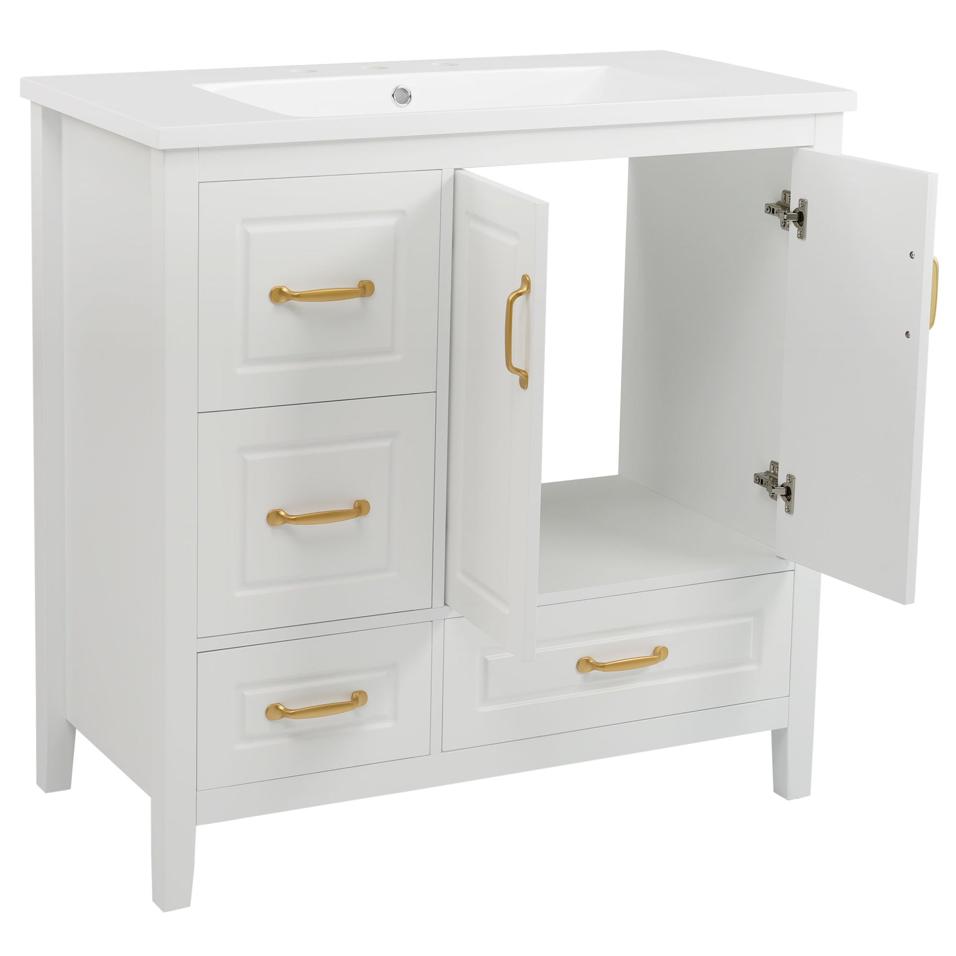 Elegant Freestanding Bathroom Vanity With Sink, Soft Closing Cabinet & Drawers - White