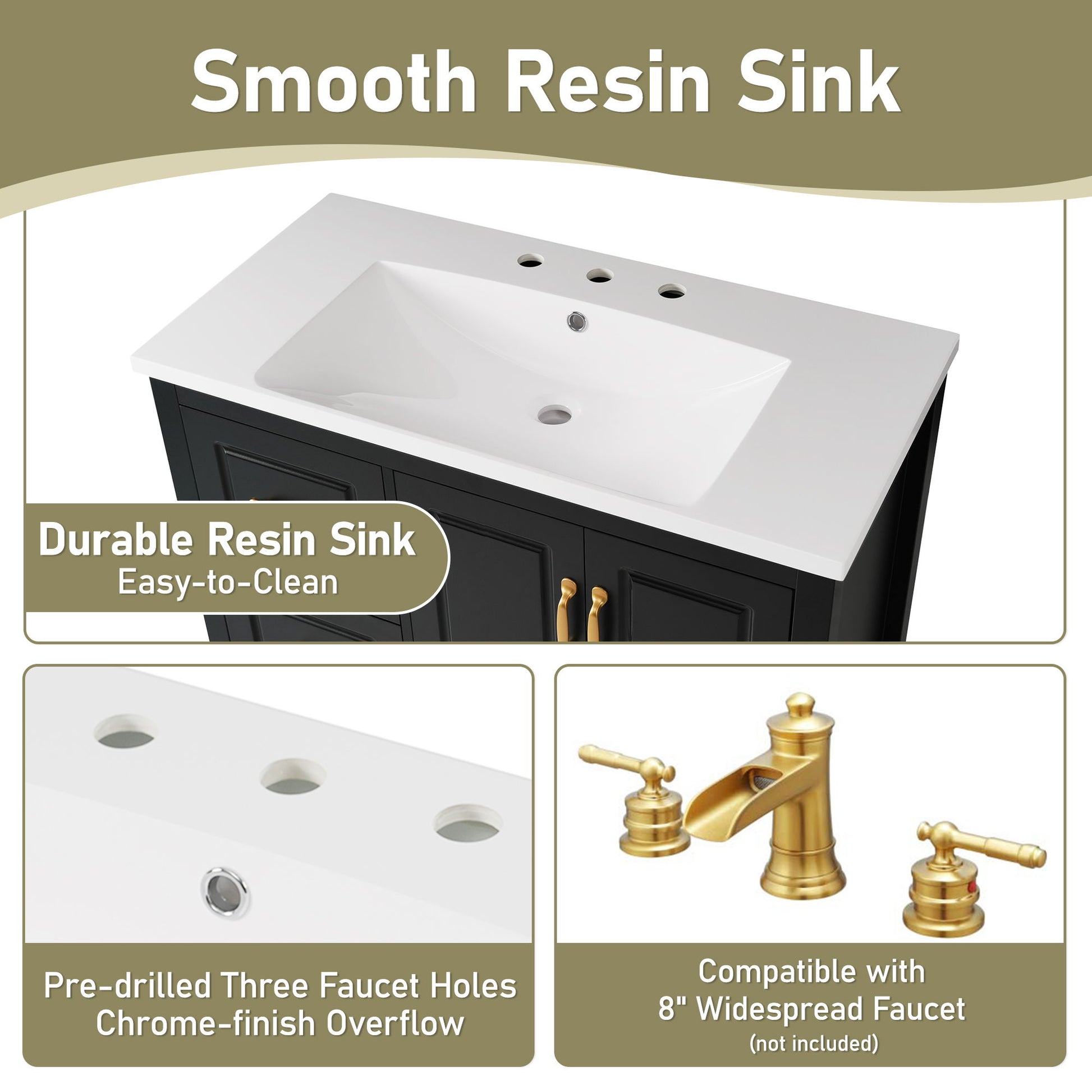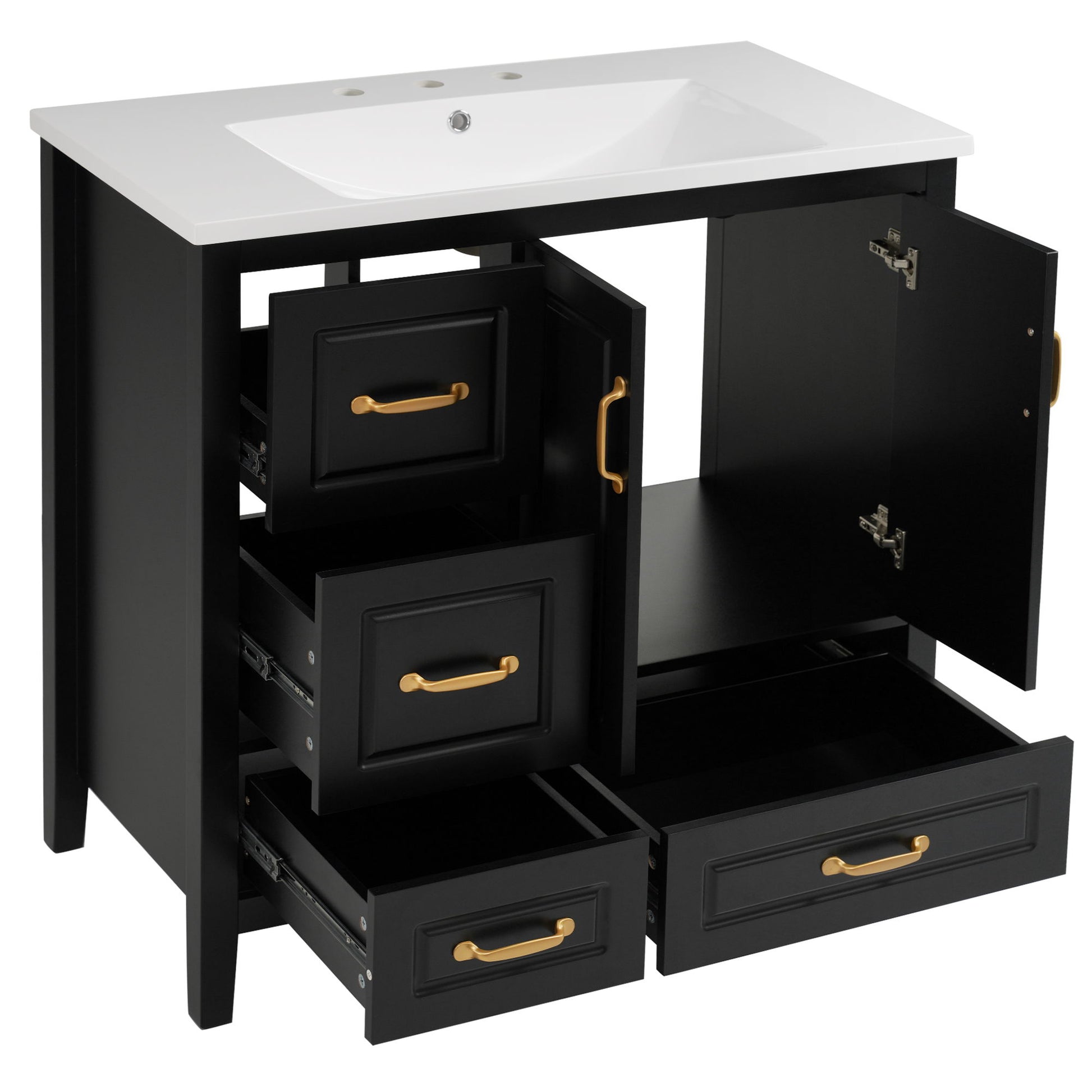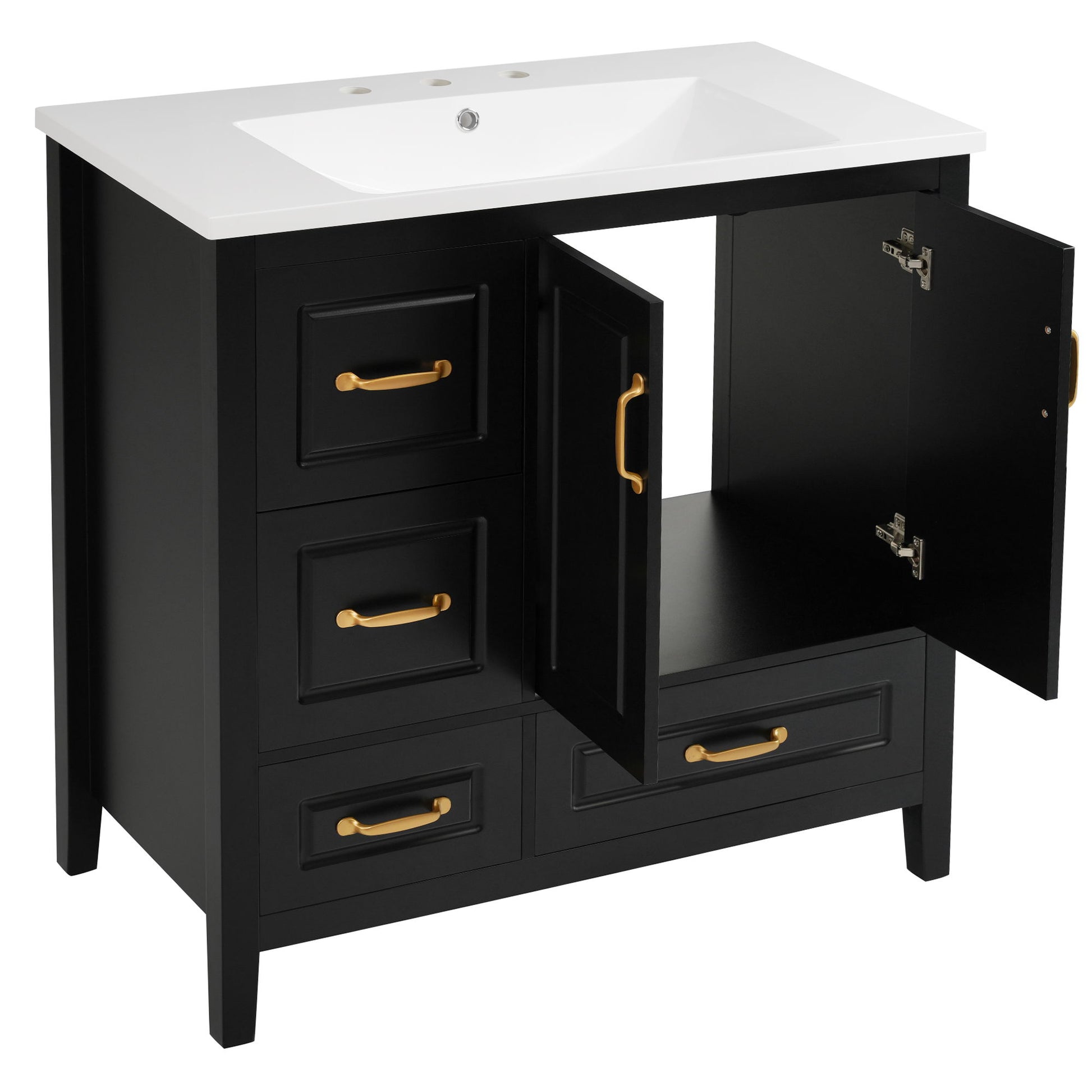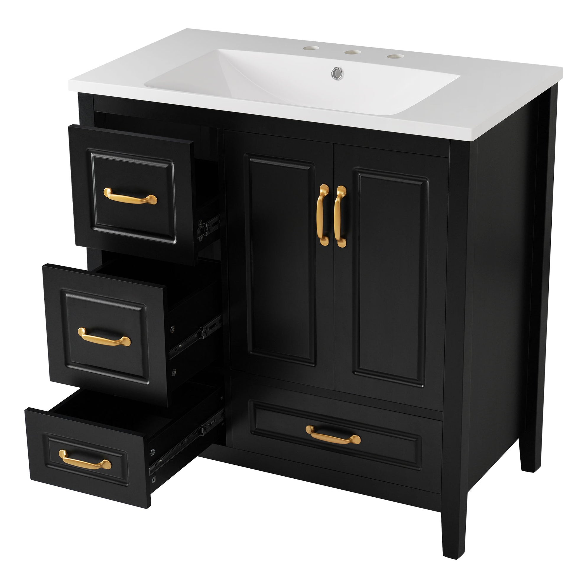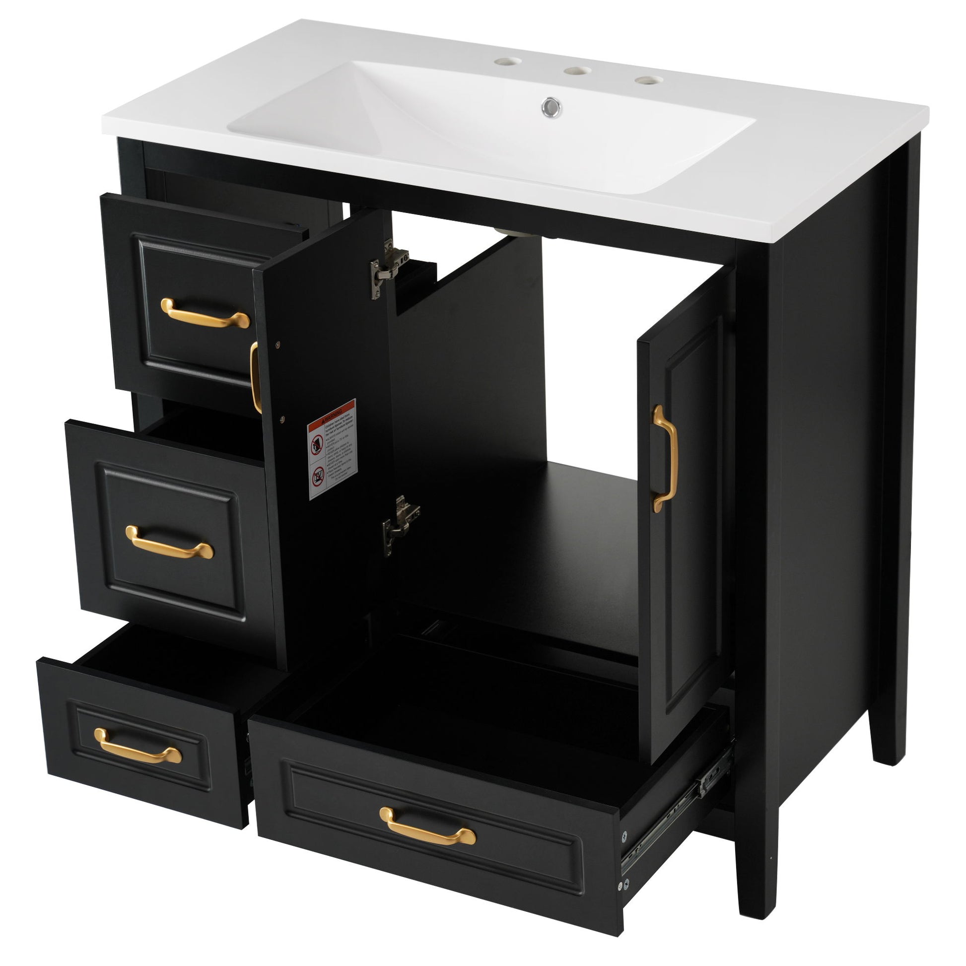 Bathroom Vanity With Sink, Soft Closing Doors & Drawers, Metal Handles - Black
