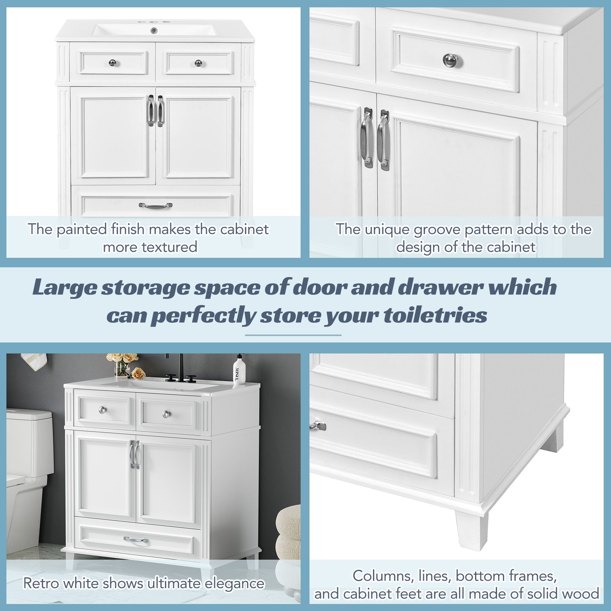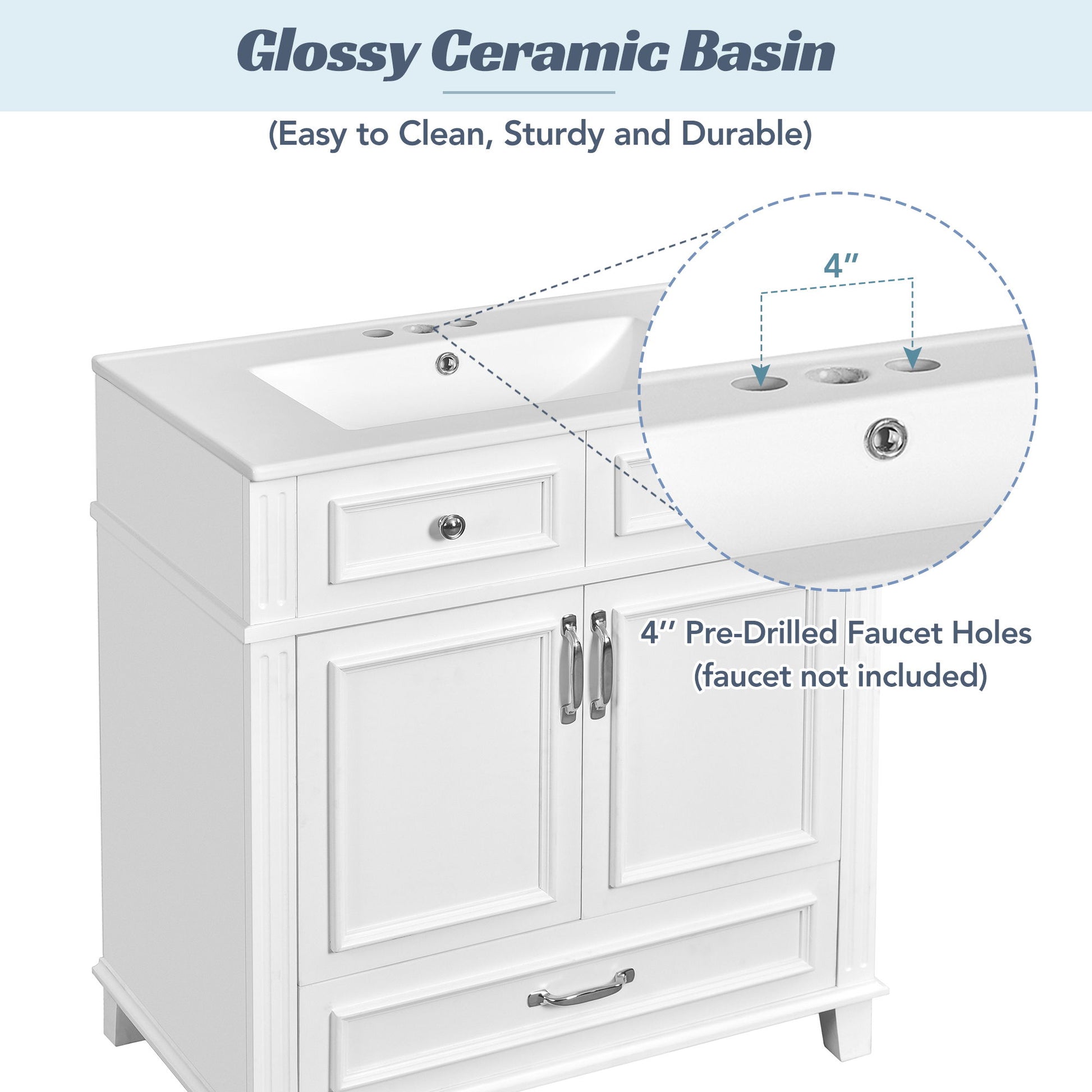 Bathroom Vanity With Sink, Storage Cabinet, Soft Closing Doors - White