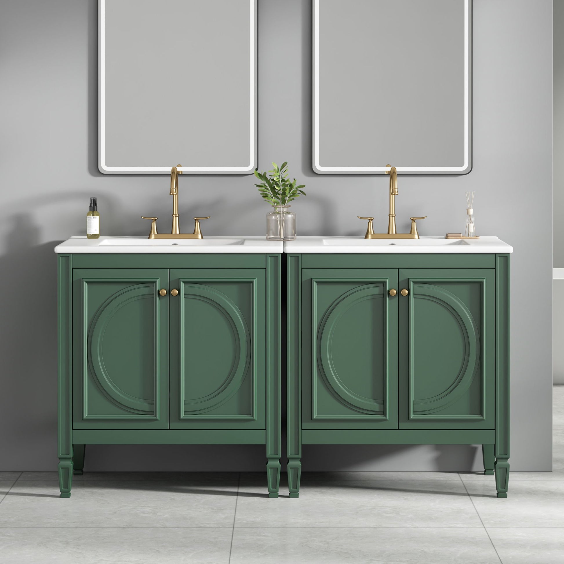 Bathroom Vanity Combo Set With Double Sink, Soft Close Doors, Adjustable Shelves - Green