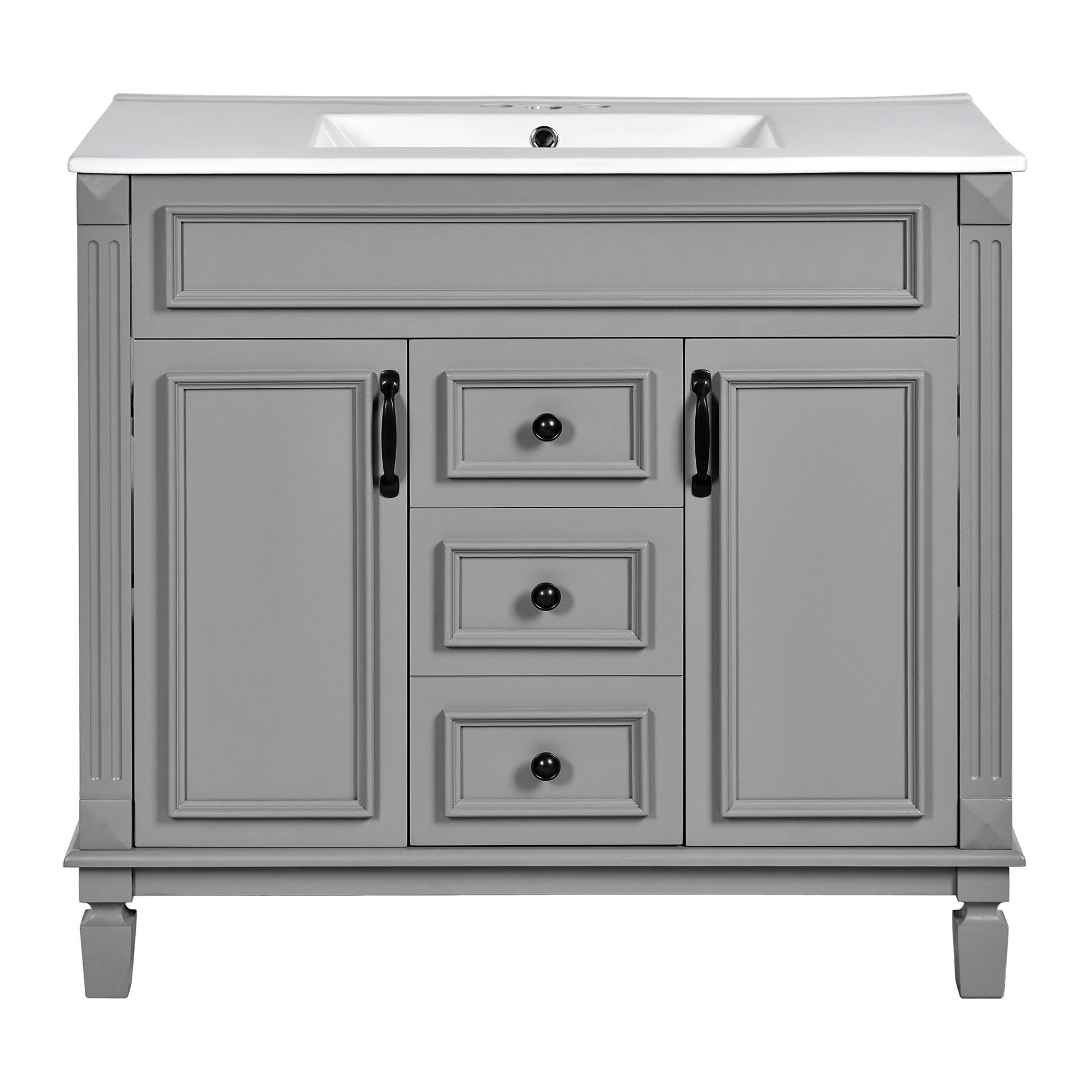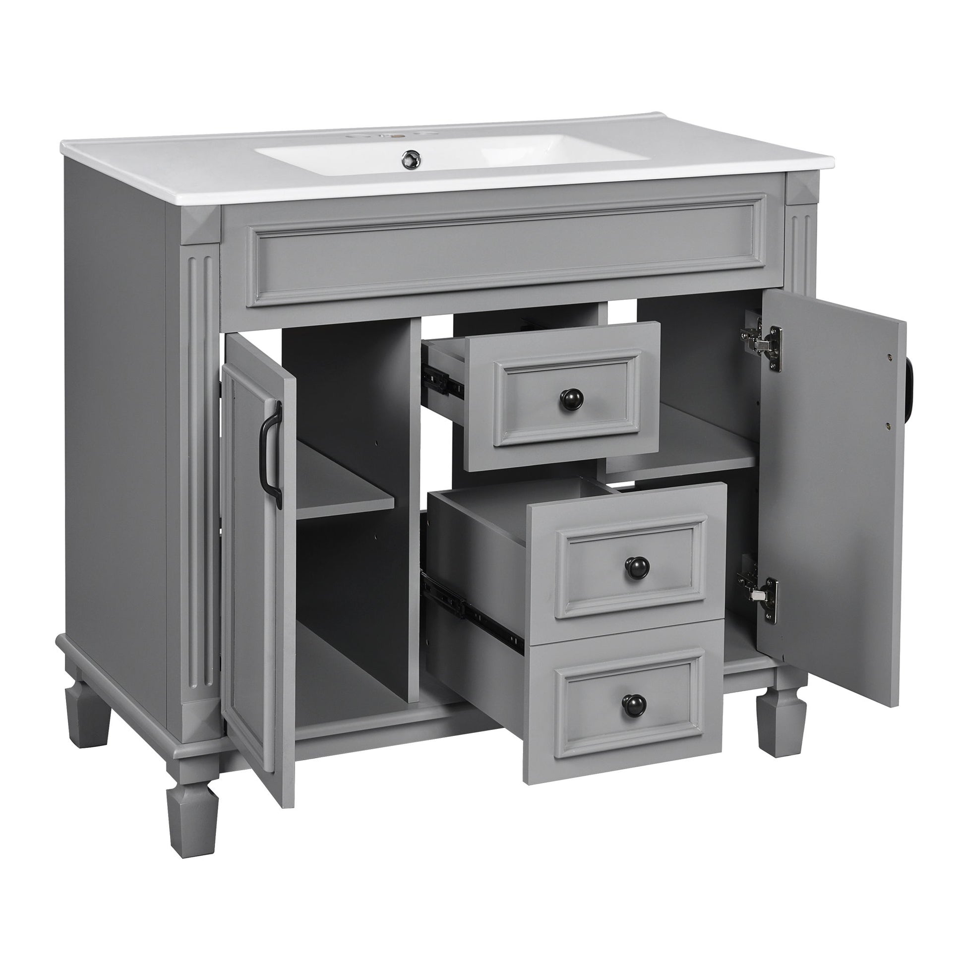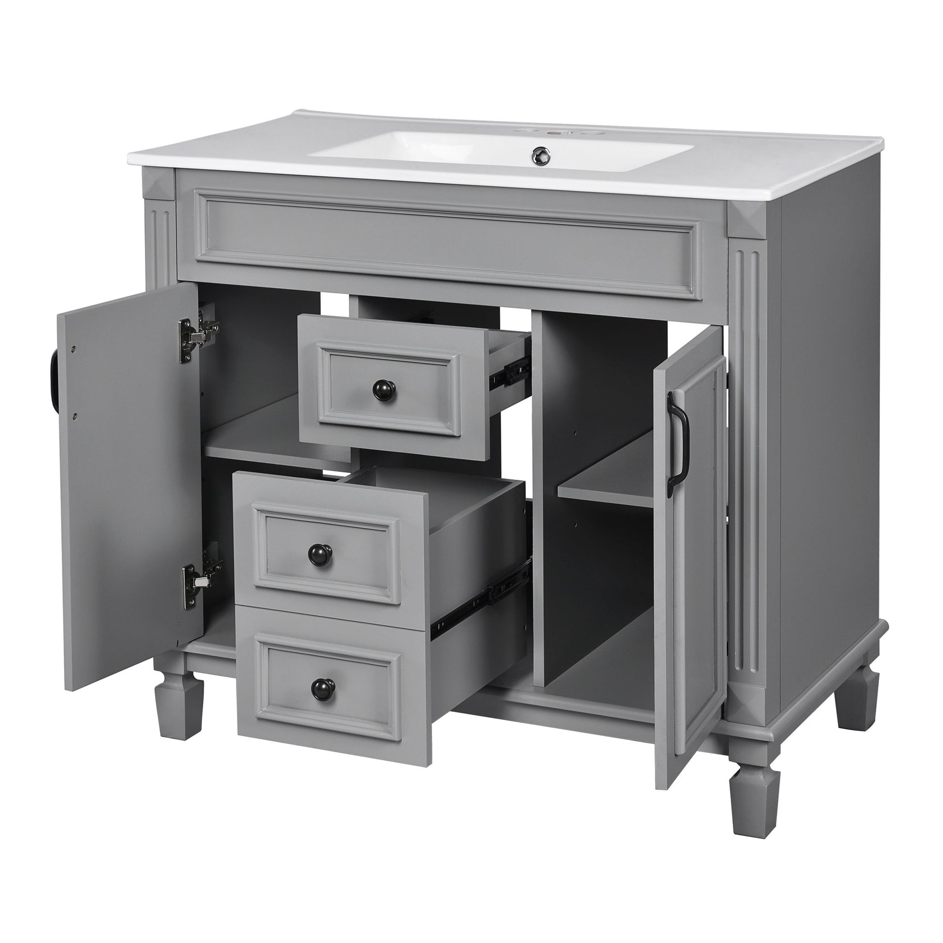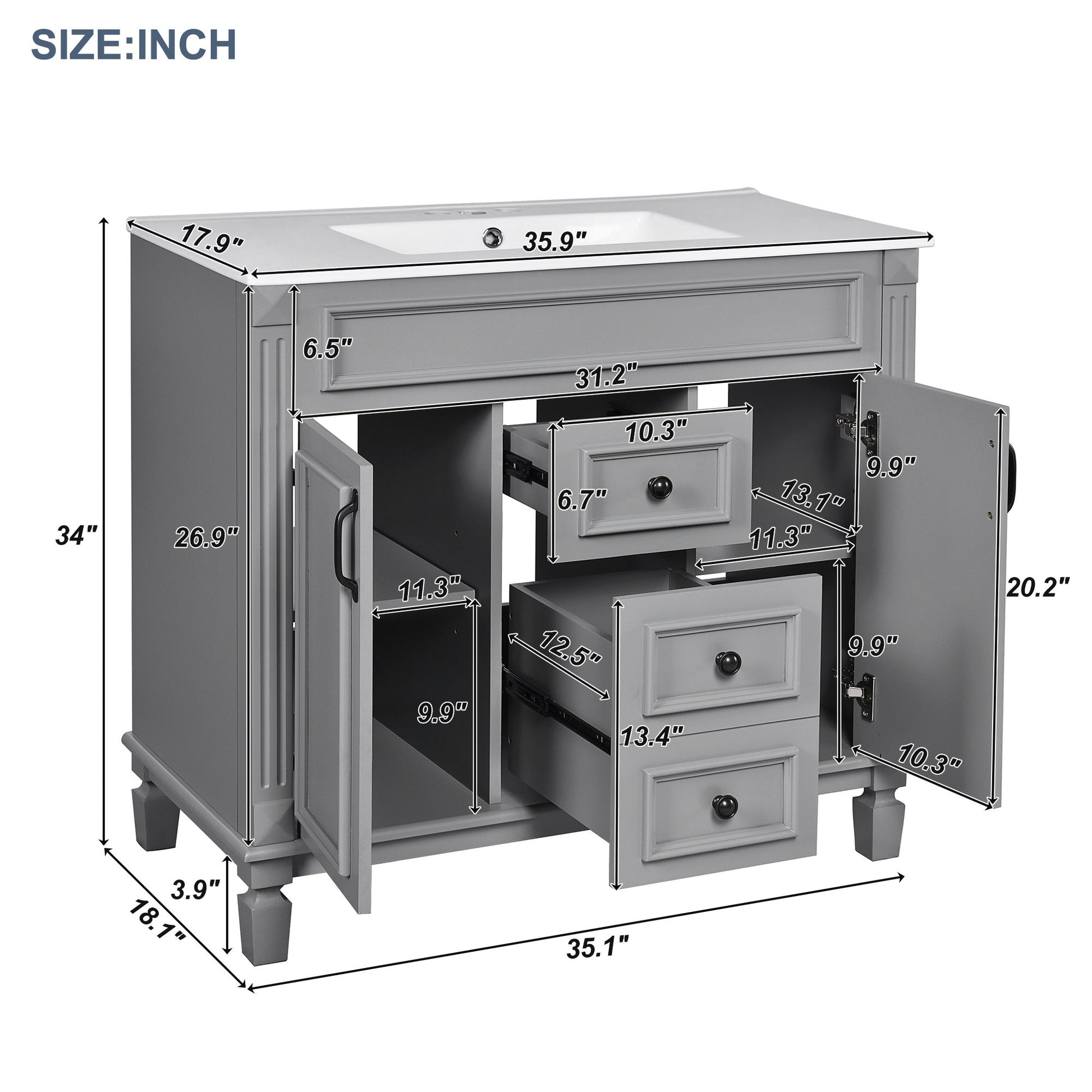 36" Bathroom Vanity With Top Sink, Basin On Cabinet With 2 Soft Closing Doors And 2 Drawers - Gray