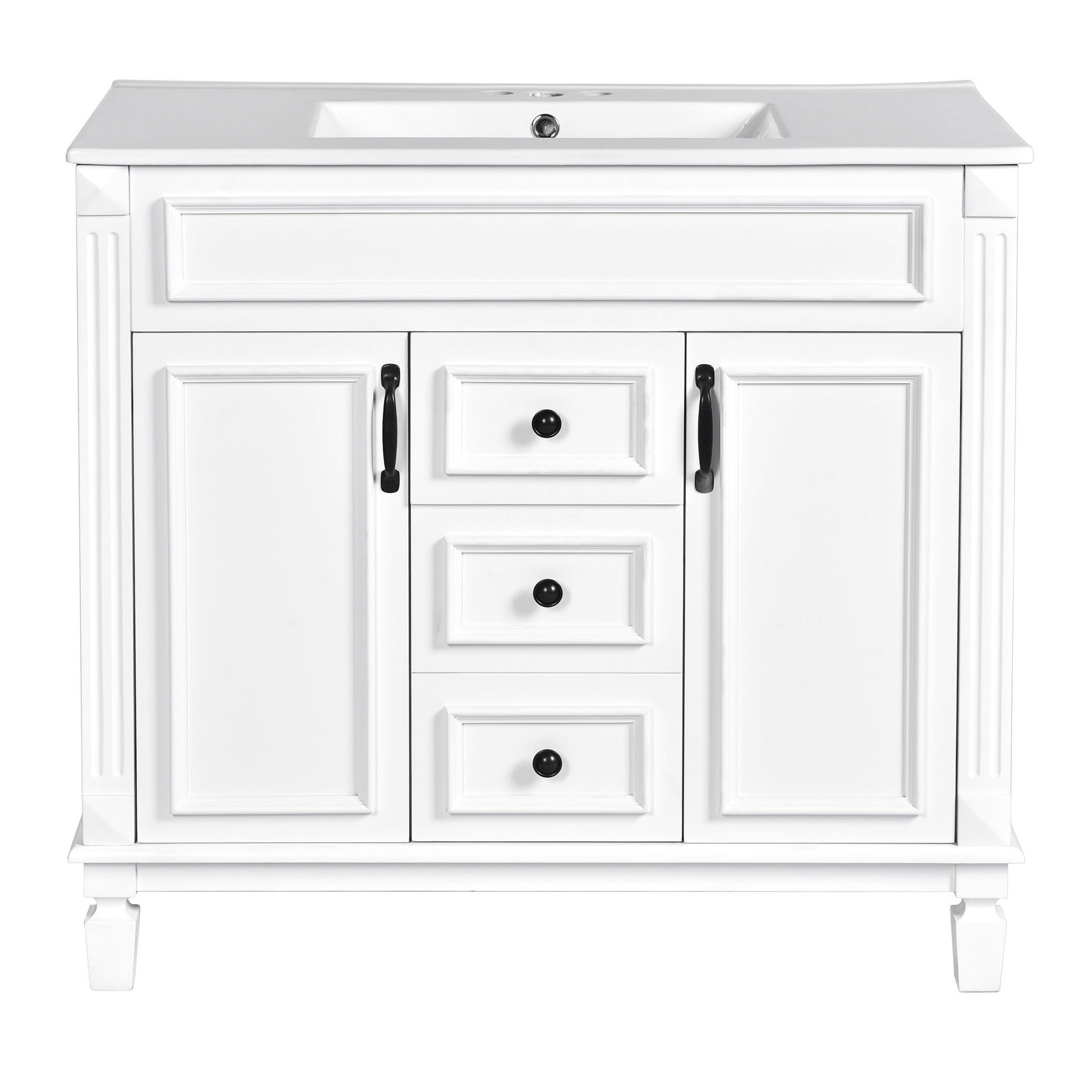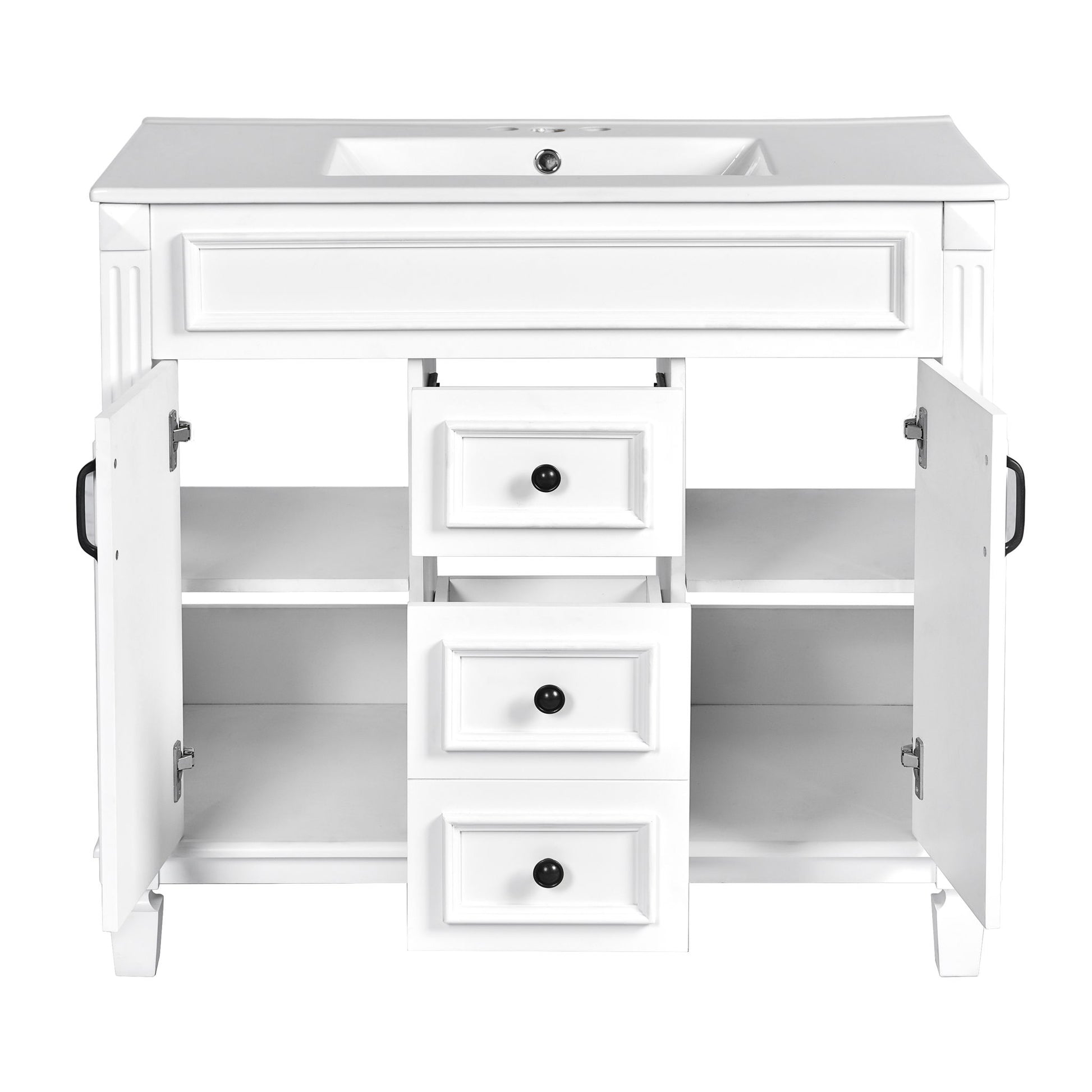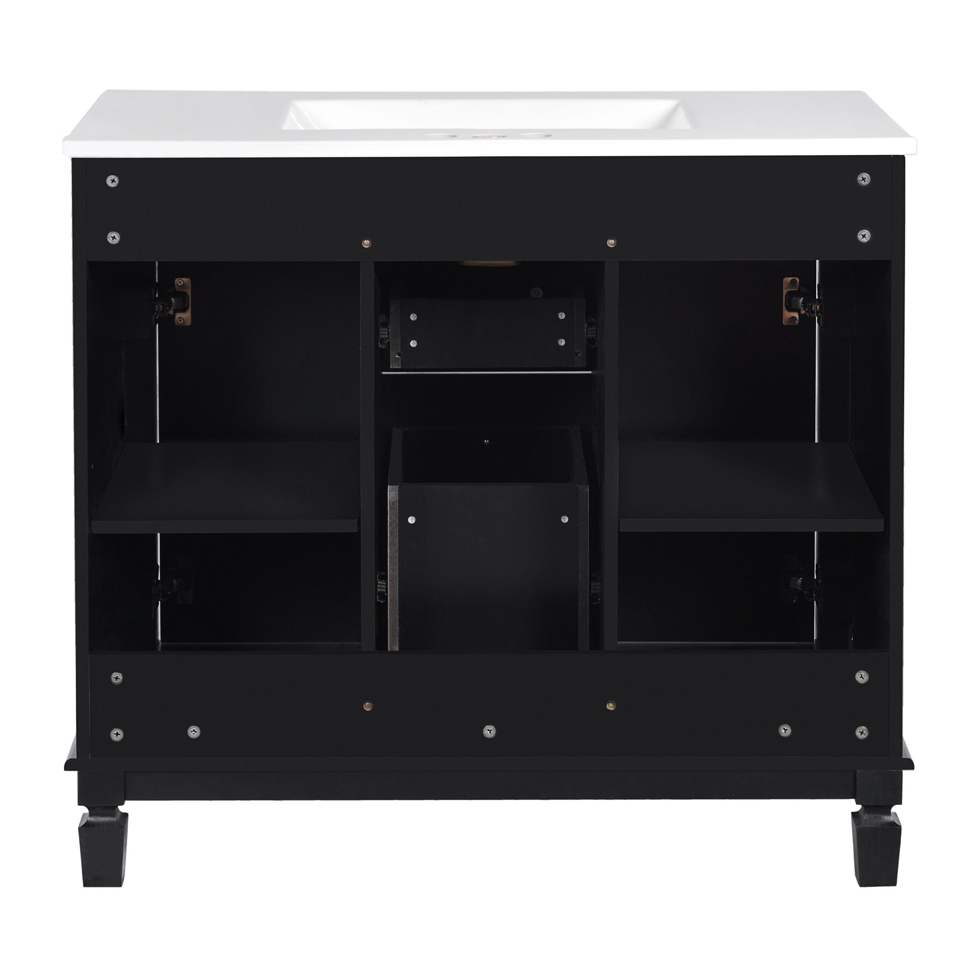 36" Bathroom Vanity With Top Sink, Basin Cabinet With 2 Soft Closing Doors And 2 Drawers - Black