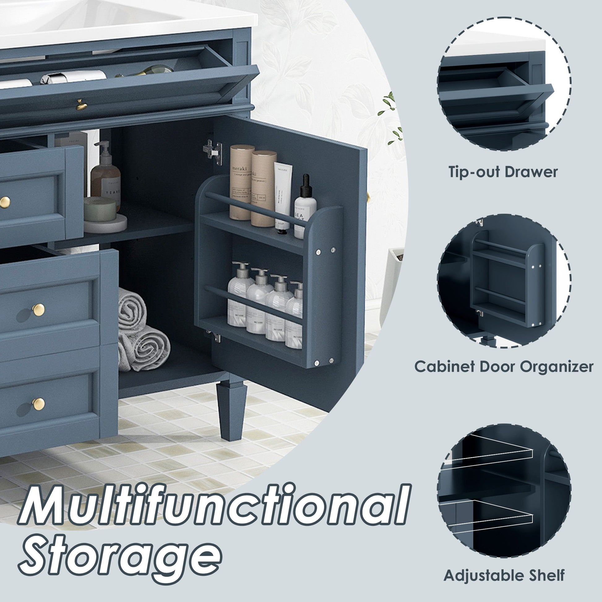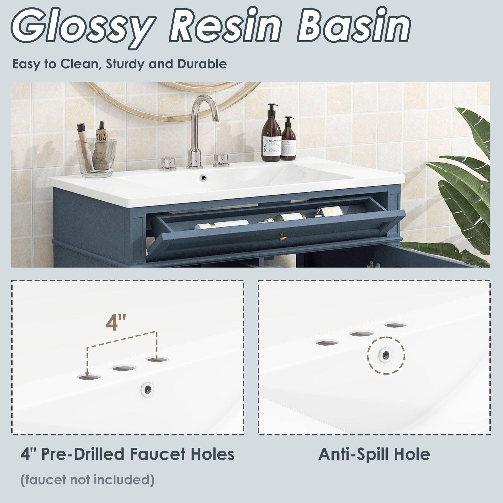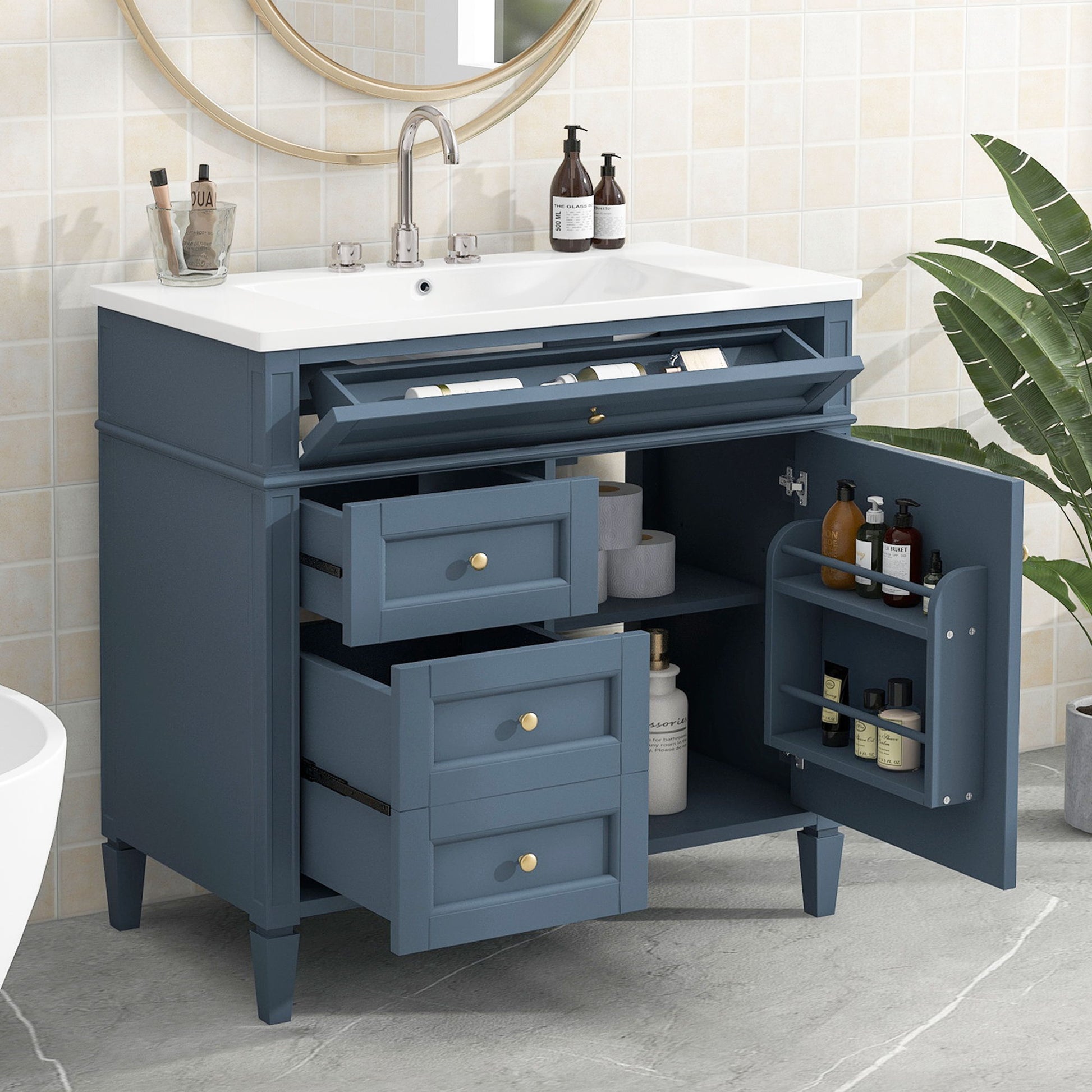 Bathroom Vanity With Top Sink, Storage Cabinet With 2 Drawers And Tip Out Drawer - Blue