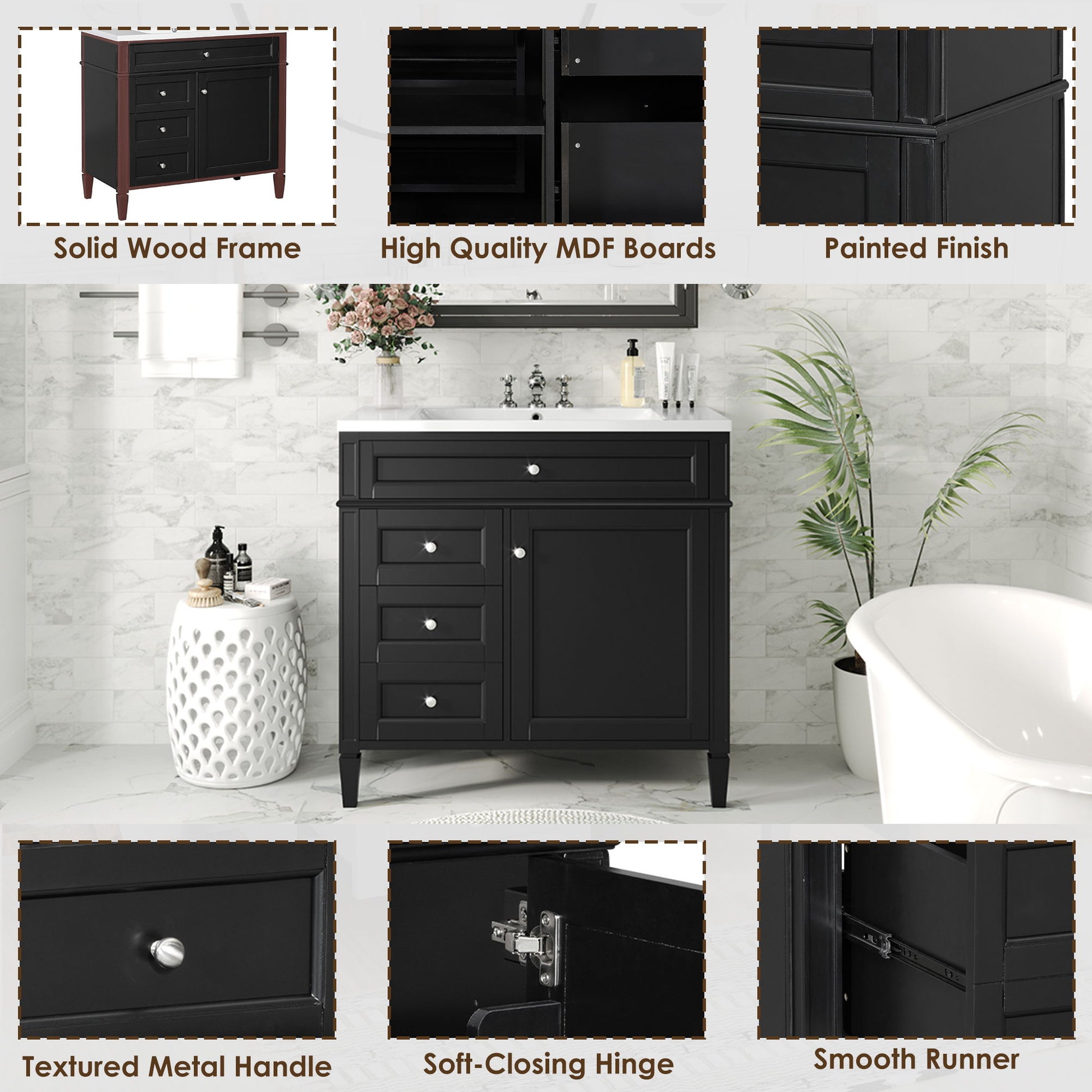 Bathroom Vanity With Top Sink, Storage Cabinet With 2 Drawers And Tip Out Drawer - Black