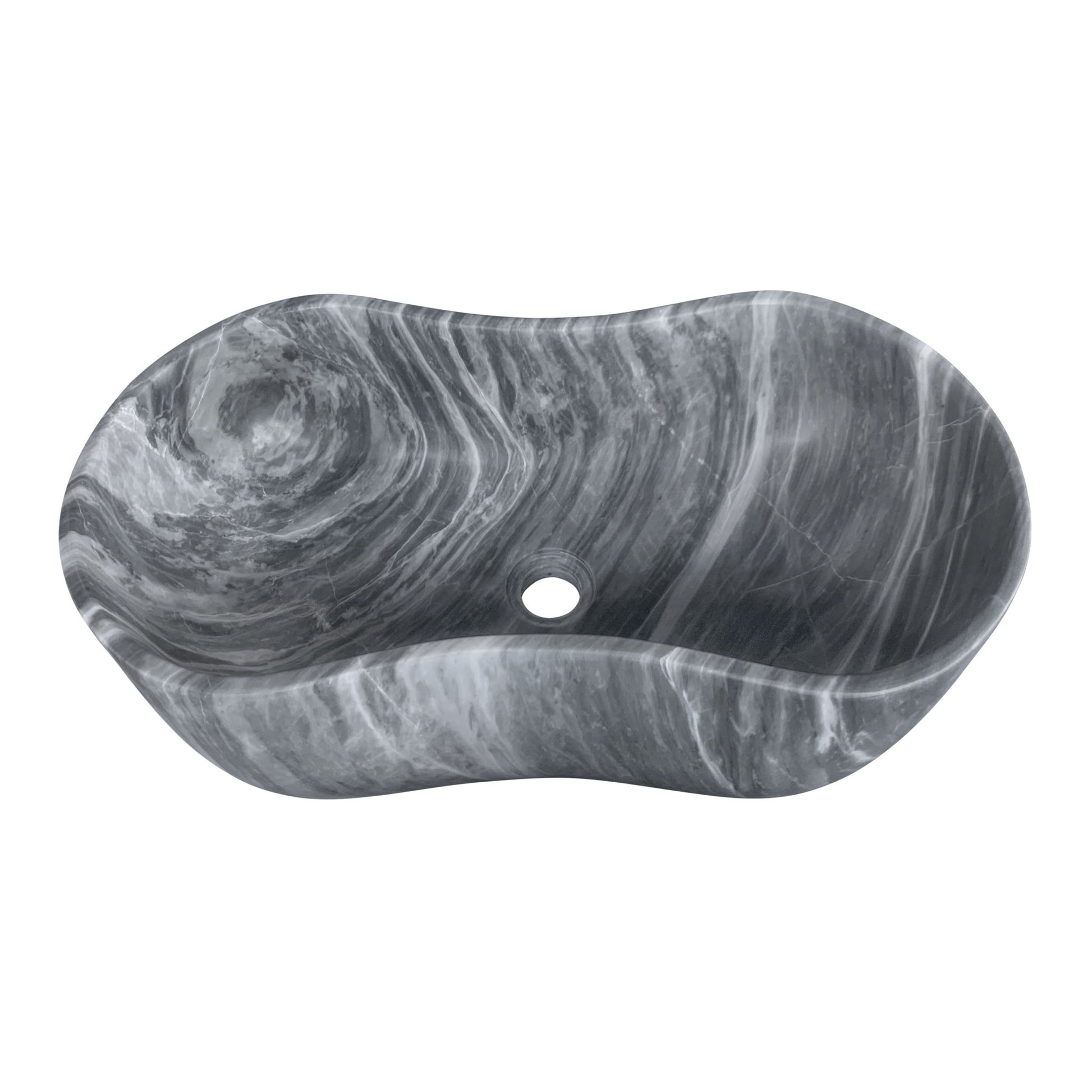 Bathroom Vessel Sink, Wavy Design, Semi Polished Surface - Gray