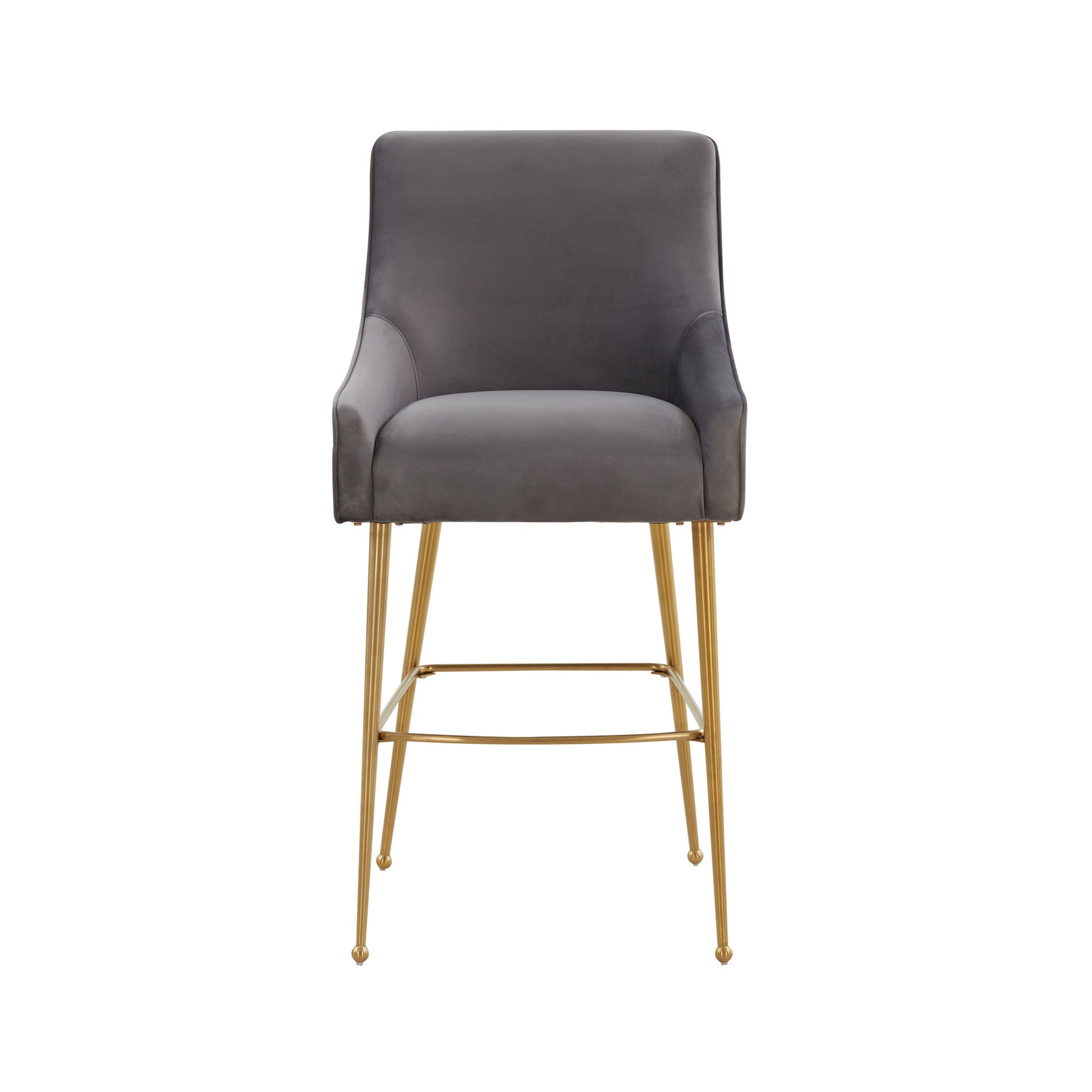 Beatrix - Velvet Bar Stool With Gold Legs - Dark Gray