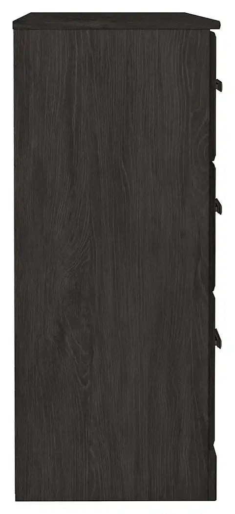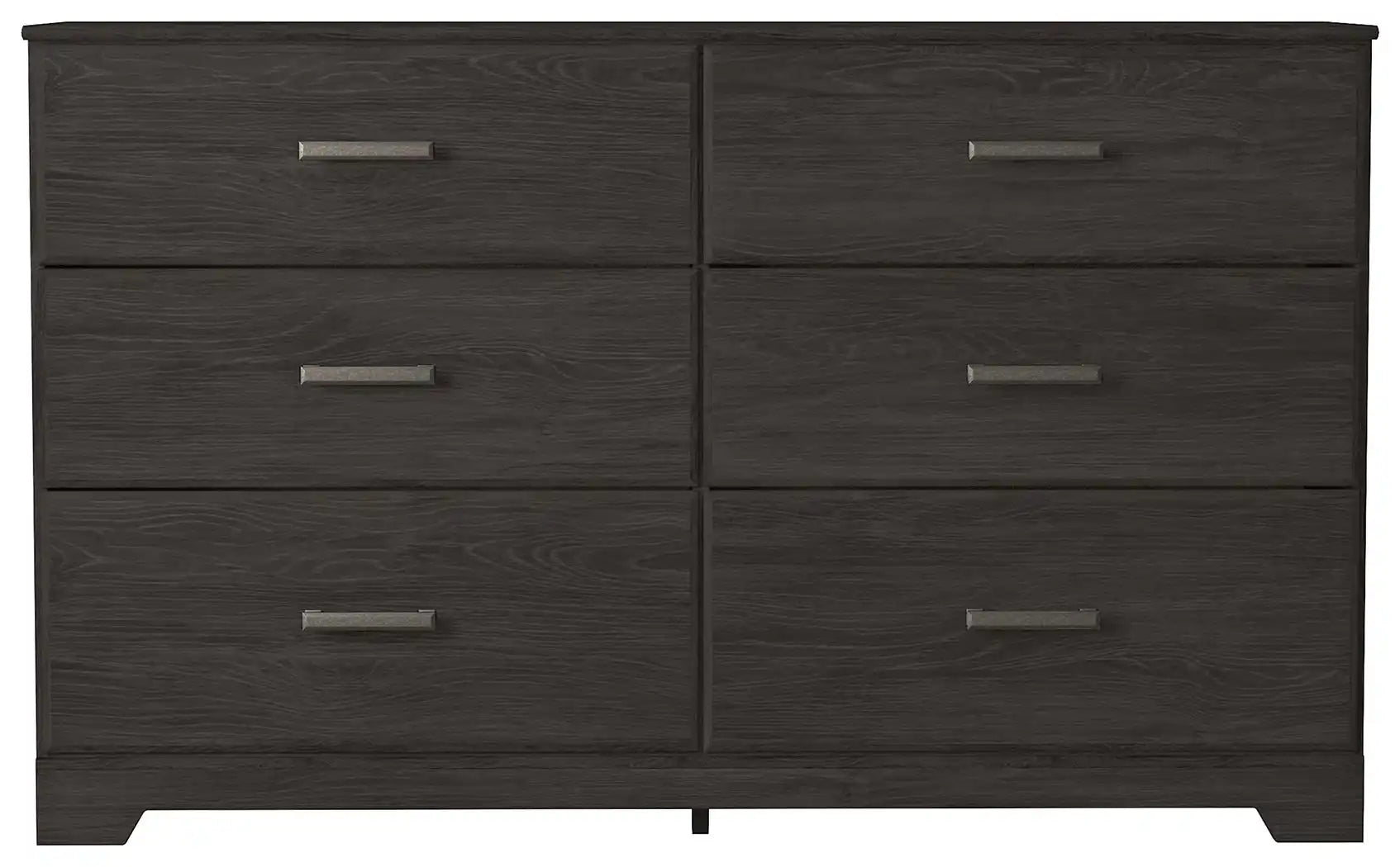 With its clean-lined look and modern attitude, this dresser is a fresh style awakening. Warm hue over replicated oak grain easily complements other furniture finishes. Smooth drawer fronts with antiqued pewter-tone handles complete the aesthetic.