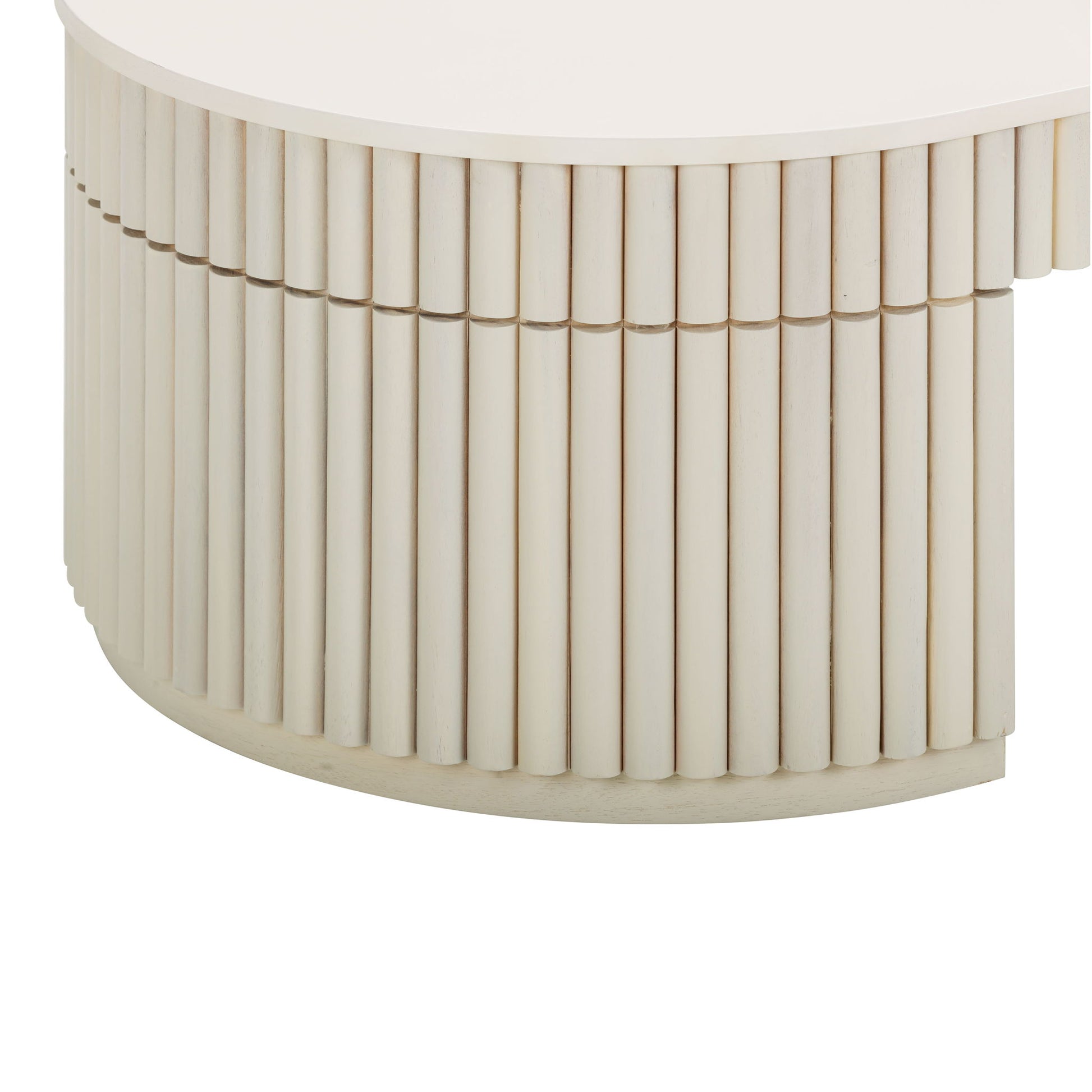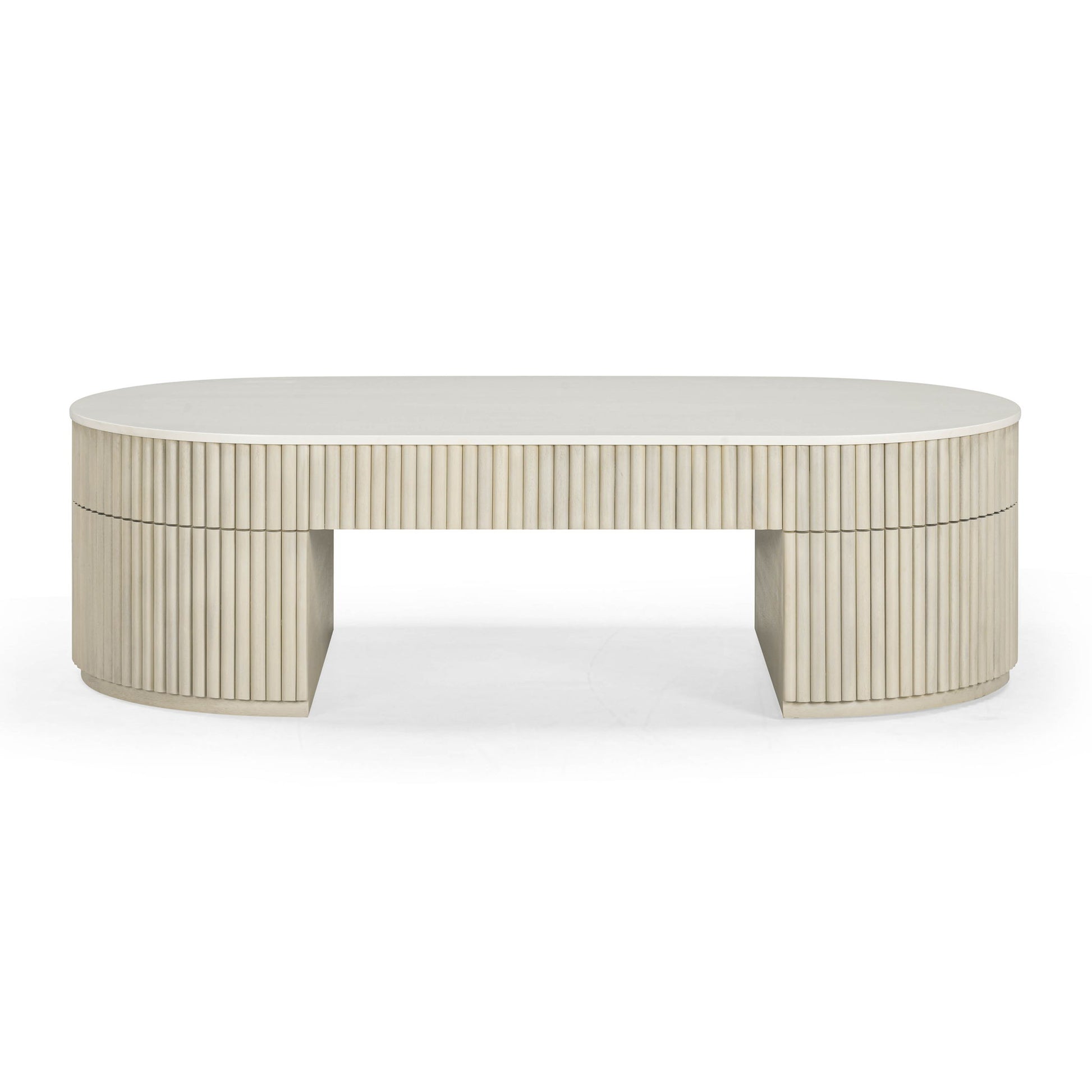 Introducing our Bella Coffee Table, a stylish blend of artistry and practicality that's perfect for any modern living space. Crafted from solid acacia wood with intentional light staining, its channeling design creates a stunning stained glass-like effect, reminiscent of natural fired ceramic pieces yet boasting a subtle matte texture. With a glossy top for easy cleaning and a sculptural base, this table effortlessly blends monochromatic vibes with 'California Cool' style, making it the ultimate centerpiece for chic living spaces.