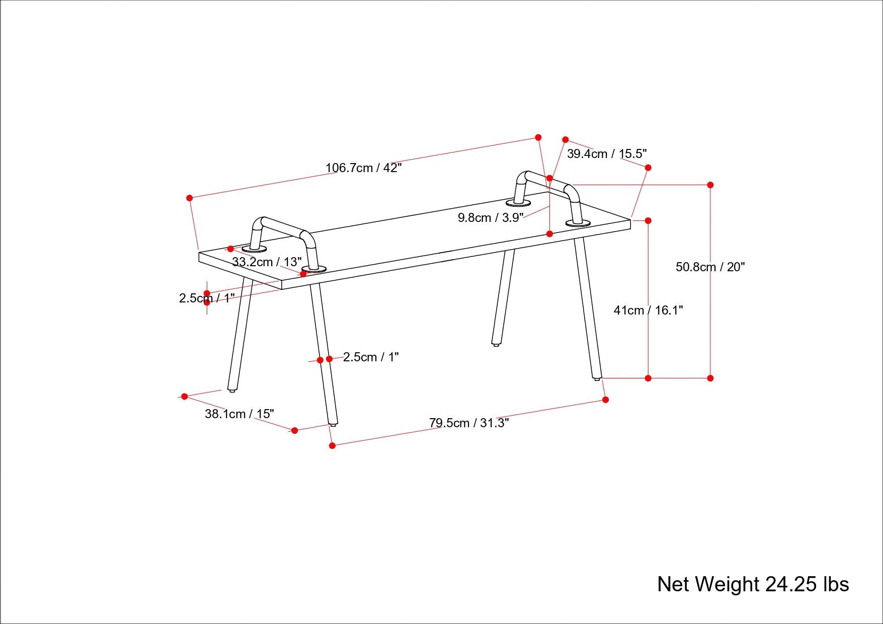 42.0"W x 15.5"D x 16.1"H - 25.7 lb