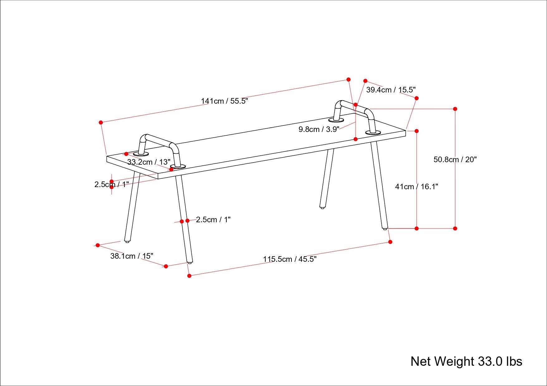 55.5"W x 15.5"D x 16.1"H - 32.6 lb
