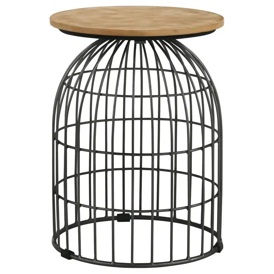 - Topped with a natural beige marble tabletop in a round shape, this accent table offers up industrial style elements and modern farmhouse vibes with its bird case-inspired design