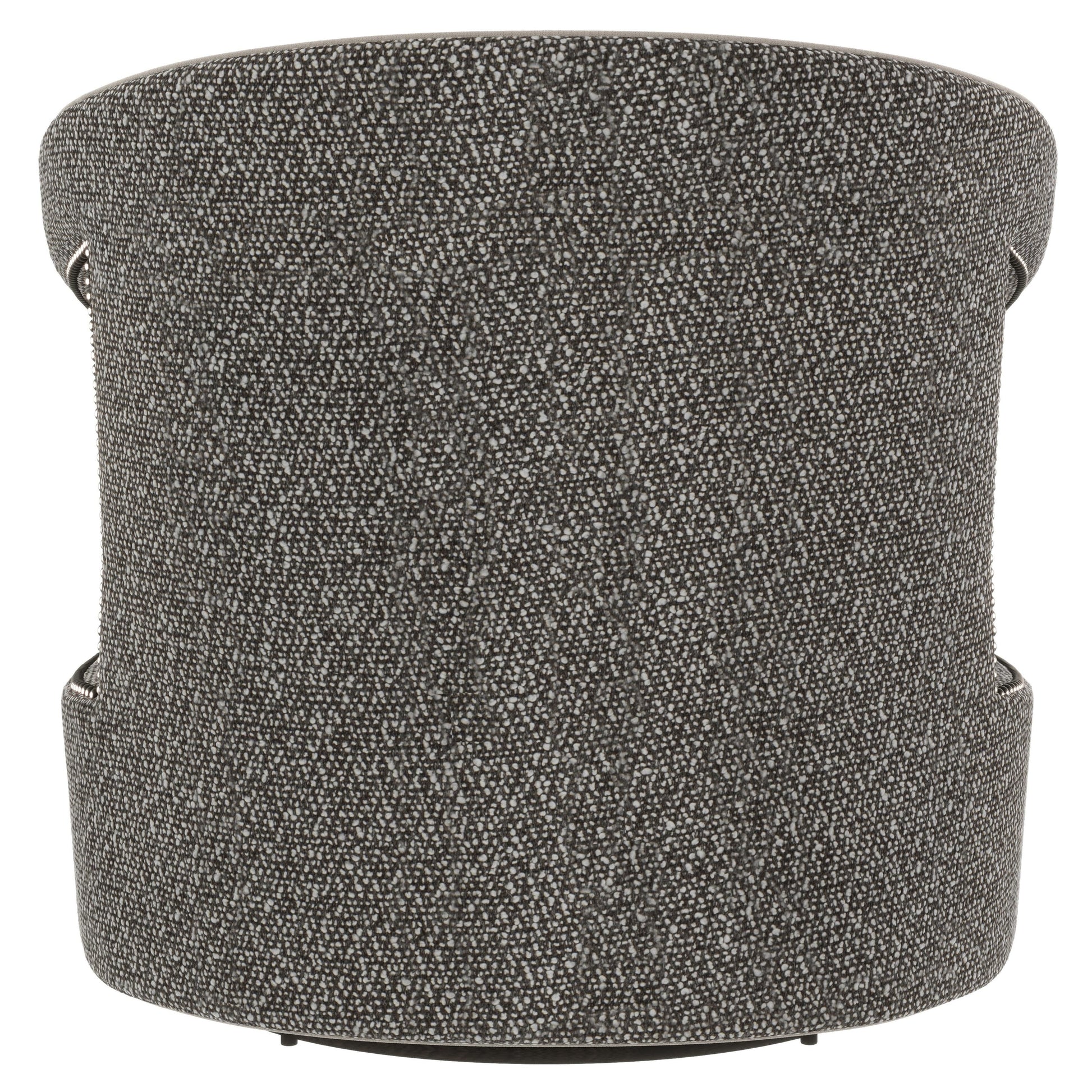 The Alana Fabric Swivel Chair makes a confident statement through its sculptural form and modern sensibility. A rounded, low-profile back and striking silhouette give the chair a refined presence, while distinctive cutouts on each side add architectural interest. Nailhead trim lines the cutouts, lending a crisp, tailored finish that elevates the overall design.