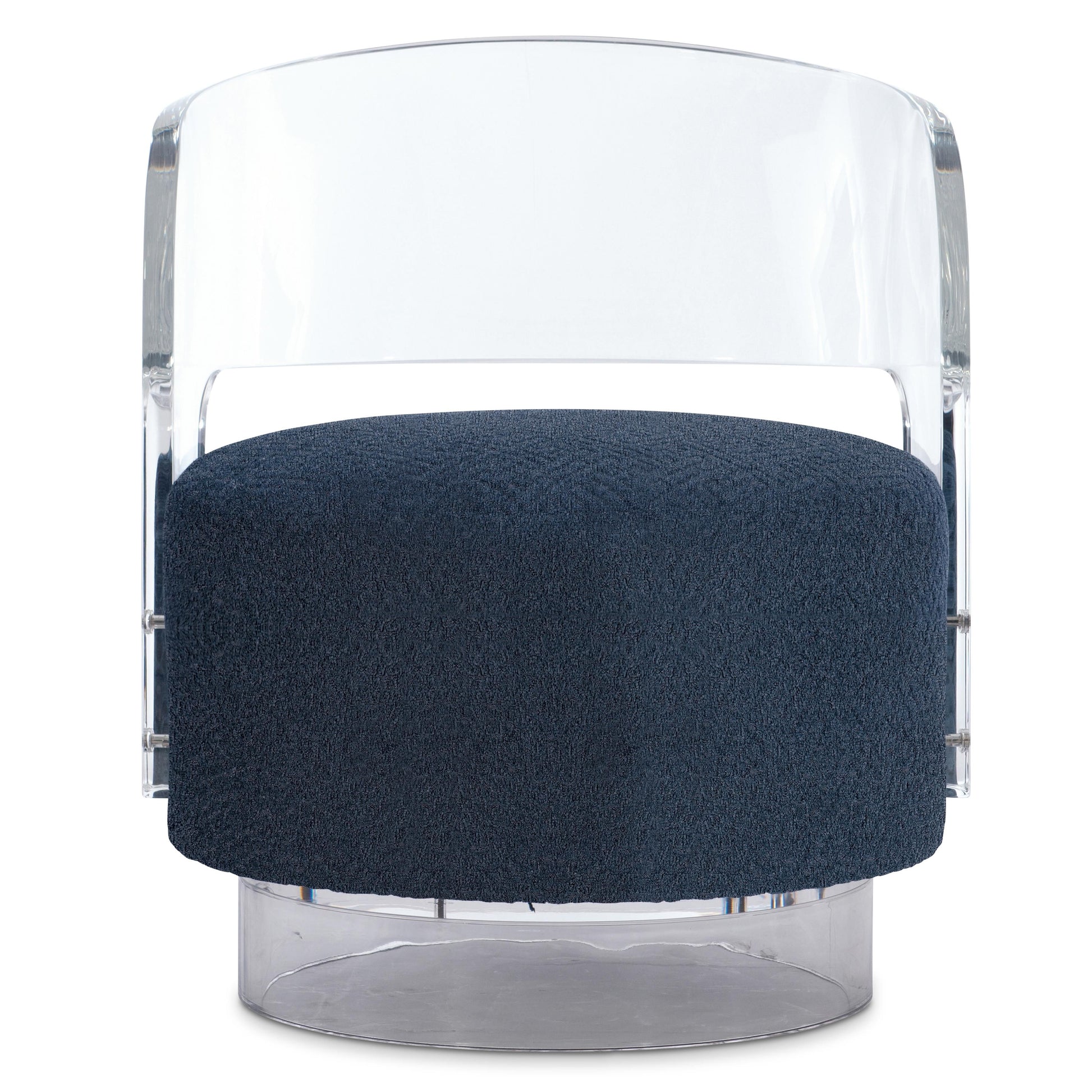 A softly deep, fabric-upholstered seat invites relaxed comfort, making the Angelina as practical as it is striking. Set on an acrylic swivel base, the chair rotates smoothly in a full circle, offering easy movement and versatility for living spaces, bedrooms, or stylish seating areas where modern design takes center stage.