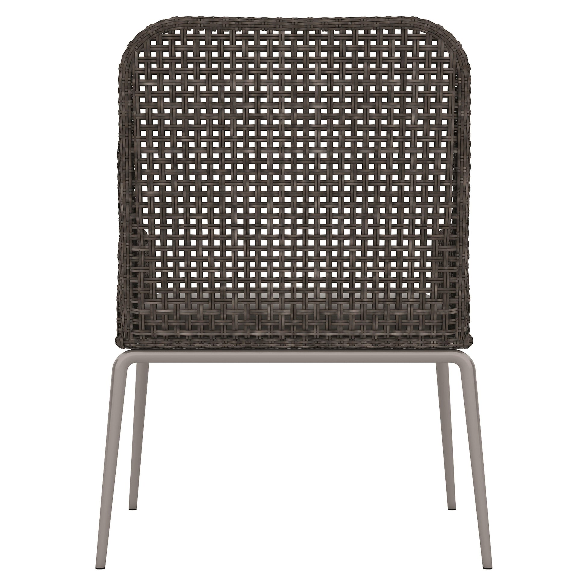 Designed for durability and comfort, the lightweight frame is wrapped in all-weather wicker and supported by sleek stainless steel legs with a powder-coated finish. The combination of woven texture and streamlined metal detailing offers lasting performance outdoors while maintaining a clean, modern look. Ideal as a dining or accent chair, the Antilles arm chair brings understated luxury to any exterior space.